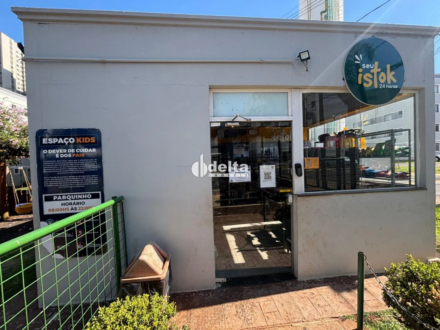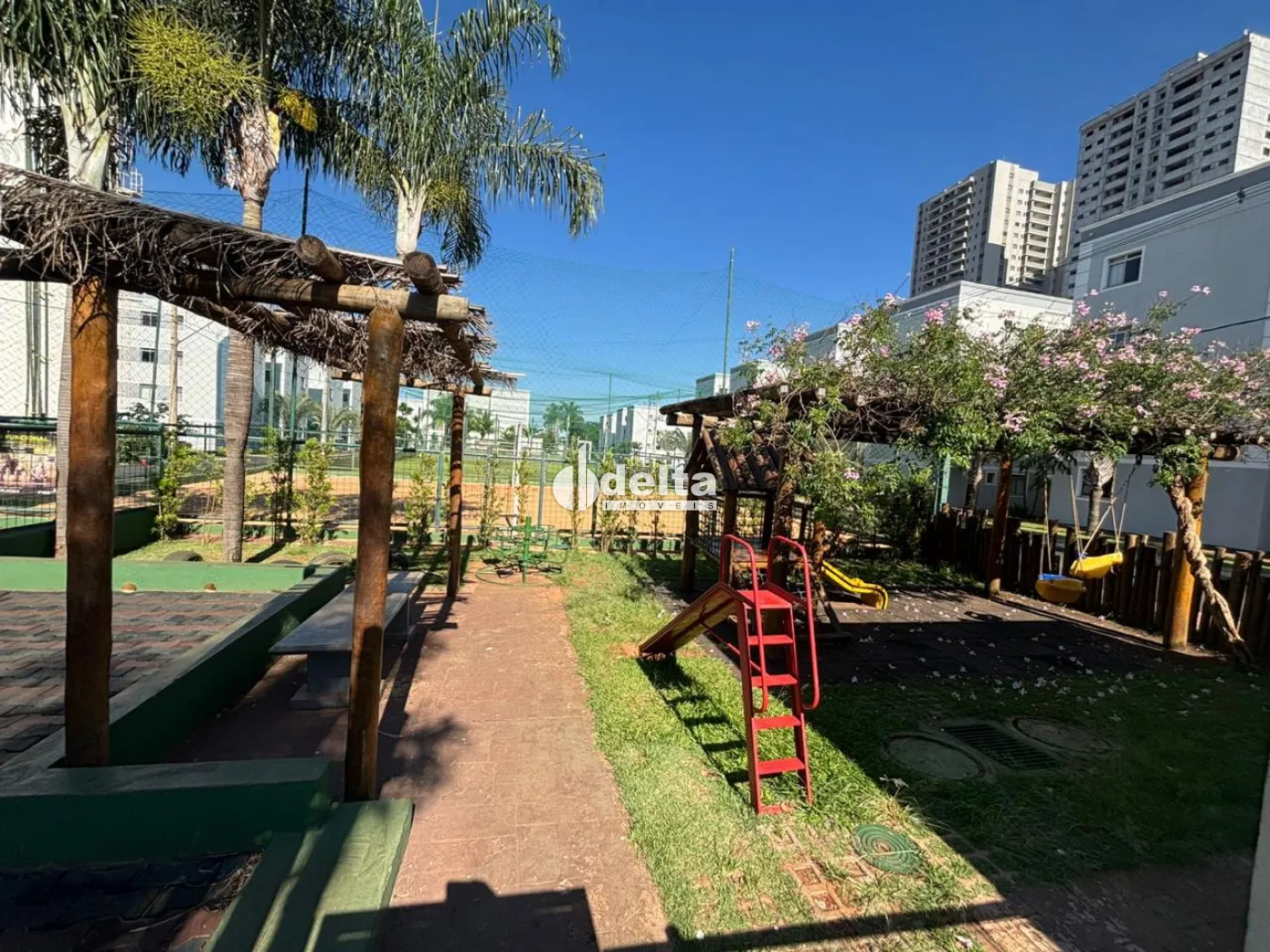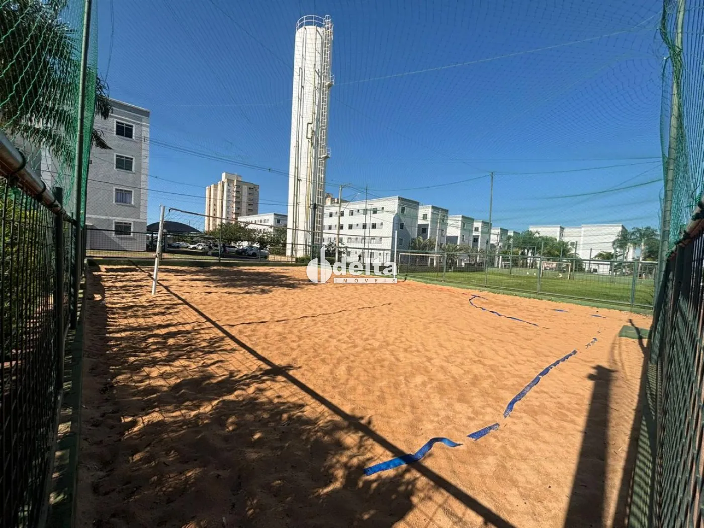 O condomínio oferece portaria 24h e área de lazer completa, com campo, quadra, quiosque com churrasqueira e parquinho.
