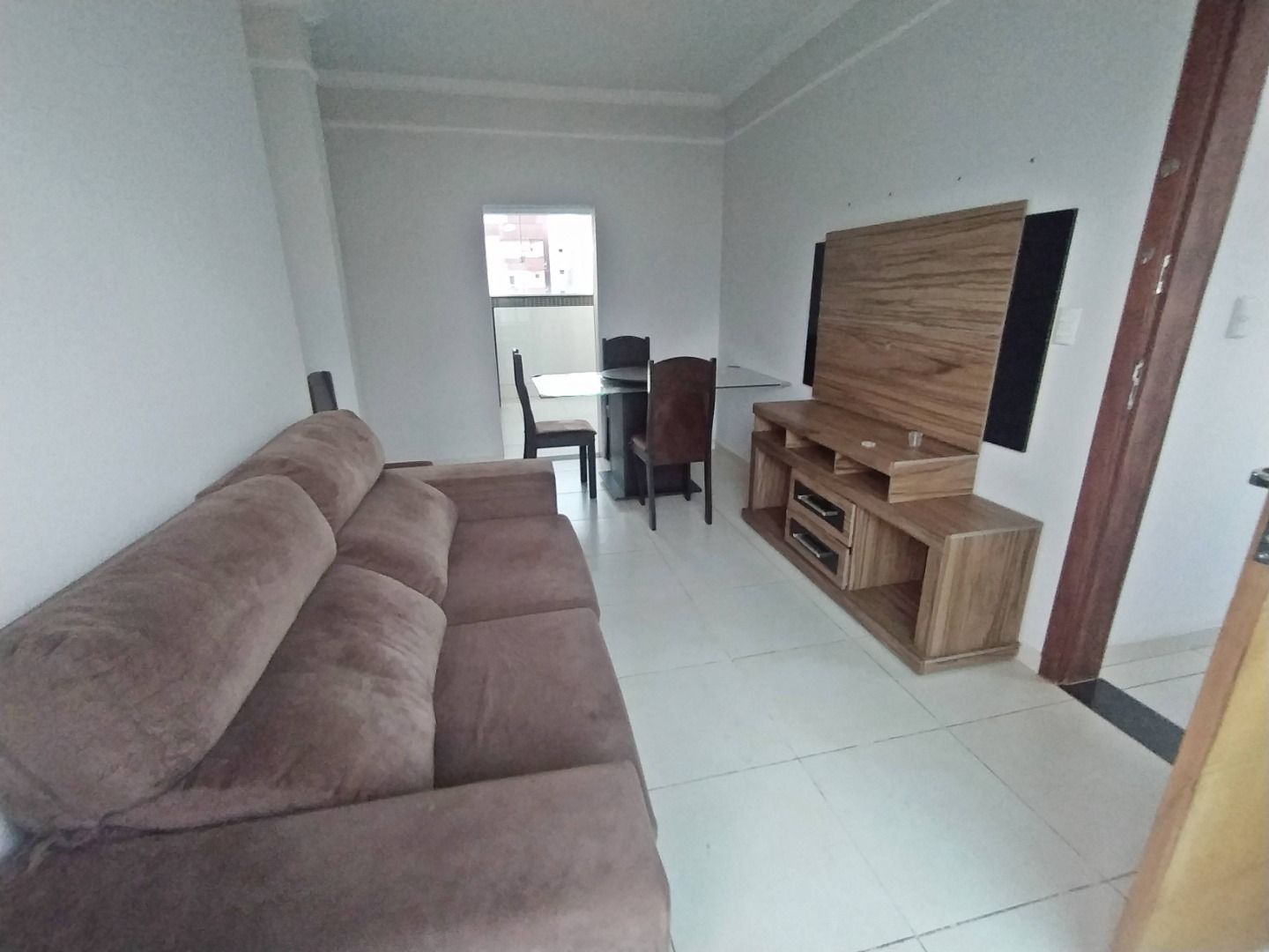 O apartamento é todo mobiliado e possui aproximadamente 60m² de área privativa, com sala ampla em dois ambientes equipada com sofá, painel para TV e mesa com cadeiras, 2 quartos, sendo 1 suíte com armário e cama, além de banheiro social, cozinha planejada com armários, fogão, geladeira e micro-ondas, área de serviço e área externa. Conta ainda com 2 vagas de garagem.