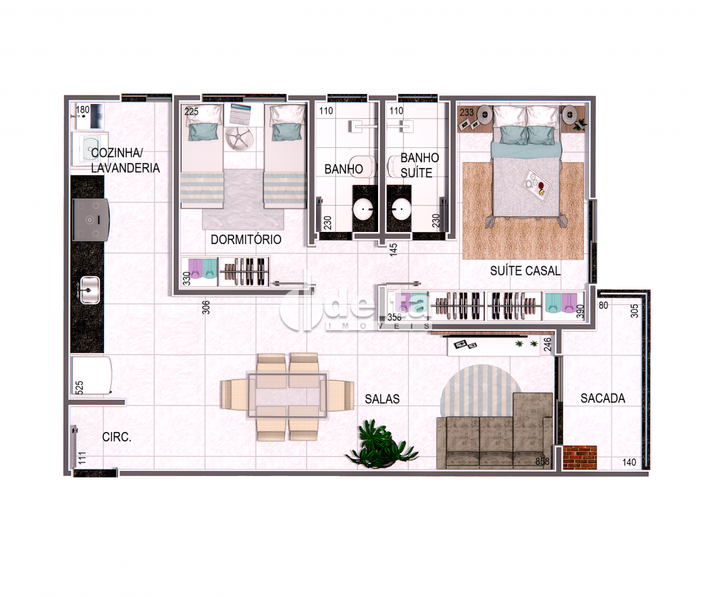 Com apartamentos de 2 quartos, sendo 1 suíte, possui uma planta inteligente e bem distribuída, com metragens que vão de 58,55m² a 145m², garantindo espaço e conforto em cada detalhe. Uma aconchegante sala de estar, a funcional cozinha com área de serviço integrada e a charmosa sacada gourmet criam um espaço perfeito para receber amigos ou relaxar com a família.
