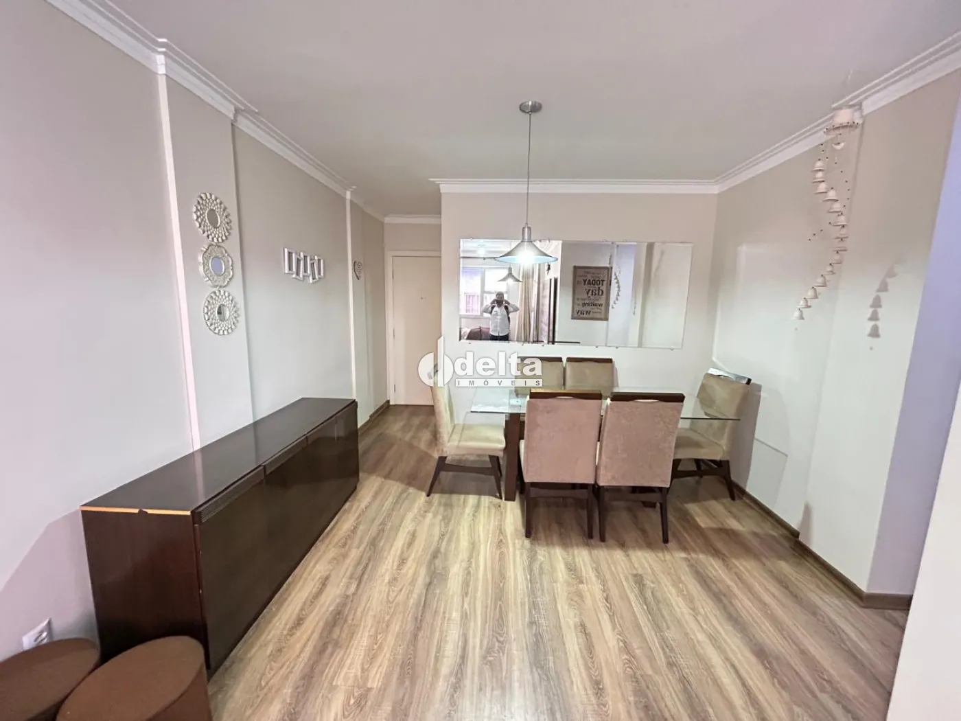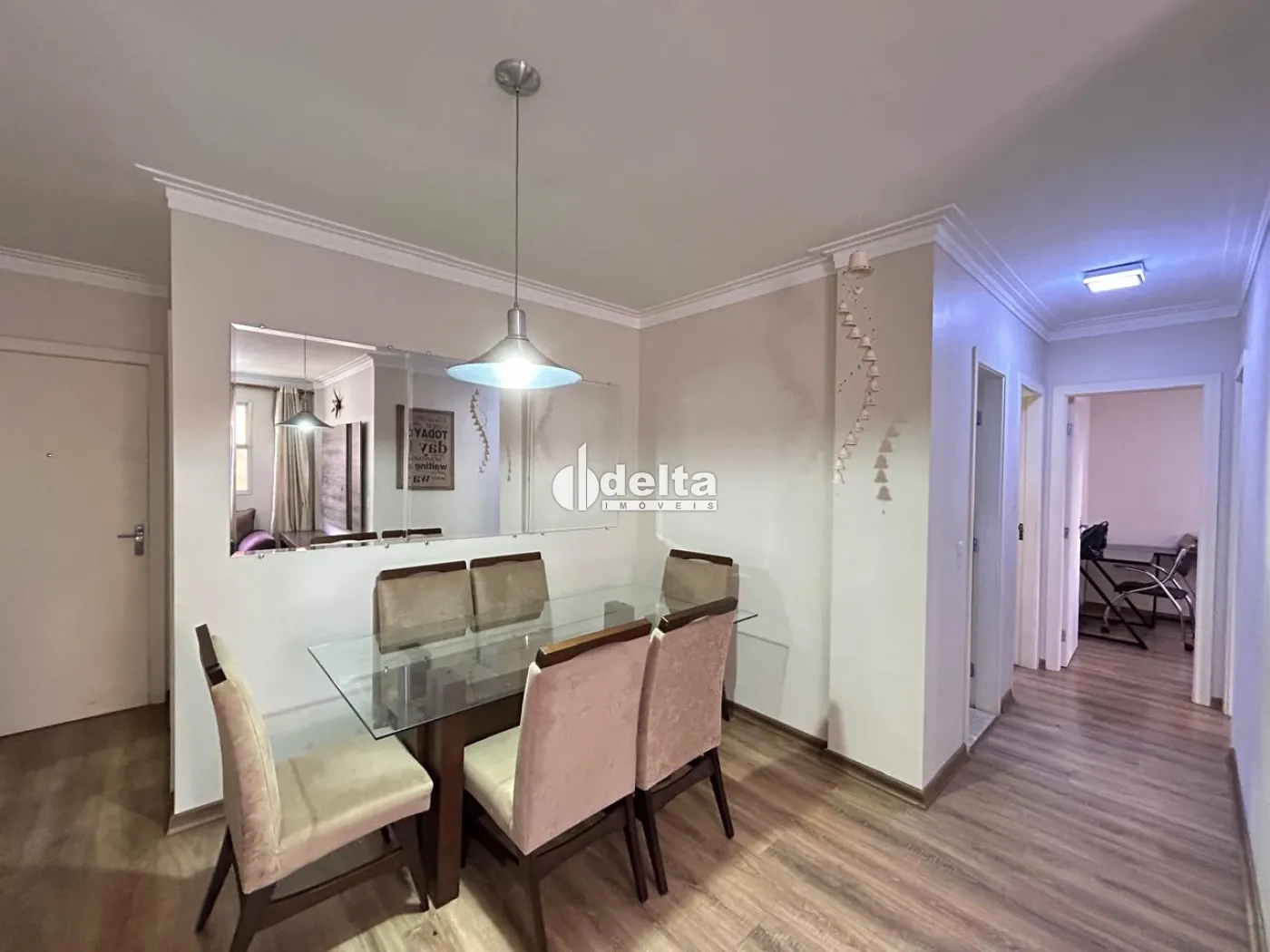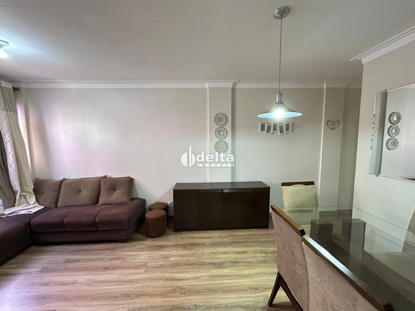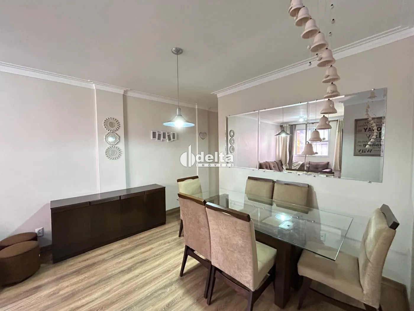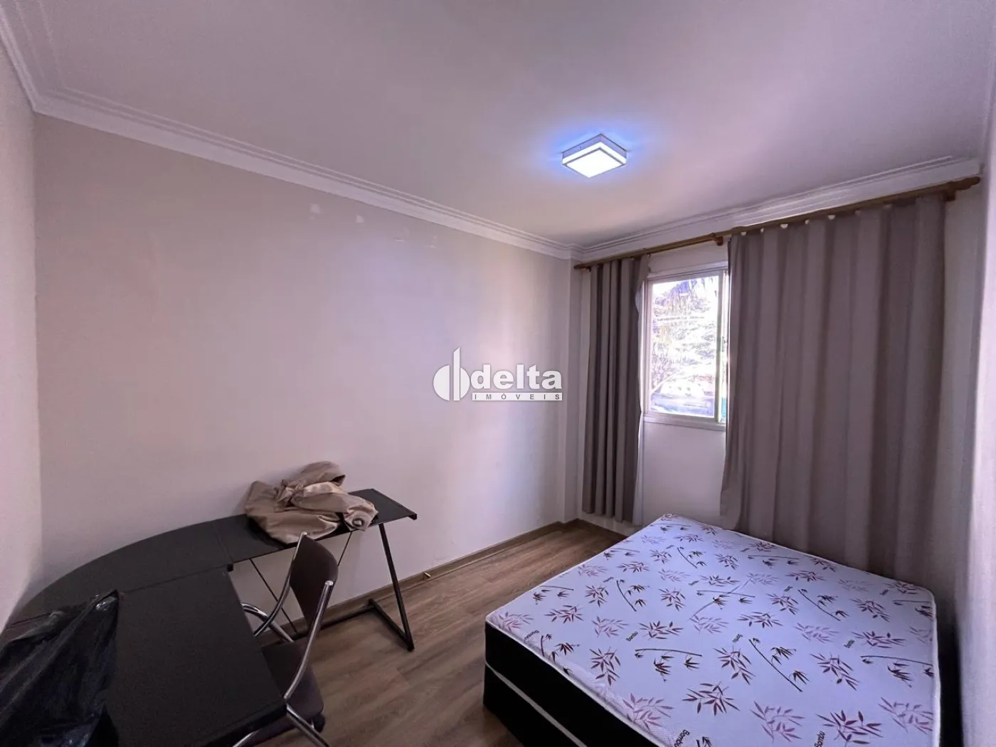 Apartamento no bairro Santa Mônica bem localizado a 1.000 metros da UFU todo mobiliado e planejado sendo sala ampla em 2 ambientes com sofá, rack/painel com TV, mesa com cadeiras e outros móveis, cozinha planejada com armários, geladeira, fogão, exaustor, filtro de água elétrico, micro-ondas, área de serviço com armários, tanque e máquina de lavar, hall para 1 banheiro social com armários, espelho e box, 3 quartos com camas e guarda-roupas, sendo 1 quarto com bancada de escritório, sendo 1 suíte (banheiro suíte com armário, espelho e box). 1 vaga de garagem coberta, água inclusa no condomínio.