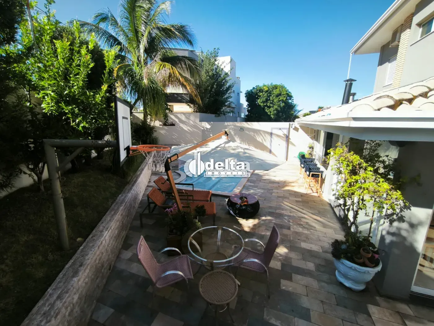 Imóvel estilo sobrado com aproximadamente 230 m² de área construída, sendo 1º piso com sala em 2 ambientes, lavabo, cozinha planejada integrada ao espaço gourmet, lavanderia separada, corredores laterais com acesso à piscina e hidromassagem, banheiro externo, jardim amplo e 4 vagas de garagem. 2º piso com hall, 3 quartos sendo 2 suítes com closet, 1 delas com sacada, banheiro social e piso em porcelanato.