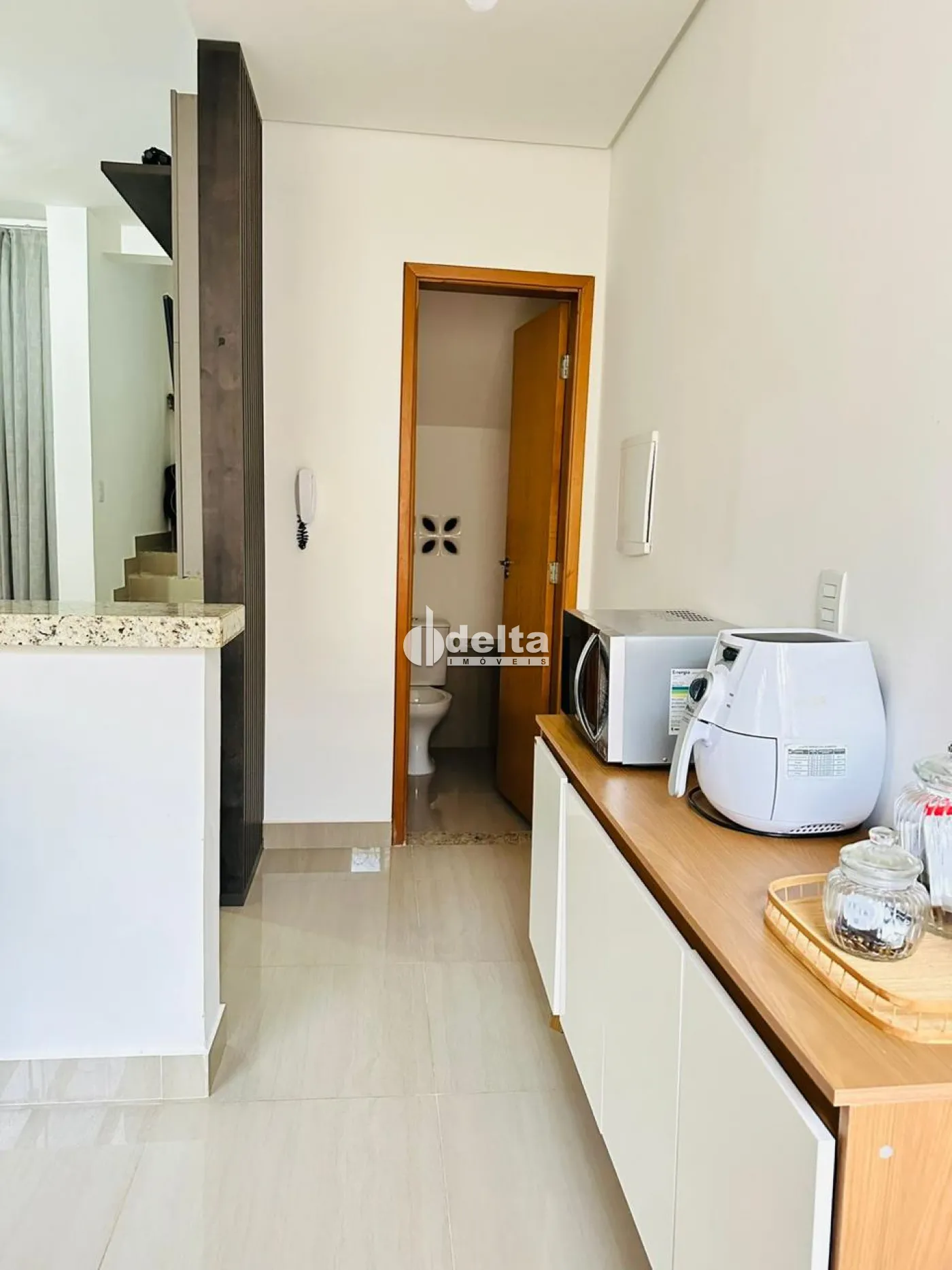 Casa em condomínio fechado toda mobiliado com 75m² de área construída, sendo sala de TV com painel e sofá, 2 quartos com armários sendo 1 deles com sacada, cozinha completa com armários, área gourmet com churrasqueira, banheiro social, no piso superior e 1 banheiro no piso inferior, 1 vaga de garagem coberta.