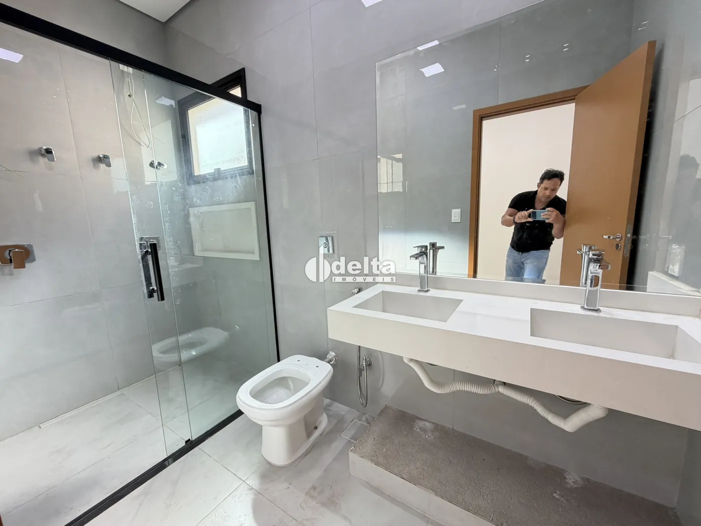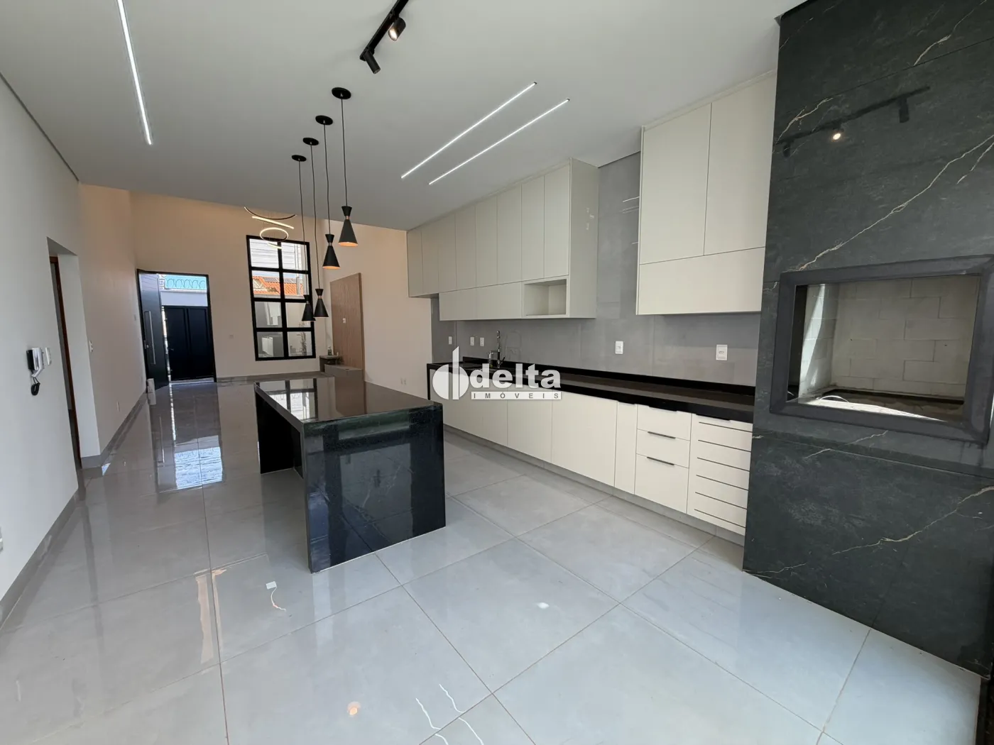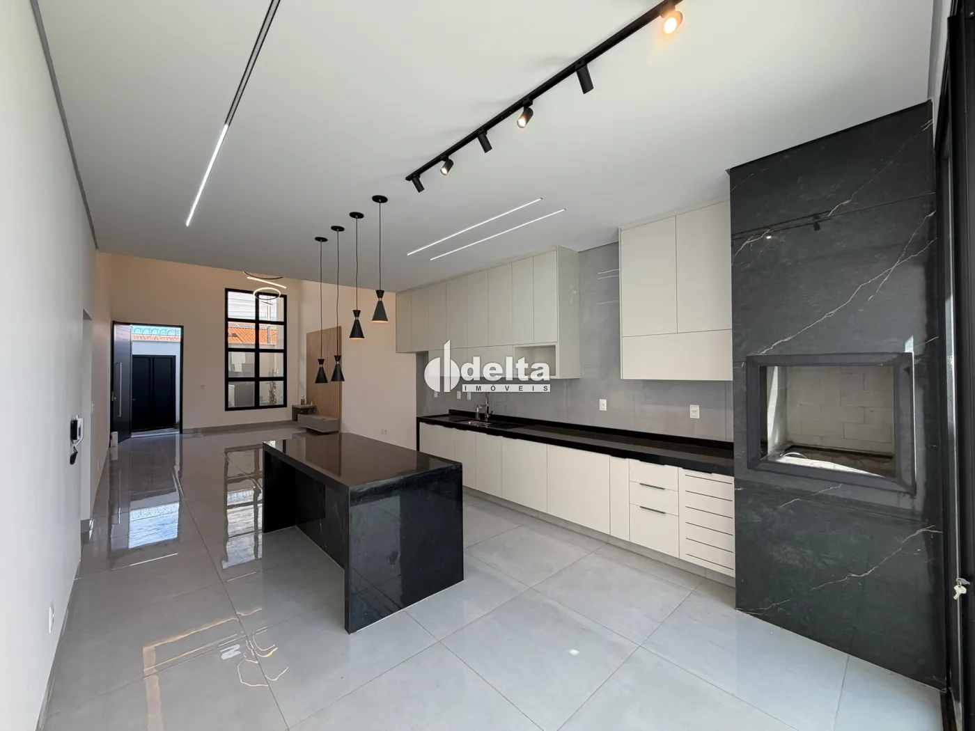 Casa nova com aproximadamente 190 m² de área construída, composta por sala ampla com pé-direito duplo e painel de TV, 3 suítes com armários sendo 1 máster com closet, banheiro social, cozinha integrada ao espaço gourmet com armários planejados e área de serviço separada.