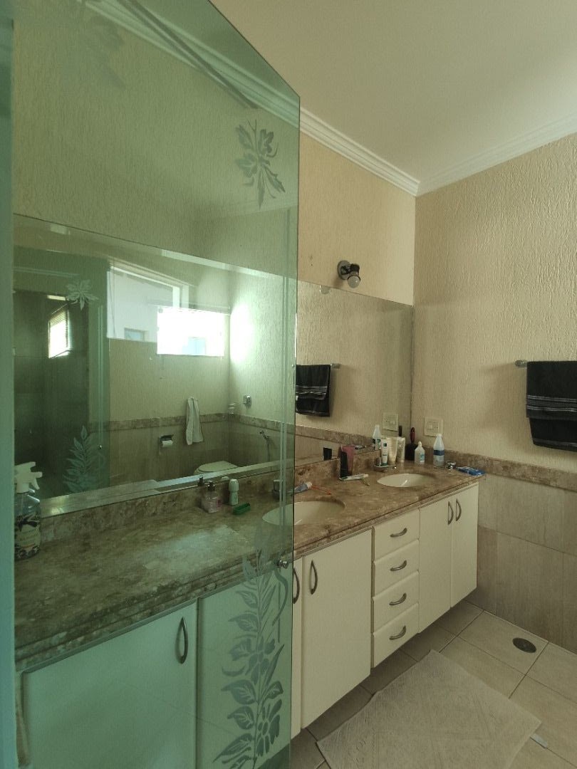 Casa nova 1ª locação. Estilo sobrado em condomínio fechado sendo 5 quartos, 4 suítes (1 suíte master), 2 suítes comuns, 1 semi suíte, 1 suíte no térreo reversível para home office, escritório, sala de tv e sala de jantar, pé direito duplo de 6,70m, elevador, cozinha integrada e planejada com armários, despensa, lavanderia separada, piscina, ducha, jardim, piso porcelanato, 4 vagas de garagem, 1ª locação. Condomínio com portaria 24 horas, piscinas, quadras poliesportivas, academia, playground.