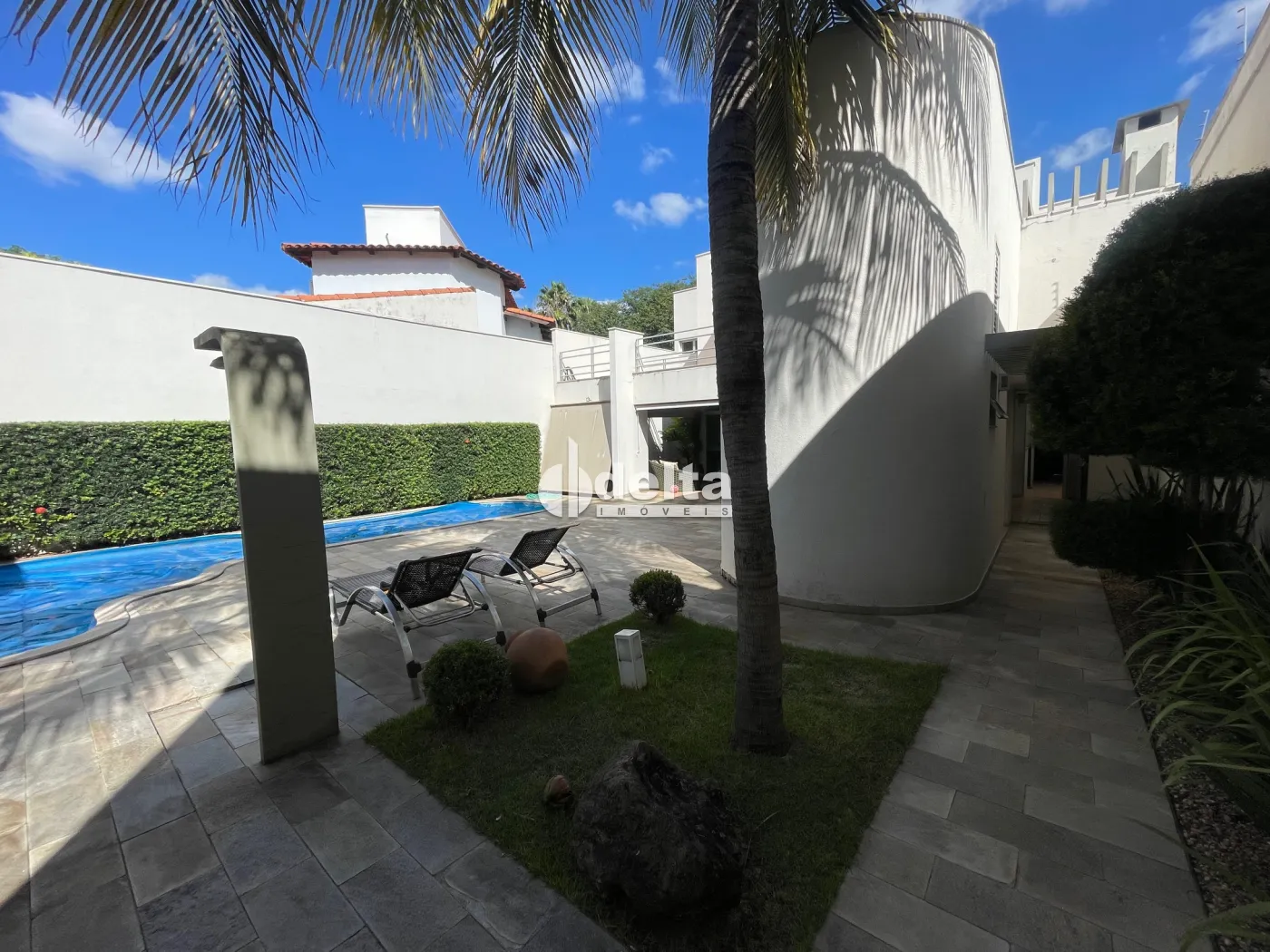 Casa de esquina com aproximadamente 500 m² de área construída e 1.000 m² de área total, sendo hall de entrada, lavabo, sala de visita, sala de TV, sala de jantar, sala de jogos, 5 suítes sendo 4 com sacada (suíte máster com closet e hidromassagem), escritório, cozinha planejada com armários, lavanderia, área de lazer com piscina de 80.000 litros com cascata, sauna, área gourmet com churrasqueira, jardim, varandas, garagem para 2 carros e estacionamento para aproximadamente 10 carros, piso de tábua corrida, granito e porcelanato, aquecimento solar.