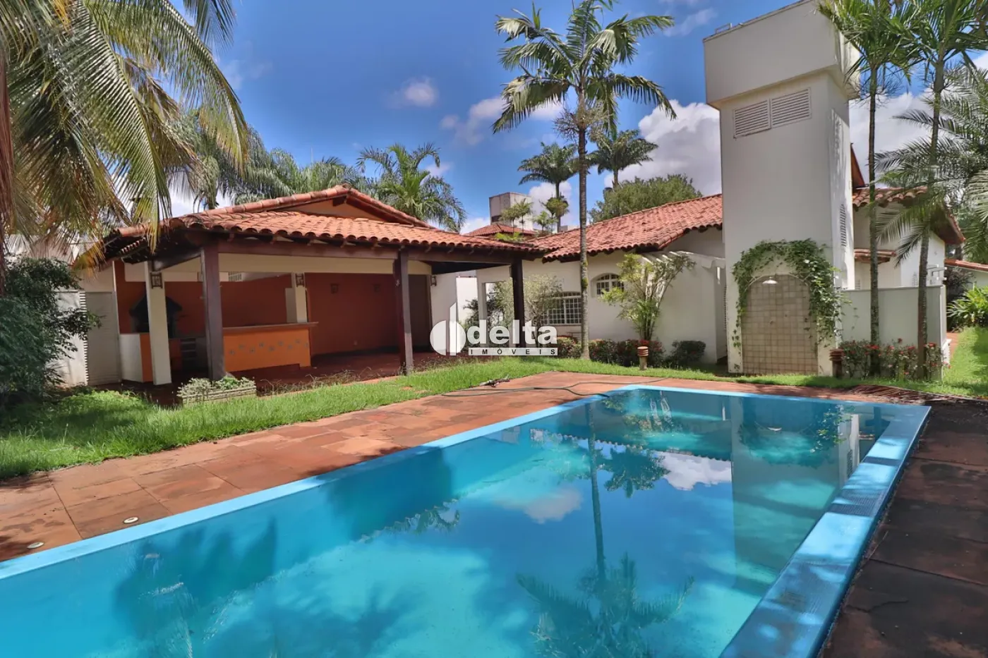 Casa de alto padrão com aproximadamente 450m², em excelente localização. Possui 4 salas amplas, lavabo, jardim de inverno, 3 quartos com armários (sendo 2 suítes com closet e hidromassagem), banheiro social com box, armário e espelho, cozinha completa com armários planejados e despensa, área de serviço, quarto de empregada, ampla varanda gourmet com quiosque e bancadas, piscina, ducha, canil e jardim com irrigação automática. Conta ainda com garagem coberta para 02 carros e estacionamento para mais 03 veículos, aquecedor solar, sistema de segurança, portão eletrônico e interfone. Acabamento de alto padrão com piso em mármore e tábua corrida.