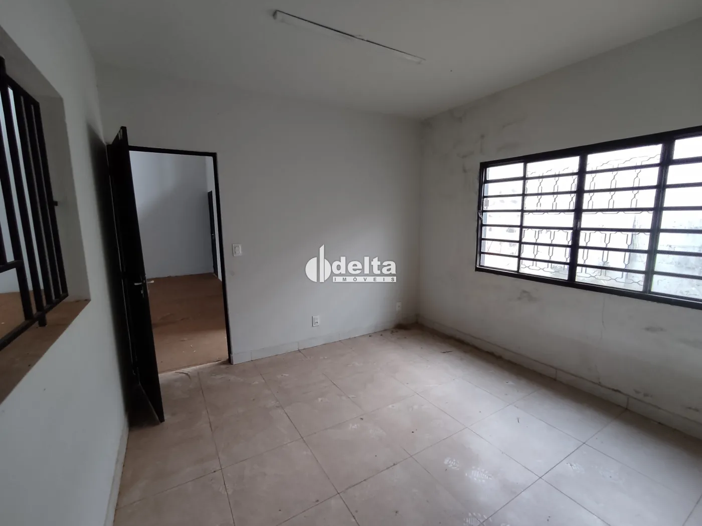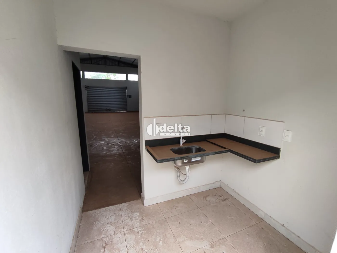 Imóvel comercial de esquina com fácil acesso à rodovia BR-365 e anel viário. No 1º piso, possui sala, recepção com banheiro (aproximadamente 40m²) e galpão com vão livre de 460m² com piso de concreto usinado. Conta com entrada para sala recepção e entrada lateral para galpão por portão de aço medindo 3,80m de altura por 6m de largura. No 2º piso, kitnet de 40m² com sala, cozinha conjugada com área de serviço e 1 quarto com sacada.