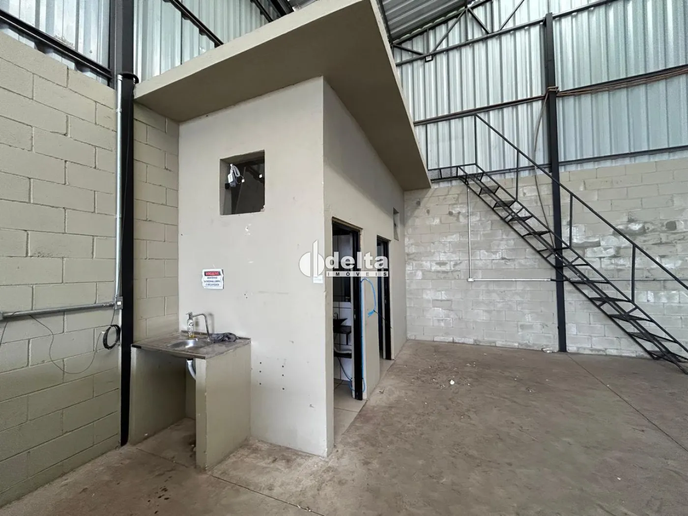 Galpão com aproximadamente 200 m² de área coberta, composto por amplo espaço funcional, 2 banheiros e pequeno espaço com bancada e pia. O imóvel possui preparação para instalação de escritório em mezanino.