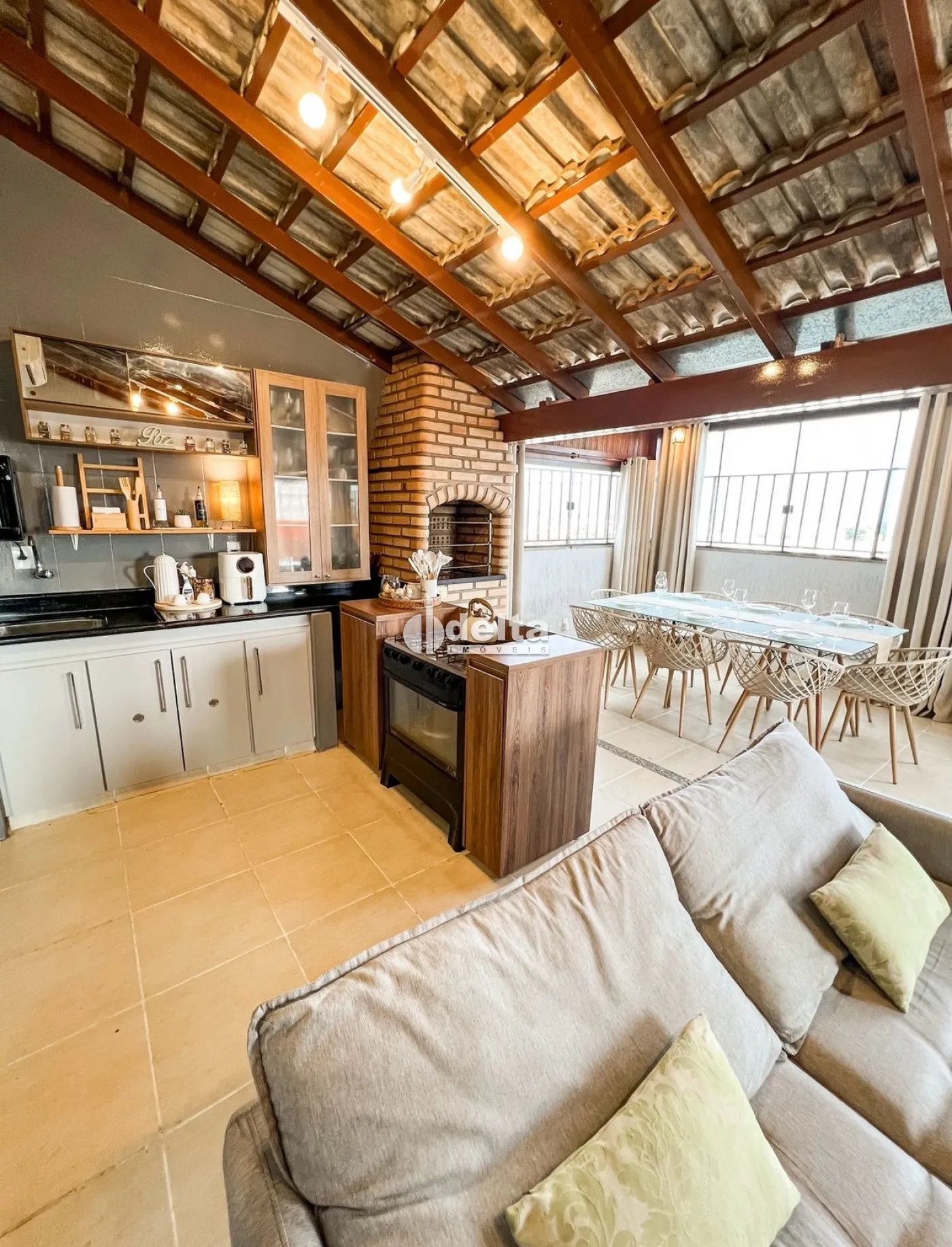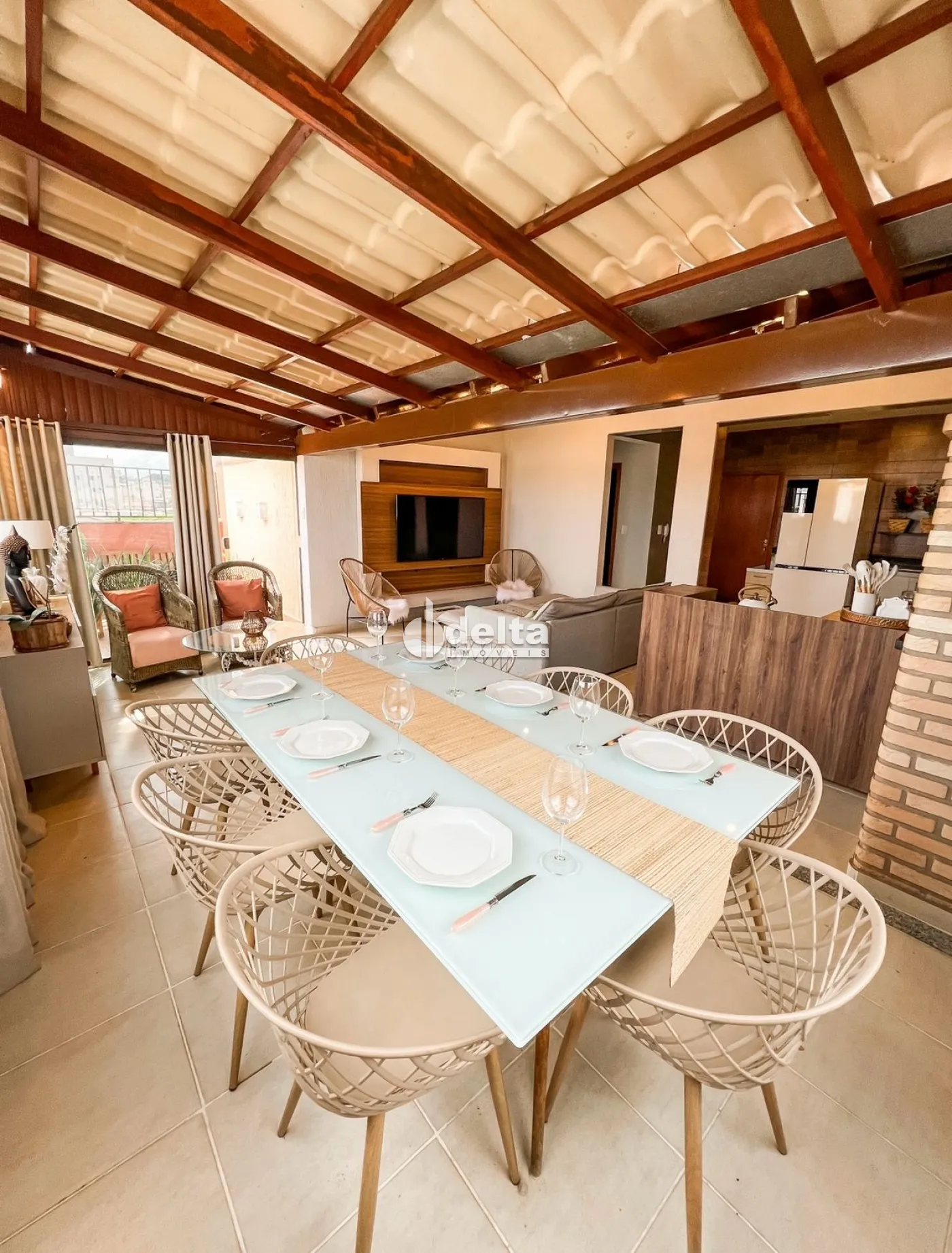 No segundo piso, dispõe de sala adicional, banheiro social, um quarto, cozinha, lavanderia, sala de TV e uma ampla área gourmet com espaço aberto.