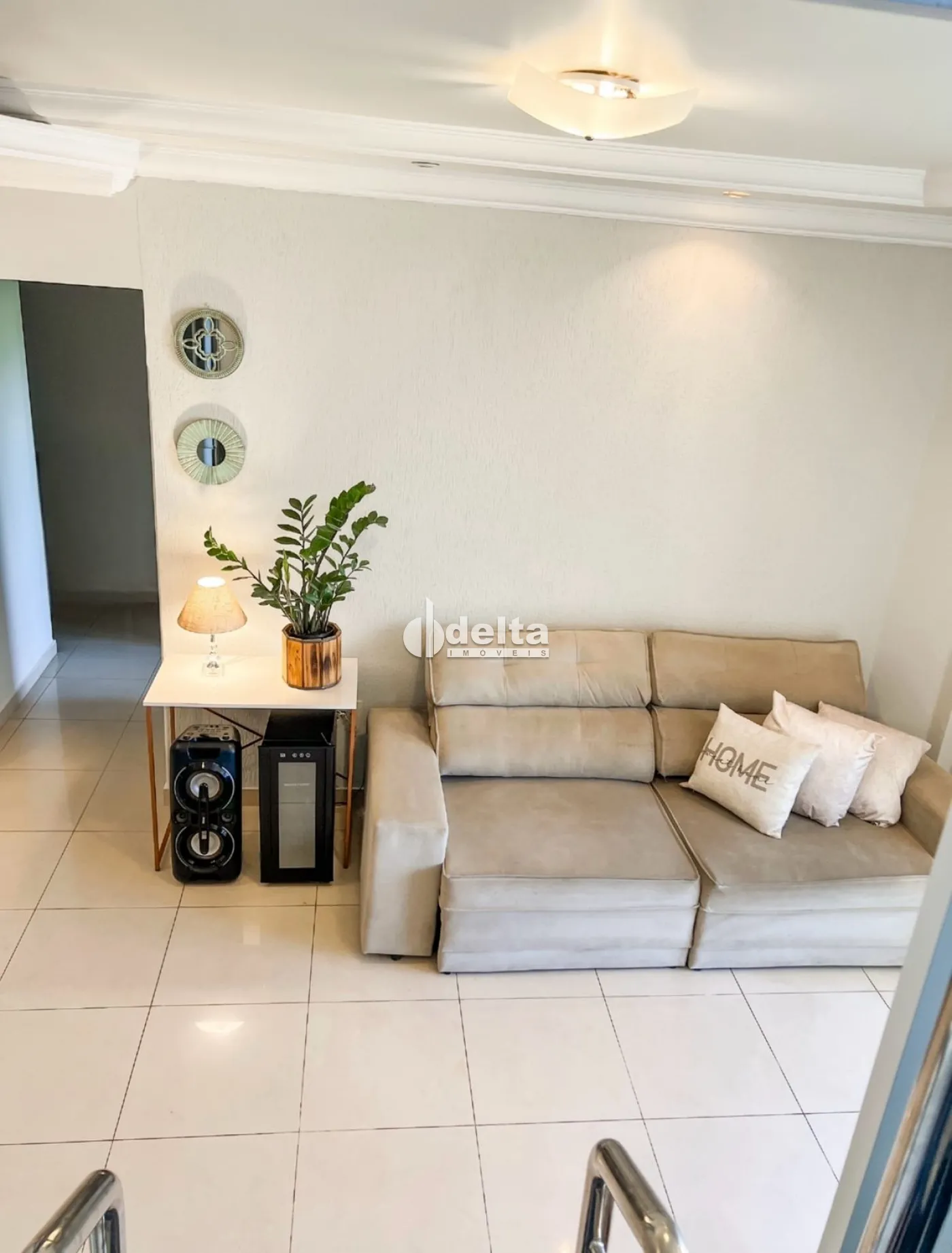 No primeiro piso, conta com sala em dois ambientes e sacada fechada em blindex, quatro quartos, sendo uma suíte com sacada, além de um banheiro social.