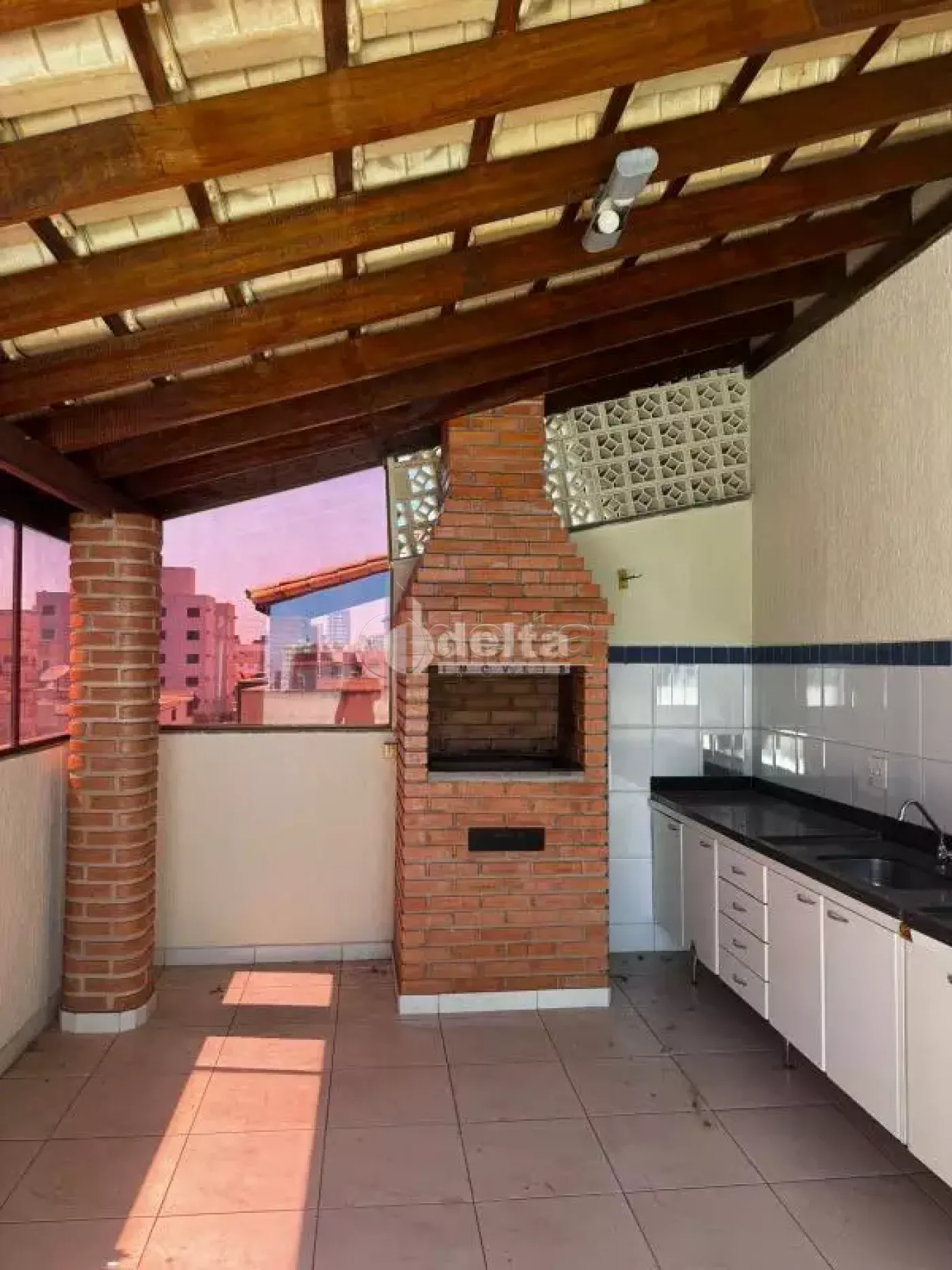 Cobertura de 200m² de área privativa, próxima à UFU, com 3 quartos no primeiro piso, sendo 1 suíte com varanda, sala, cozinha, lavanderia e banheiro social. No segundo piso, 2 salas, lavabo, 1 suíte com varanda e terraço com pia e churrasqueira. Prédio com elevador, segurança e gás canalizado. Possui 3 vagas livres, aquecedor solar e armários planejados.