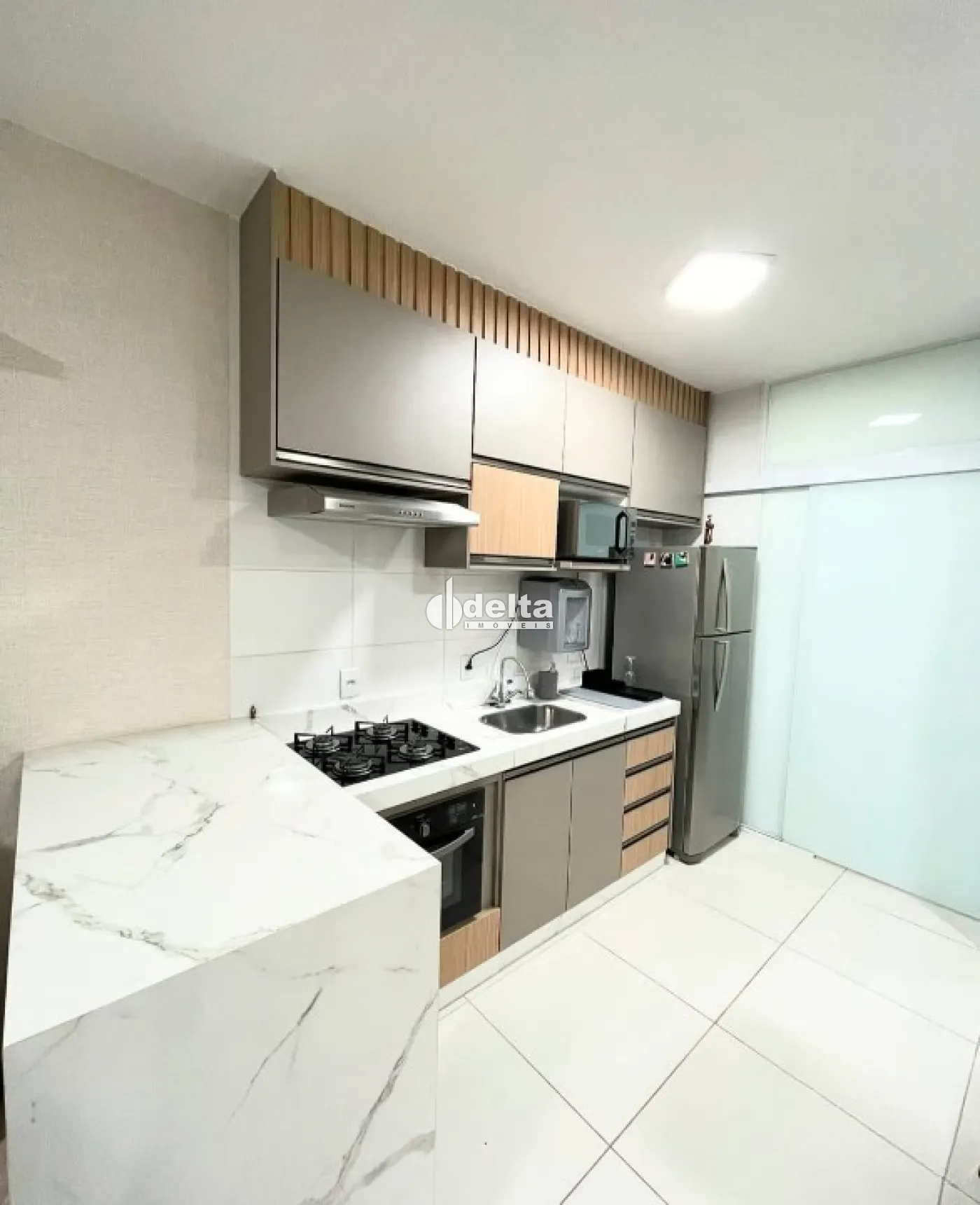Apartamento térreo com 63 m², sala com papel de parede lavável, dois quartos, sendo uma suíte, banheiro social, cozinha planejada com armários, balcão e pias em porcelanato, cooktop e forno a gás sob medida, lavanderia com porta de separação e duas áreas externas, sendo uma aberta e outra fechada. Possui móveis planejados em todos os cômodos e uma vaga de garagem coberta. As áreas comuns oferecem portaria 24 horas, gás encanado, água inclusa no valor do condomínio, entrada com reconhecimento facial, monitoramento por câmeras, energia solar nas áreas comuns, e uma área gourmet simples e equipada, além de contar com 2 elevadores.