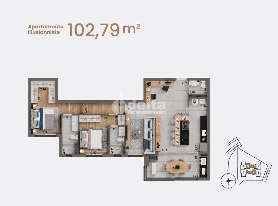 Apartamento com 3 quartos sendo 1 suíte, disponível para venda no bairro Jardim Karaíba em Uberlândia-MG