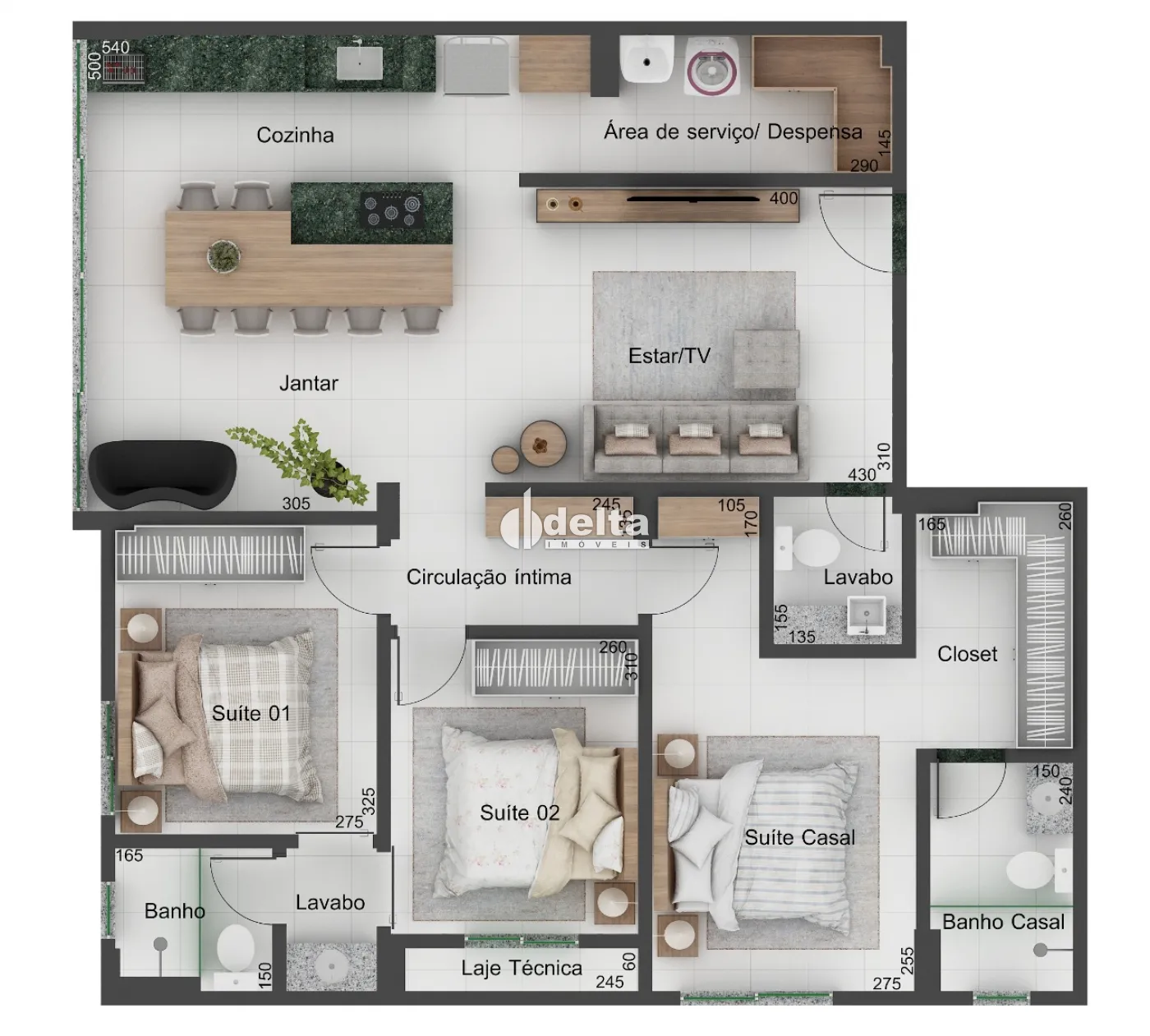 O condomínio oferece completa infraestrutura de lazer com piscina, brinquedoteca, bicicletário, espaço fitness, espaço gourmet e salão de festas, todos entregues mobiliados pela construtora. Diferenciais como preparação para ar-condicionado, gás canalizado, rodapés embutidos, nichos nos banheiros e porcelanato 84x84 garantem praticidade e sofisticação.