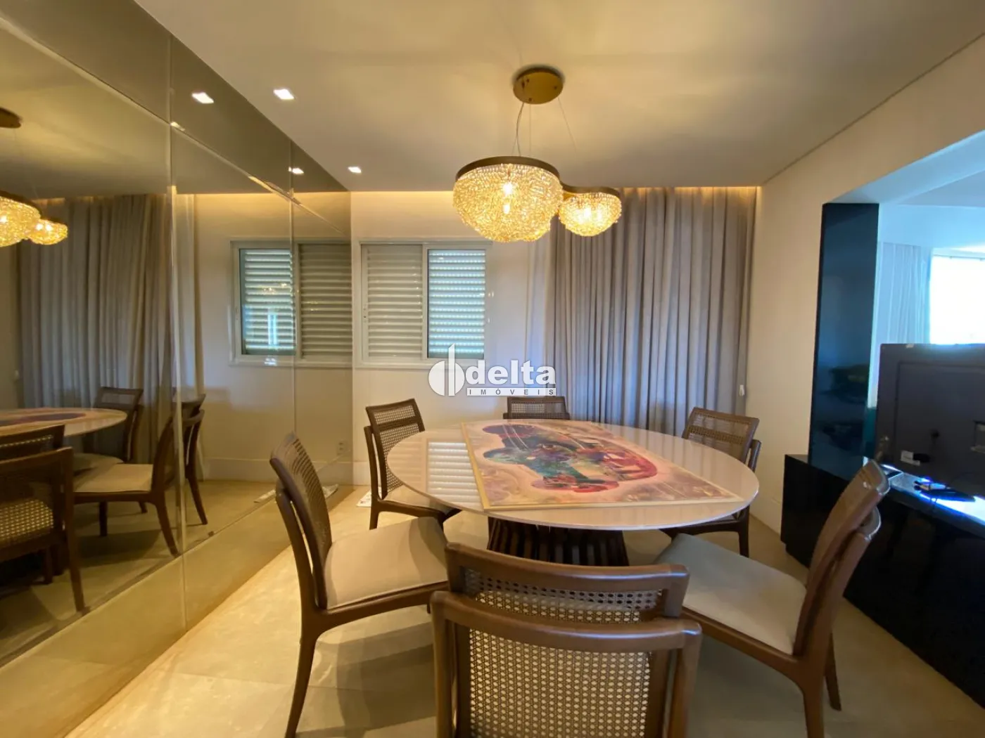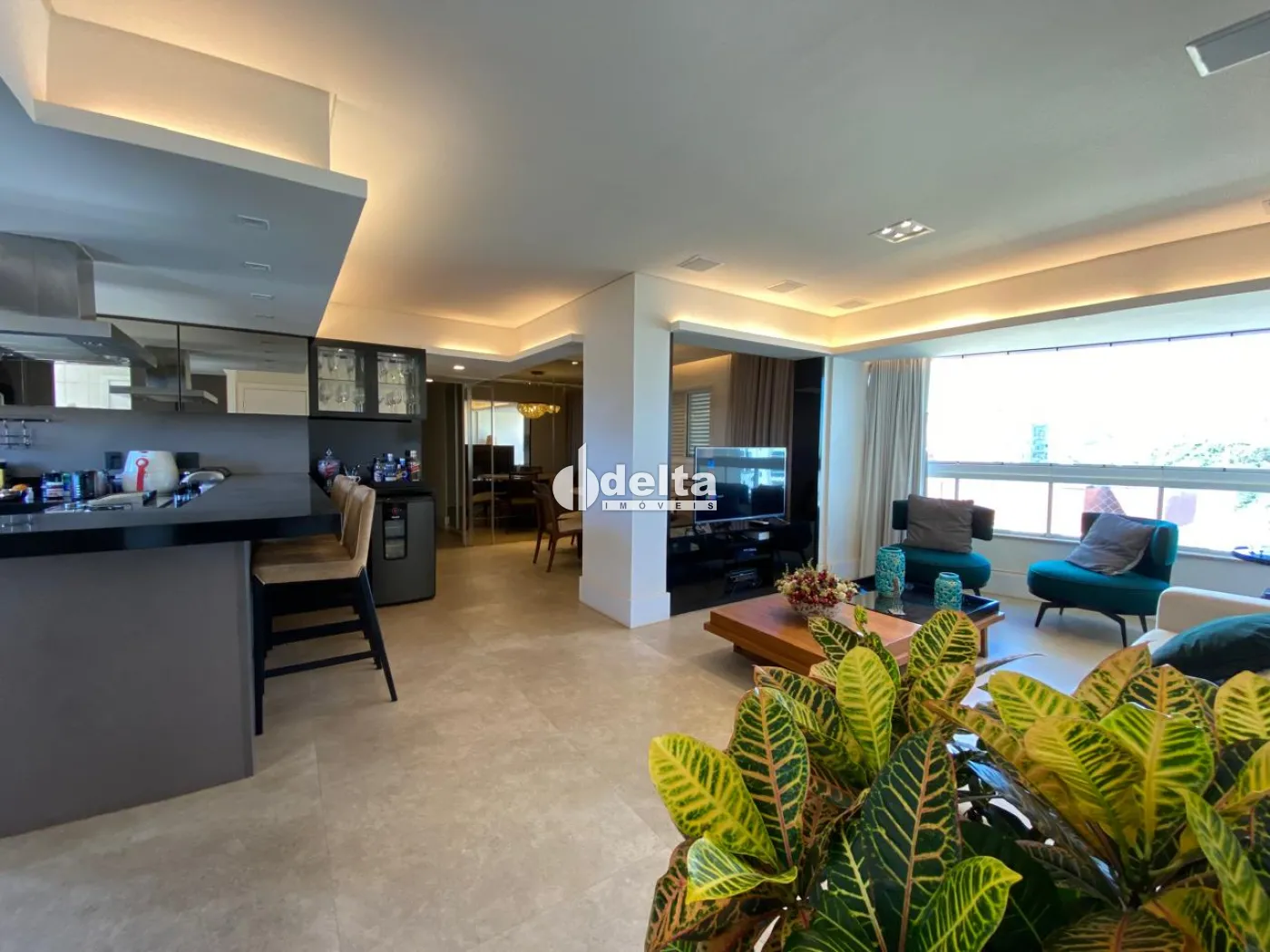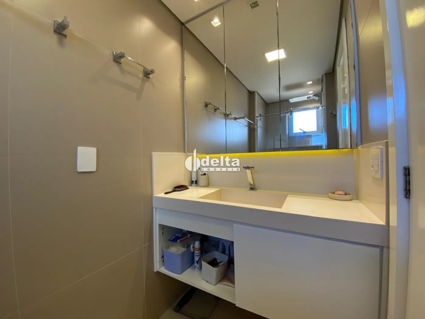 Apartamento com 108m² de área privativa, sala de jantar e sala de TV, cozinha americana planejada com armários, cooktop, forno embutido e coifa. São 3 quartos, sendo 1 suíte, todos com armários e ar-condicionado. Área de serviço com armários. Possui 2 vagas de garagem.