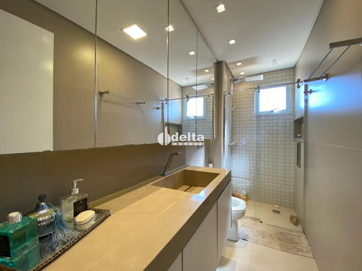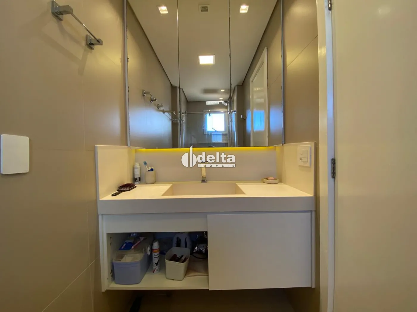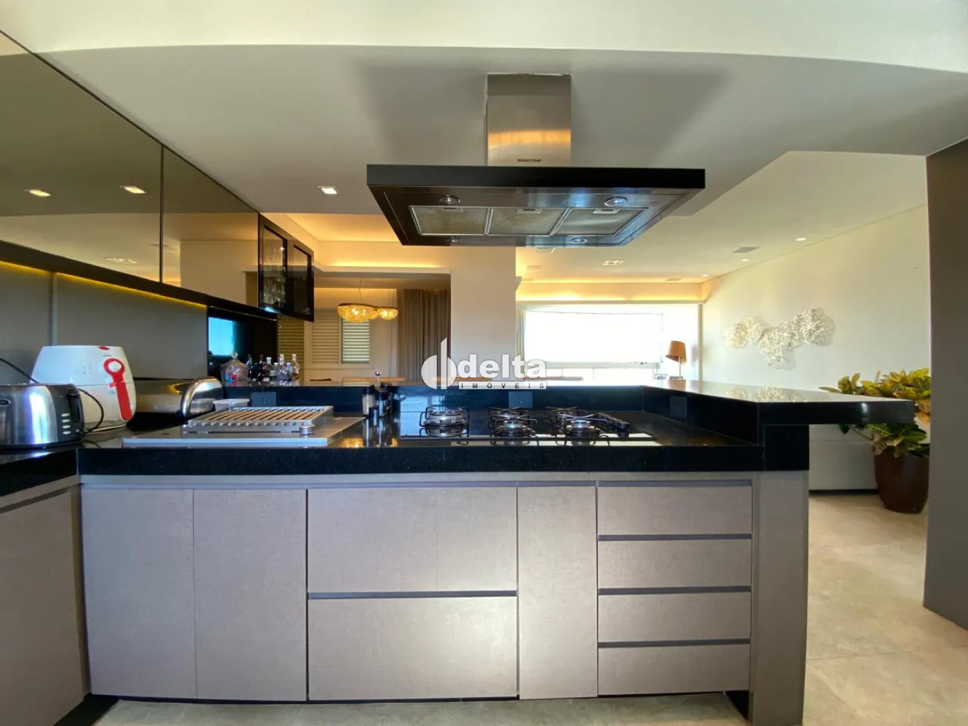 Apartamento com 108m² de área privativa, sala de jantar e sala de TV, cozinha americana planejada com armários, cooktop, forno embutido e coifa. São 3 quartos, sendo 1 suíte, todos com armários e ar-condicionado. Área de serviço com armários. Possui 2 vagas de garagem.