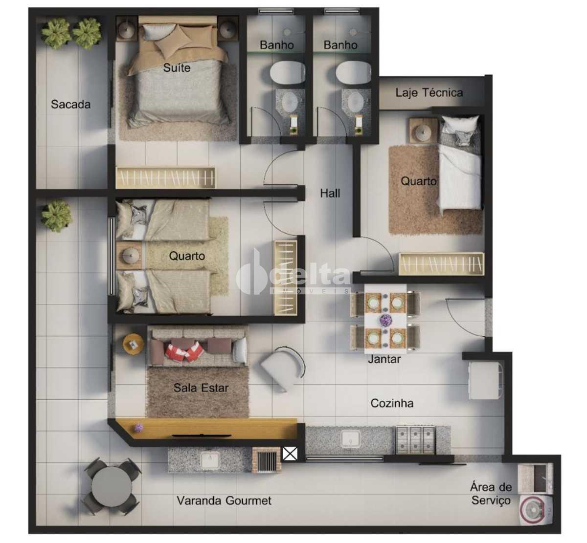 Amplo apartamento com aproximadamente 86m² de área privativa todo preparado com área técnica e tubulação para ar, possui sala ampla totalmente conjugada com sala de Jantar e cozinha, 3 quartos sendo 1 suíte, banheiro social, área de serviço, varanda gourmet em L, passagem em todos os cômodos e 2 vagas de Garagem. Condomínio com área de lazer, academia, área para bicicletário e espaço Kids com valor aproximado R$ 250,00.