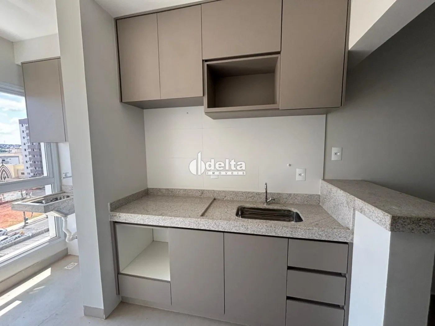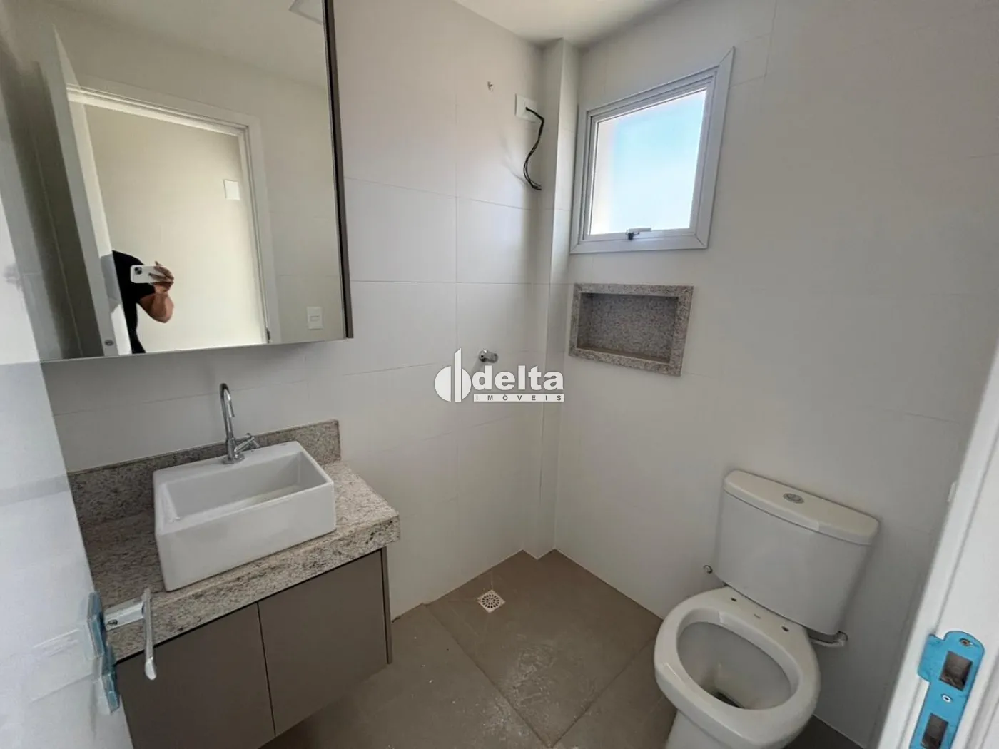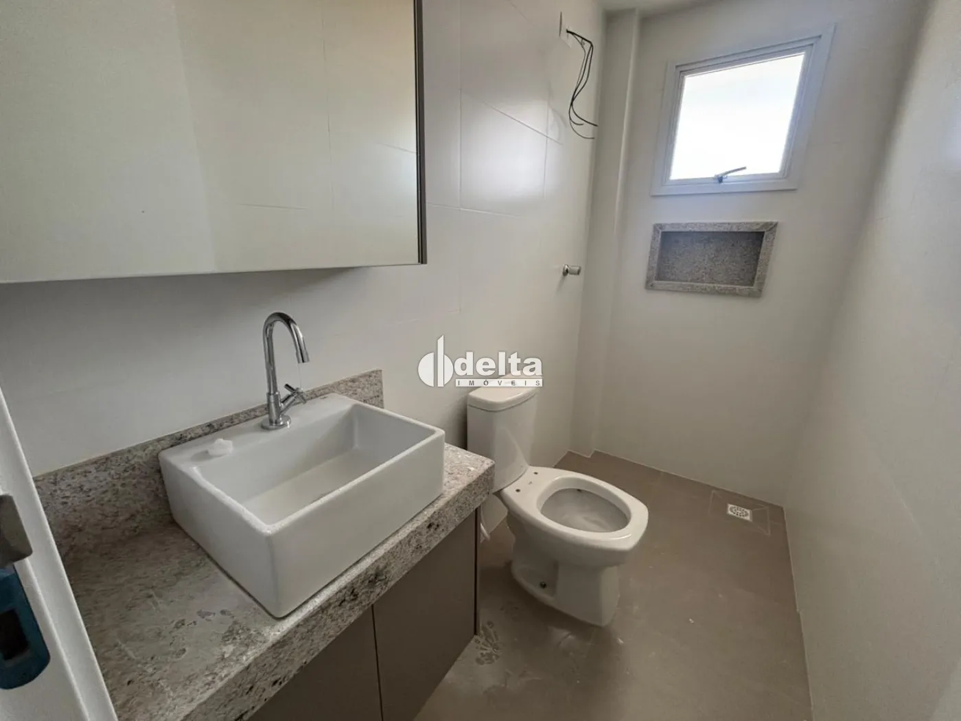 Apartamento novo com 68m², a 180 metros da UFU, com sala, 2 quartos (1 suíte), banheiro social, cozinha, área de serviço e 2 vagas de garagem. Condomínio com elevador, academia, bicicletário, salão de festas, minimercado e recepção decorada. Construção em alvenaria convencional, com gás canalizado e portas com isolamento acústico.