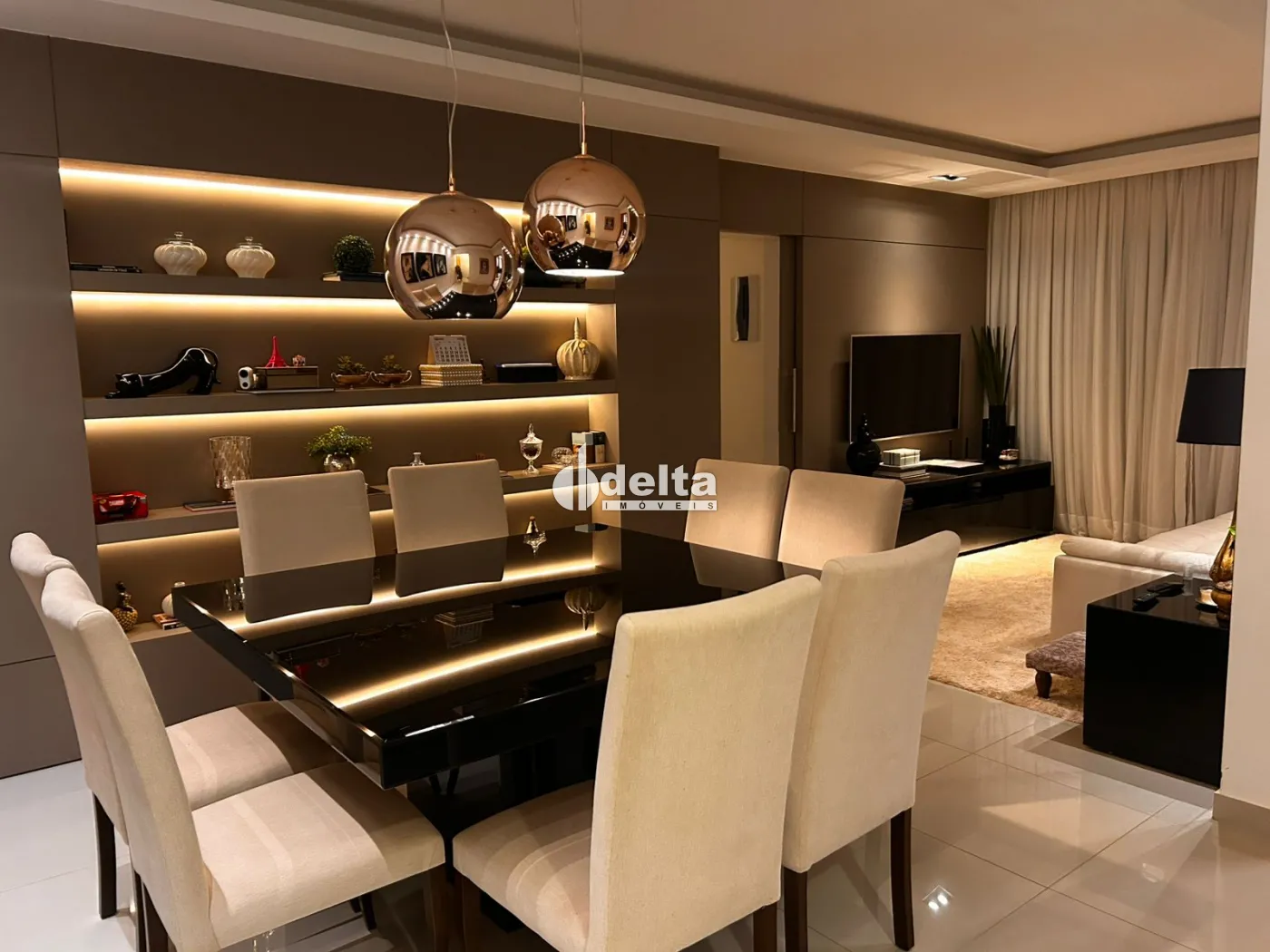Apartamento exclusivo com área privativa de 113m², projetado com móveis planejados de alto padrão e acabamento sofisticado em cada detalhe. Varanda gourmet ampla com armário, pia, painel, perfeita para receber amigos e familiares, 3 quartos, sendo um deles com armário em L, com portas de espelho, penteadeira iluminada e espaço porta joias, sala em dois ambientes com porta painel separando a área íntima, parede inteira em espelho bizotado, painel decorativo no outro ambiente, cozinha moderna com armários planejados com portas de vidro, área serviço completa com armários planejados, lavabo elegante e funcional. Condomínio completo com: salão de festa e brinquedoteca, portaria no período diurmo. A localização é privilegiada, uma das melhores cidade, próximo UFU, com fácil acesso a comércios, restaurantes e tudo que você precisa no dia a dia. Estuda PERMUTA