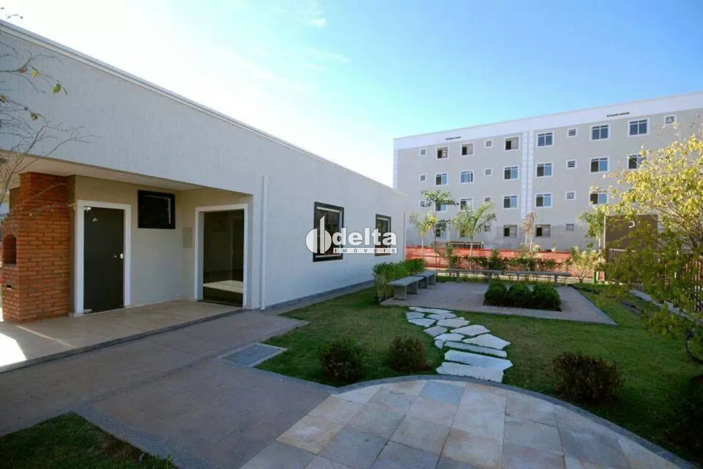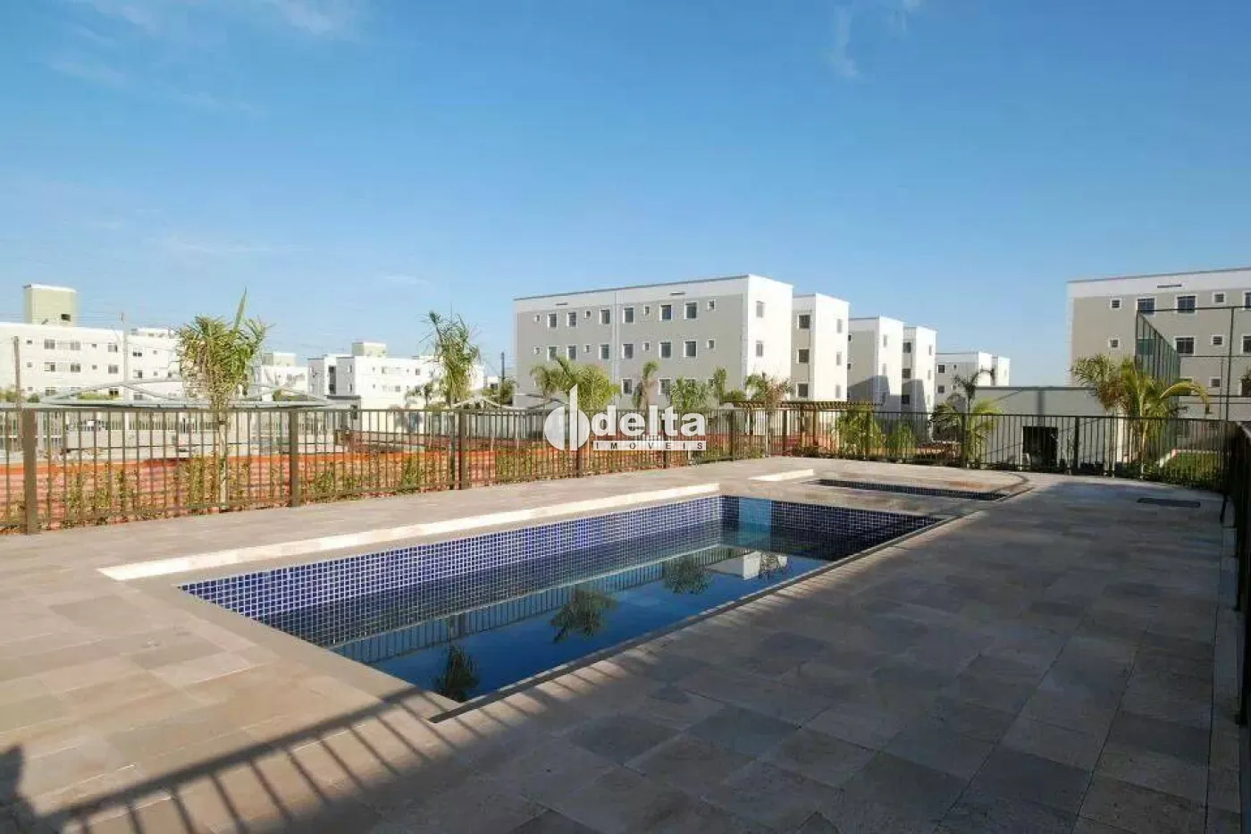 Apartamento com aproximadamente 44 m² de área privativa, composto por sala, 2 quartos, banheiro social, cozinha funcional, área de serviço e 1 vaga de garagem. O condomínio conta com portaria, salão de festas, churrasqueira, 2 piscinas, quadra poliesportiva e playground.