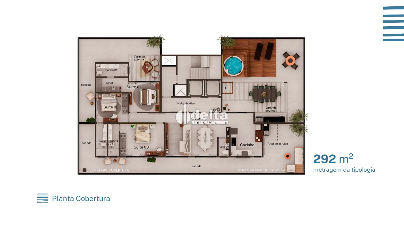 Todas as tipologias possuem 3 suítes com sacada e varanda gourmet