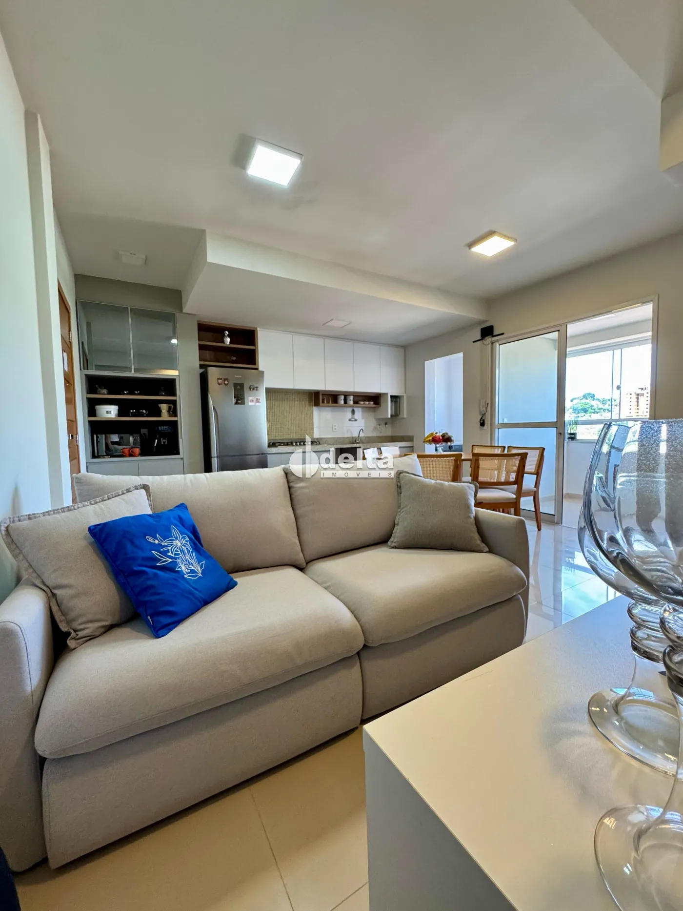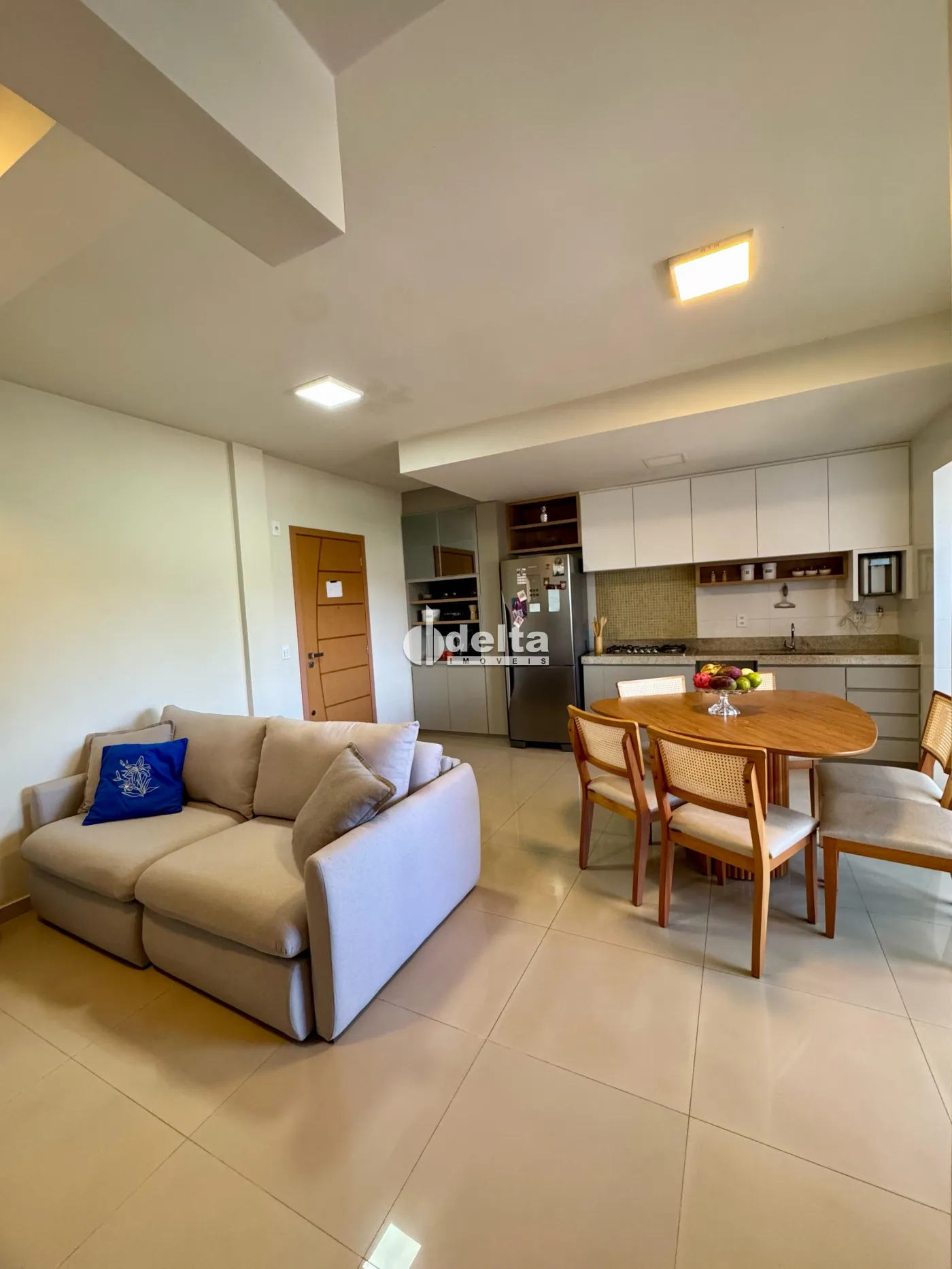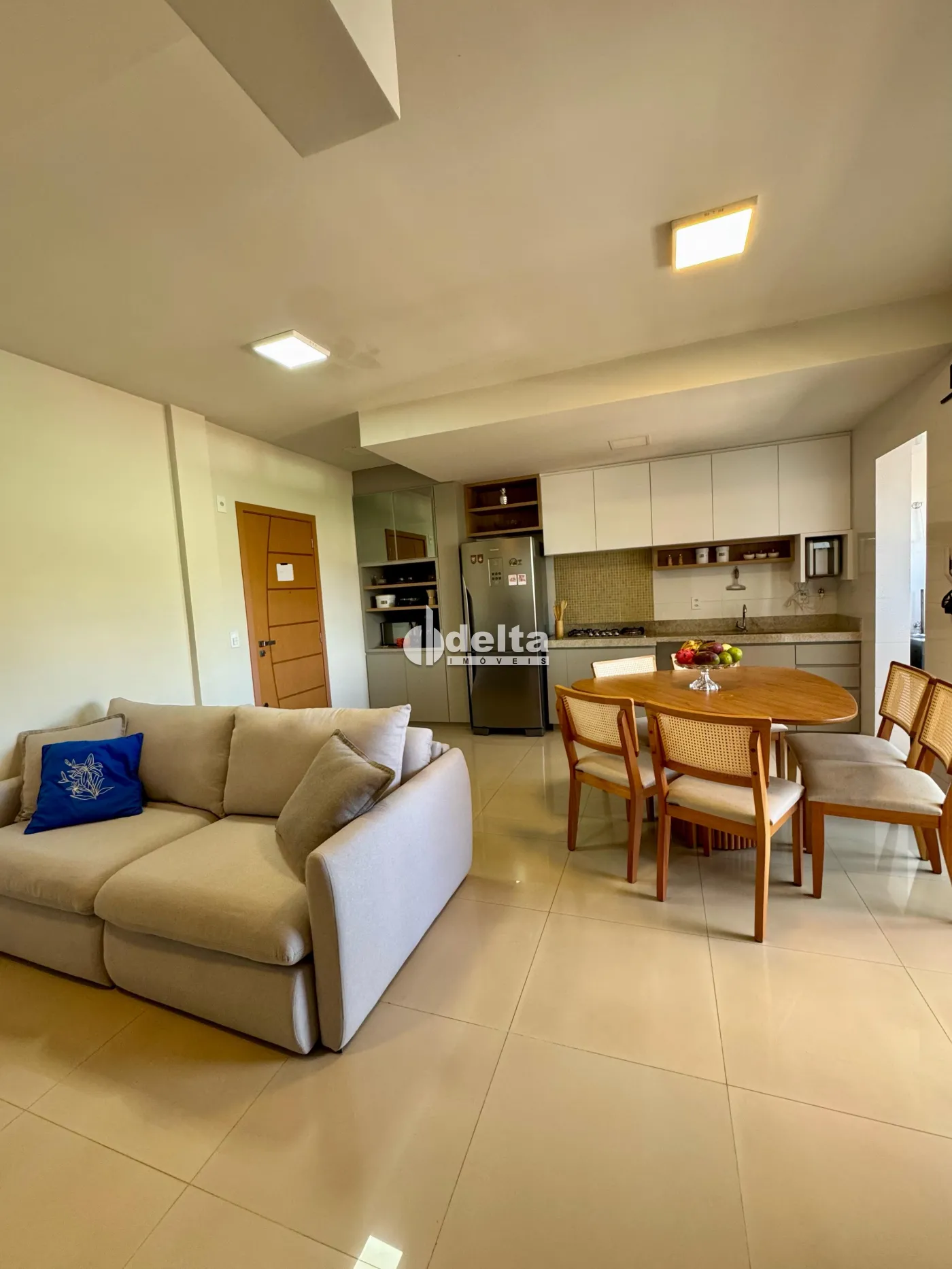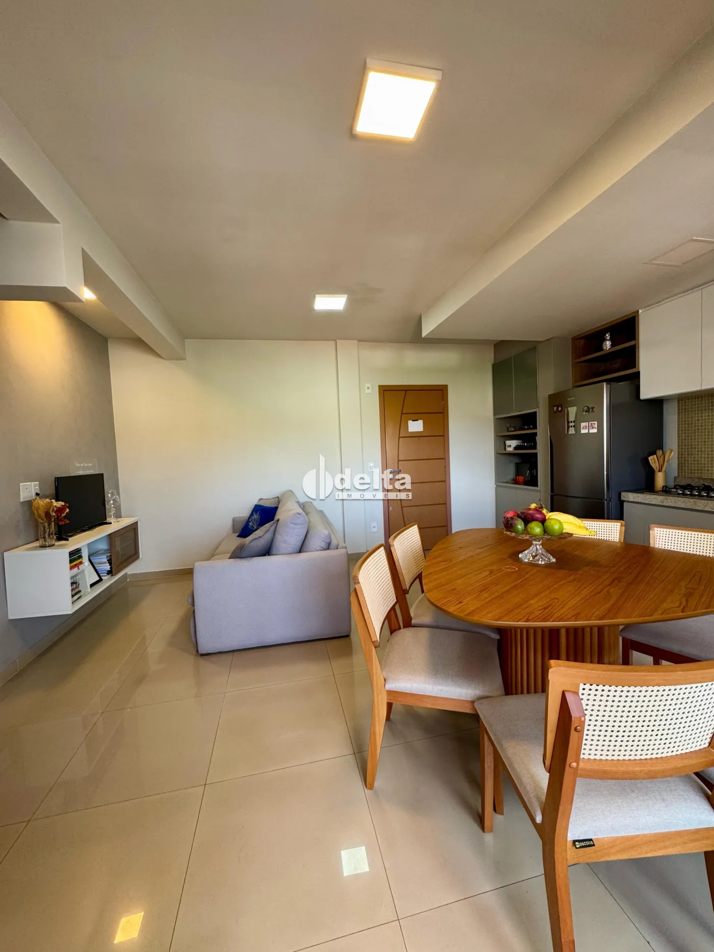 Apartamento com 62m² no bairro Tubalina, próximo ao Praia Clube. Possui dois quartos, sendo uma suíte, banheiro social, sala em dois ambientes integrada à cozinha, área de serviço separada e varanda gourmet. Conta com uma vaga de garagem.