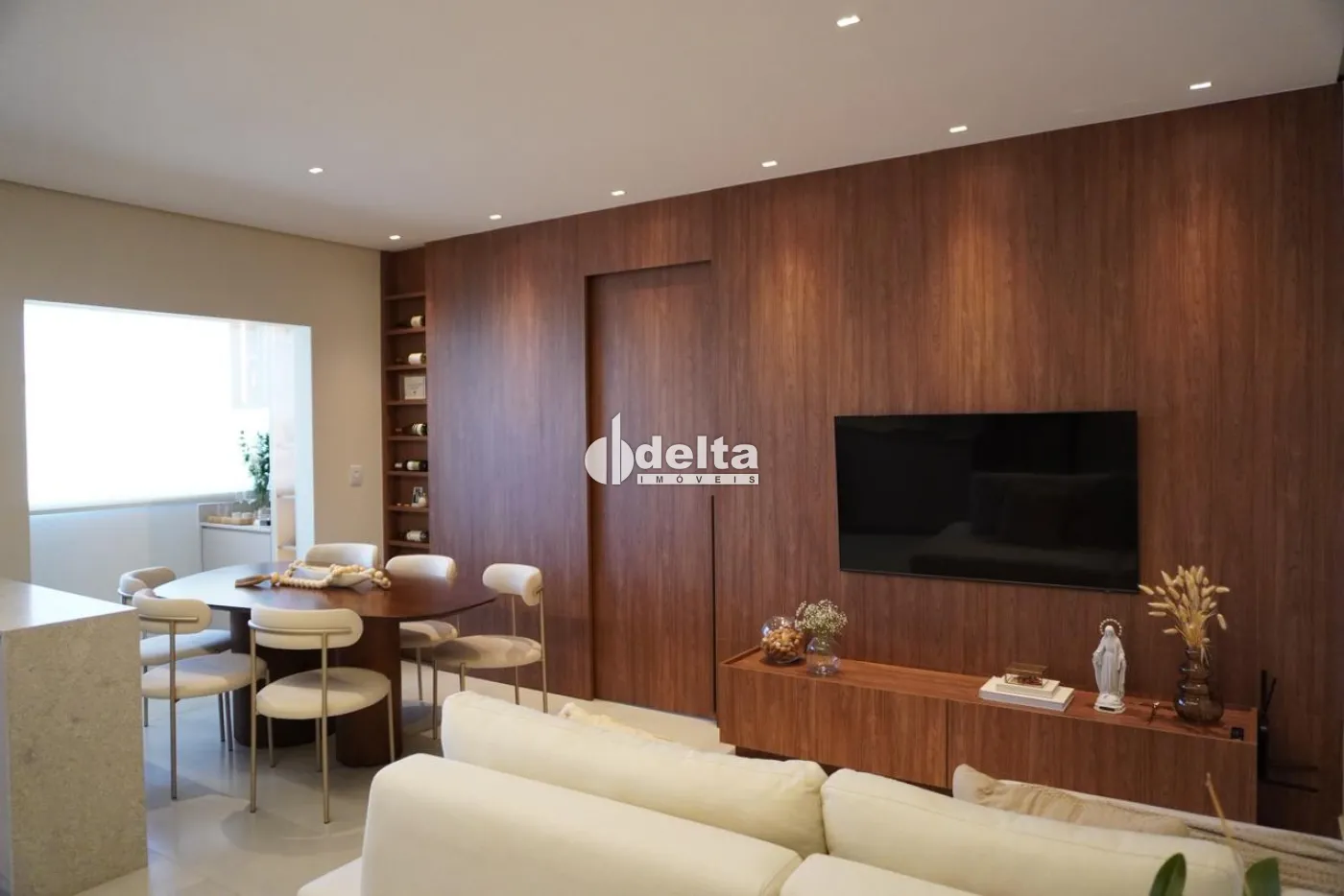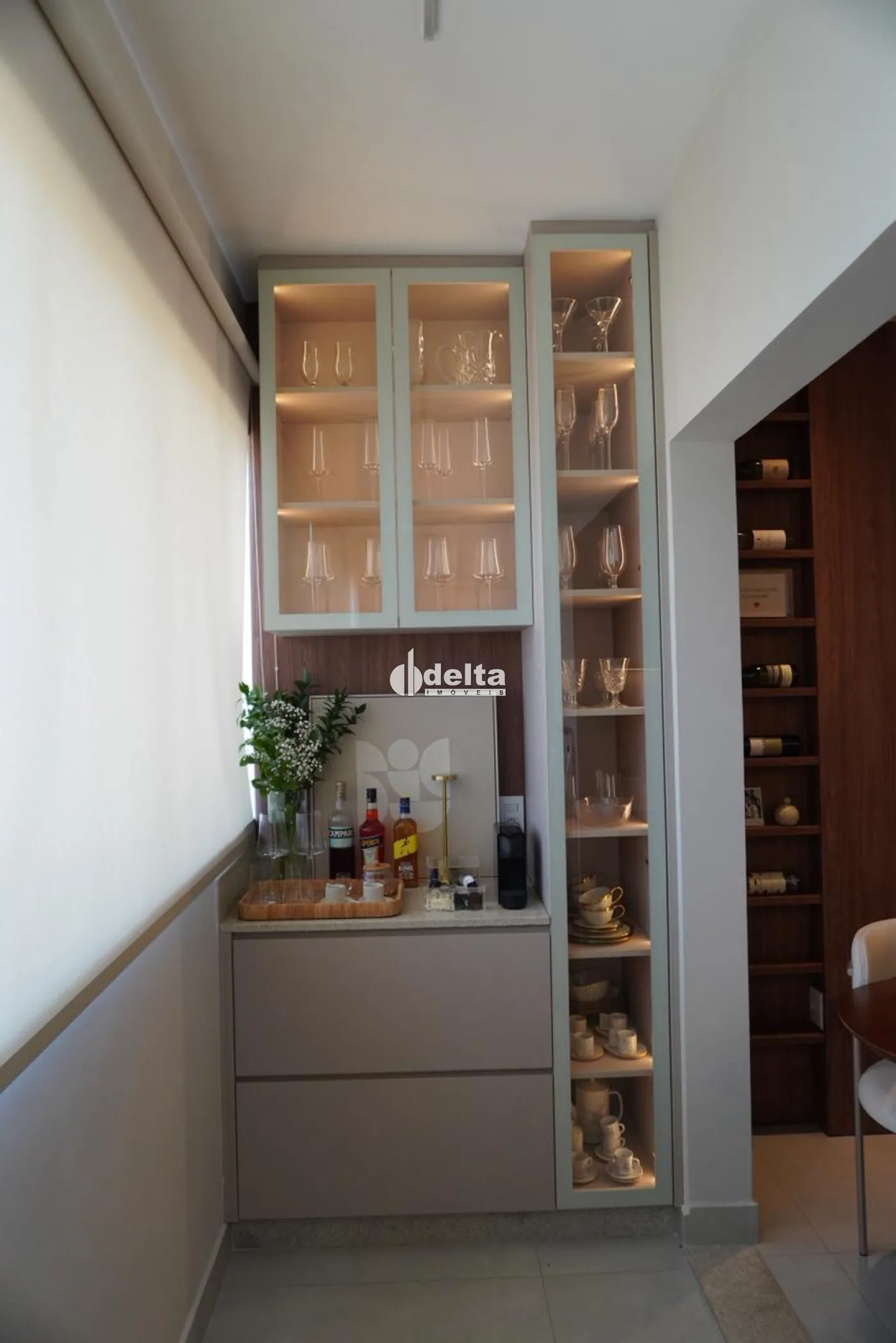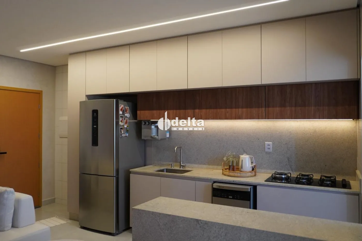 O apartamento possui 59 m² de área útil e conta com sala ampla integrada à cozinha, lavanderia, dois quartos, sendo uma suíte com ar-condicionado, além de banheiro social. O imóvel dispõe de móveis planejados, bancada com acabamento escovado, rebaixo de gesso, iluminação moderna na sala e cozinha, além de cortinas e persianas nos quartos e na sacada integrada.