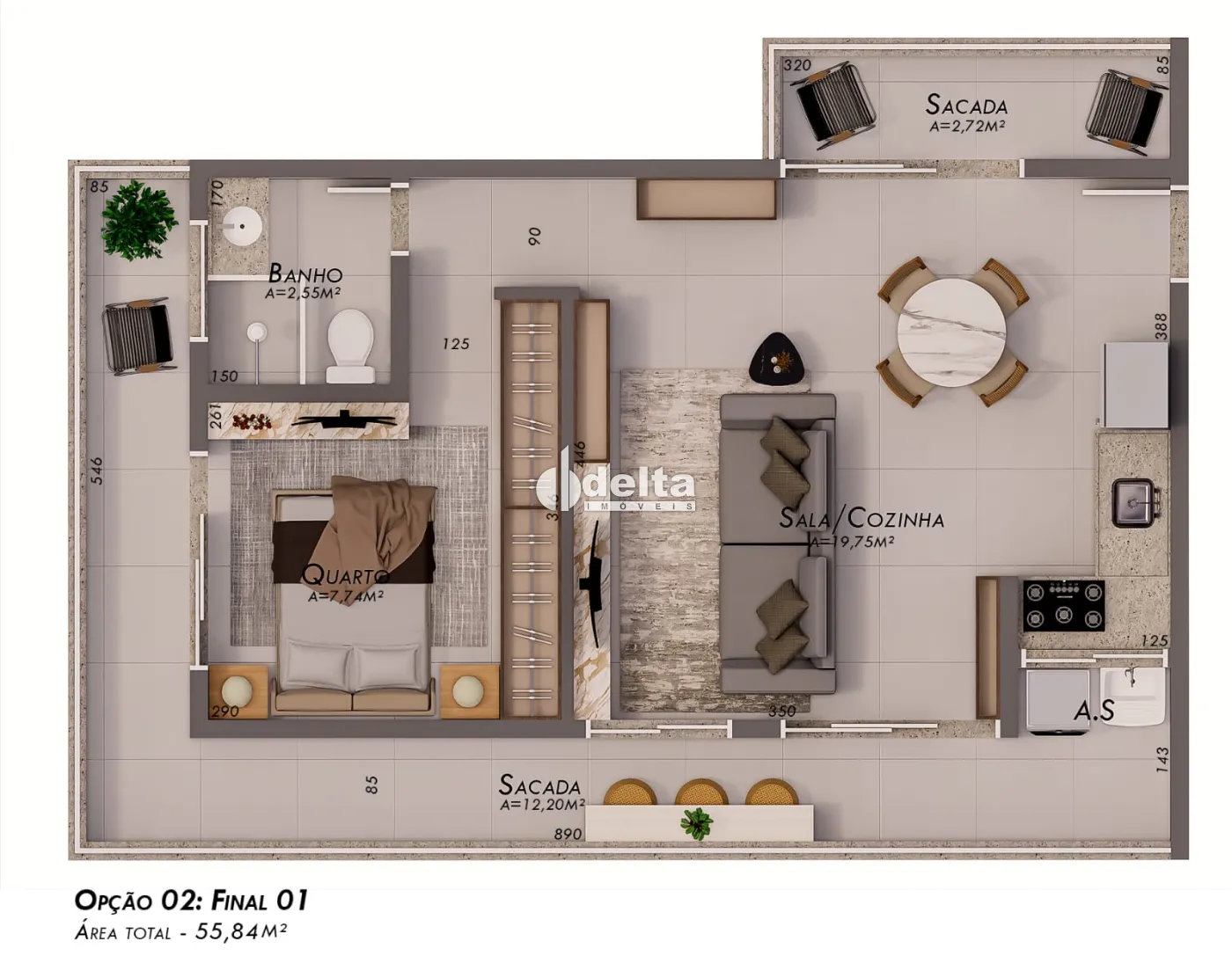 Apartamento novo com 55m² de área útil, pronto para morar, com sala aconchegante, sacada, 2 quartos, banheiro social, cozinha e lavanderia. Possui 1 vaga de garagem e está em condomínio com elevador e quiosque de lazer equipado com churrasqueira a carvão, pia, geladeira e mesas. Localização privilegiada, próximo à Havan, a apenas 450 metros da UFU Veterinária e 400 metros da FAMEU ? Faculdade de Medicina (Campus Clínico).