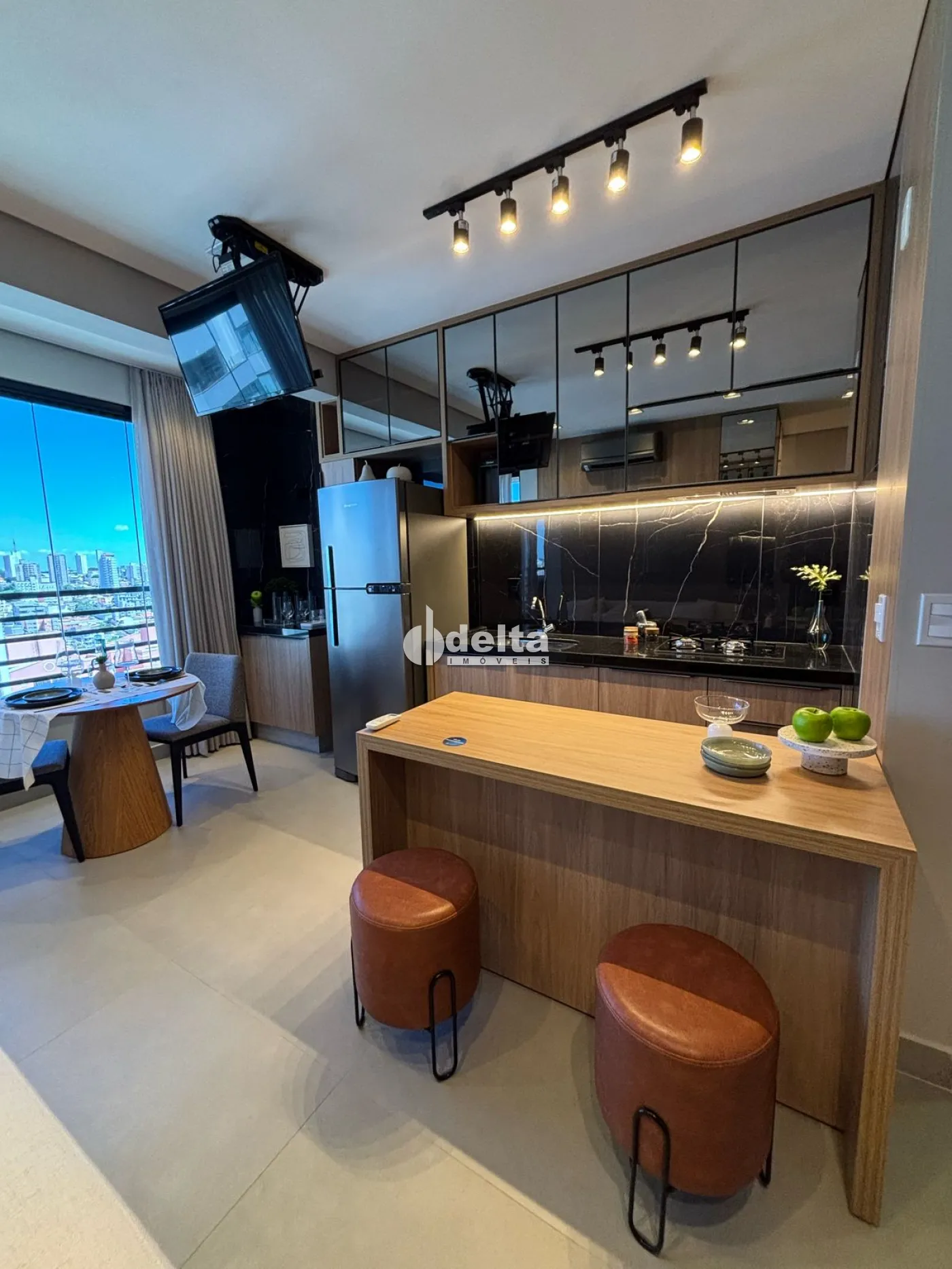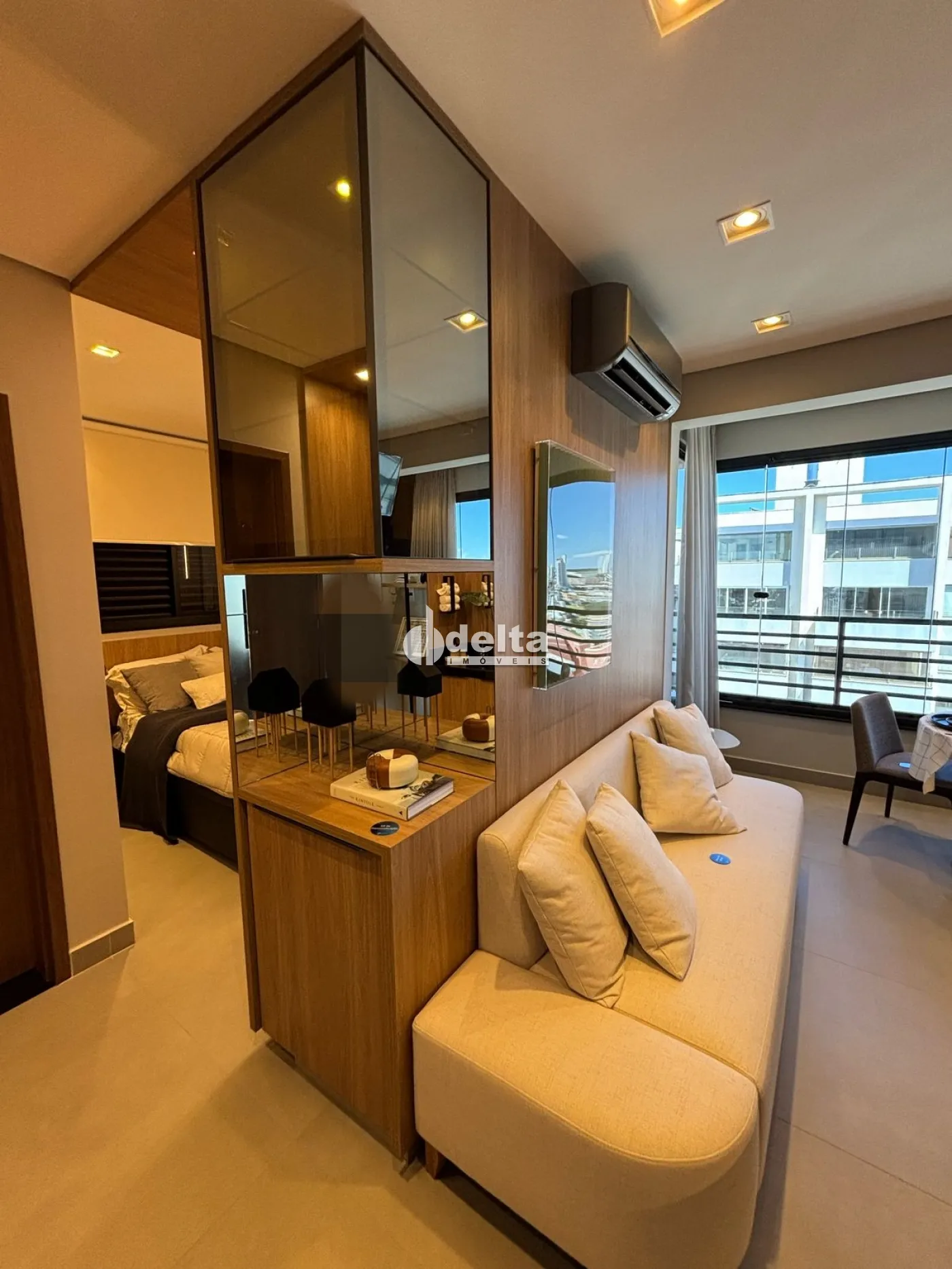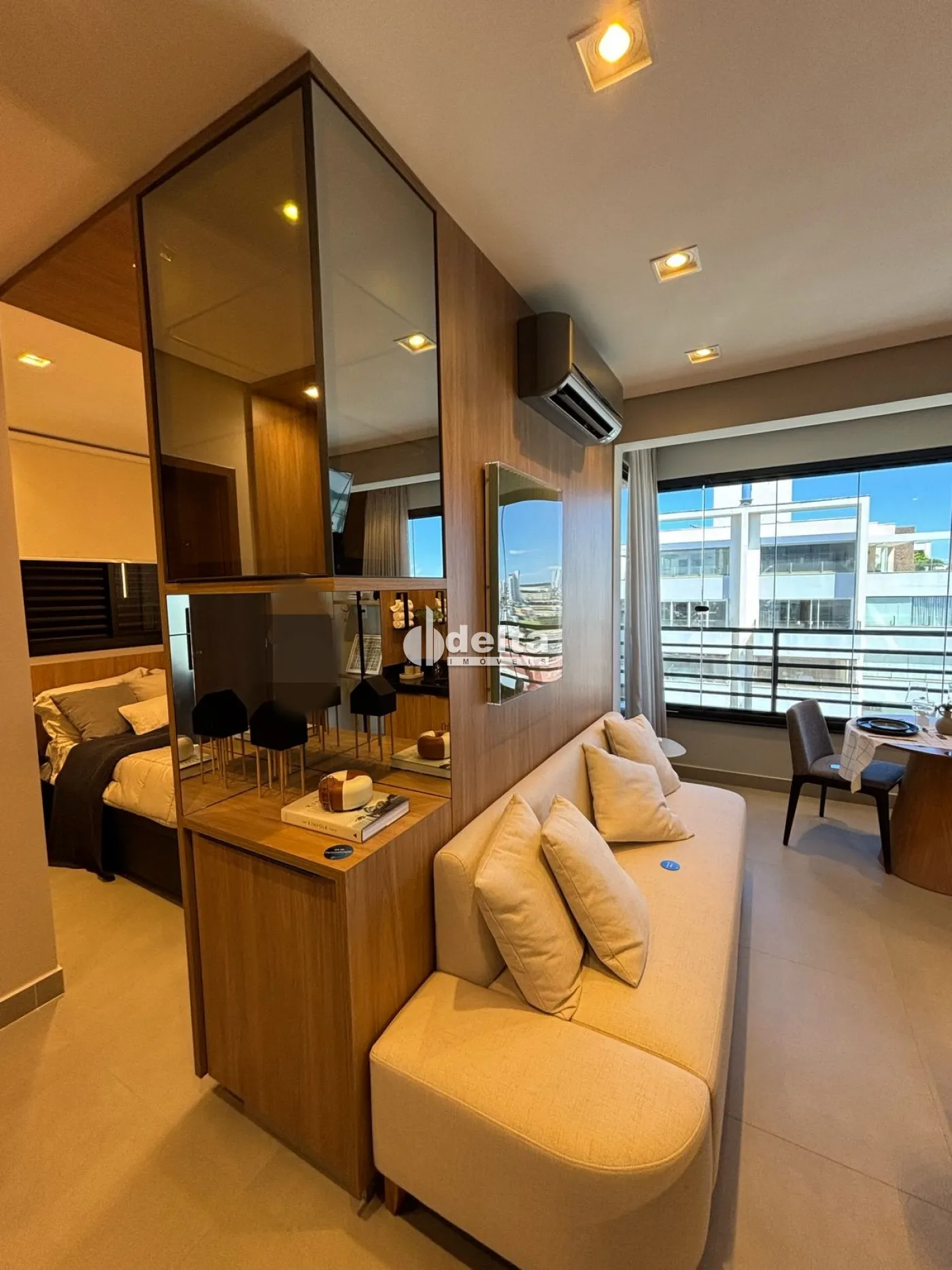 Studio mobiliada com 34m² de área útil, perfeito para quem busca praticidade e modernidade. Conta com um quarto, sala em dois ambientes, cozinha americana, banheiro social e varanda gourmet. Além disso, possui vaga de garagem coberta, elevador social e infraestrutura inovadora com Grabn Go, Fit Live, Drone Delivery e muito mais.