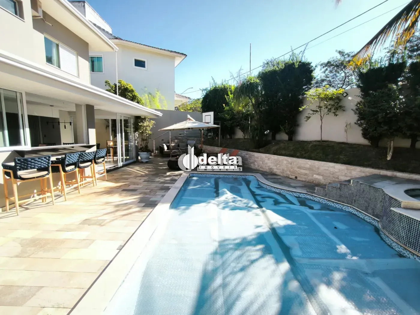 Imóvel estilo sobrado com aproximadamente 230 m² de área construída, sendo 1º piso com sala em 2 ambientes, lavabo, cozinha planejada integrada ao espaço gourmet, lavanderia separada, corredores laterais com acesso à piscina e hidromassagem, banheiro externo, jardim amplo e 4 vagas de garagem. 2º piso com hall, 3 quartos sendo 2 suítes com closet, 1 delas com sacada, banheiro social e piso em porcelanato.