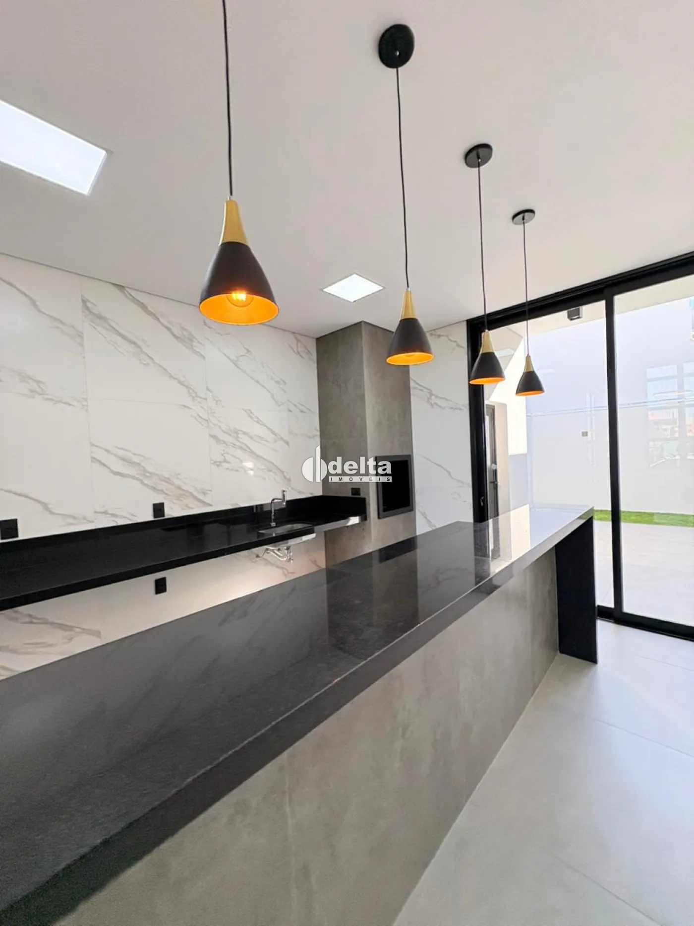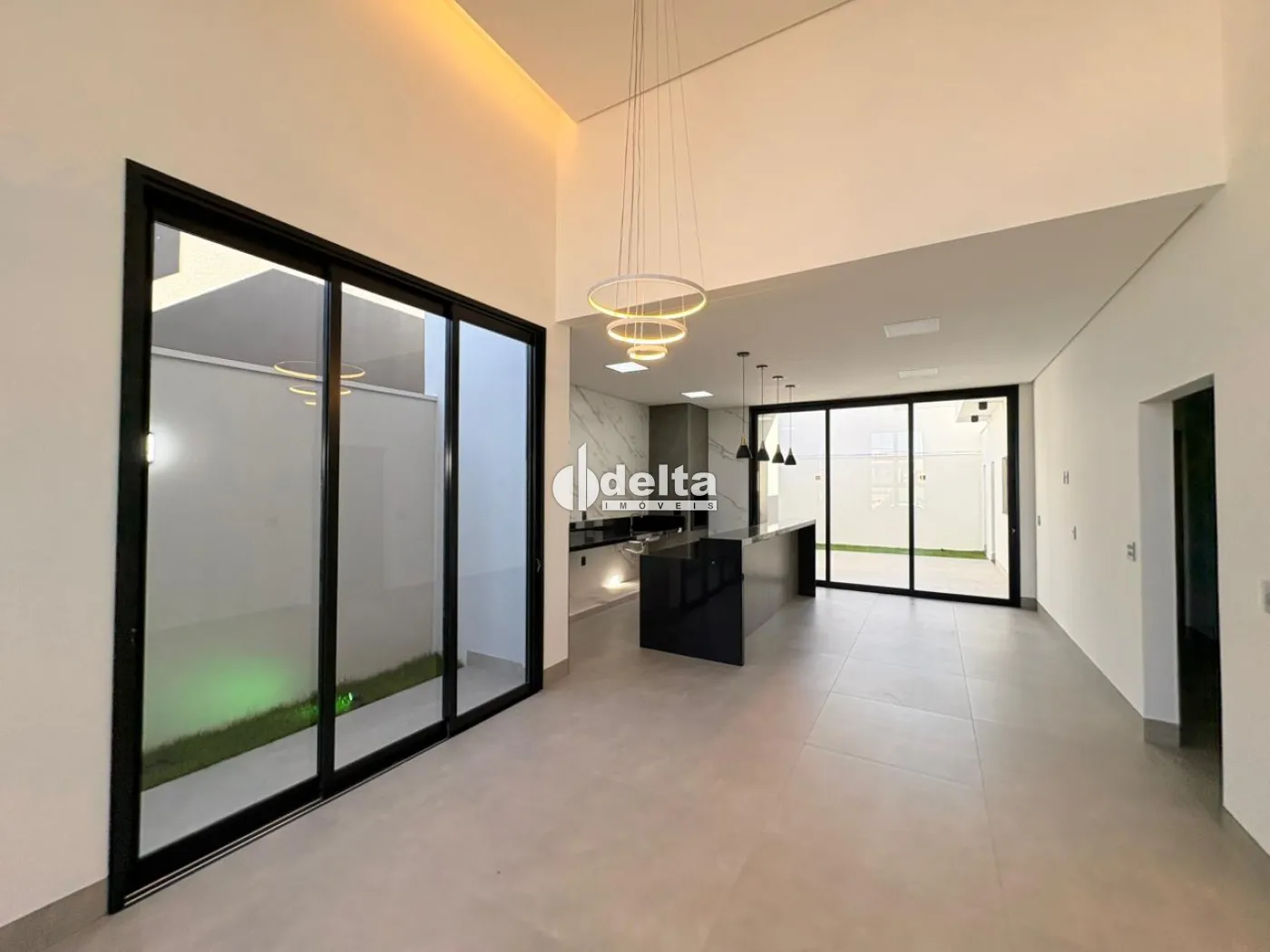 Casa térrea de alto padrão com 151,06 m² de área construída em terreno de 252,52 m², composta por sala em 2 ambientes com pé-direito de 4,50 metros, 3 suítes sendo 1 máster com closet, lavabo externo, cozinha integrada à área gourmet e lavanderia.