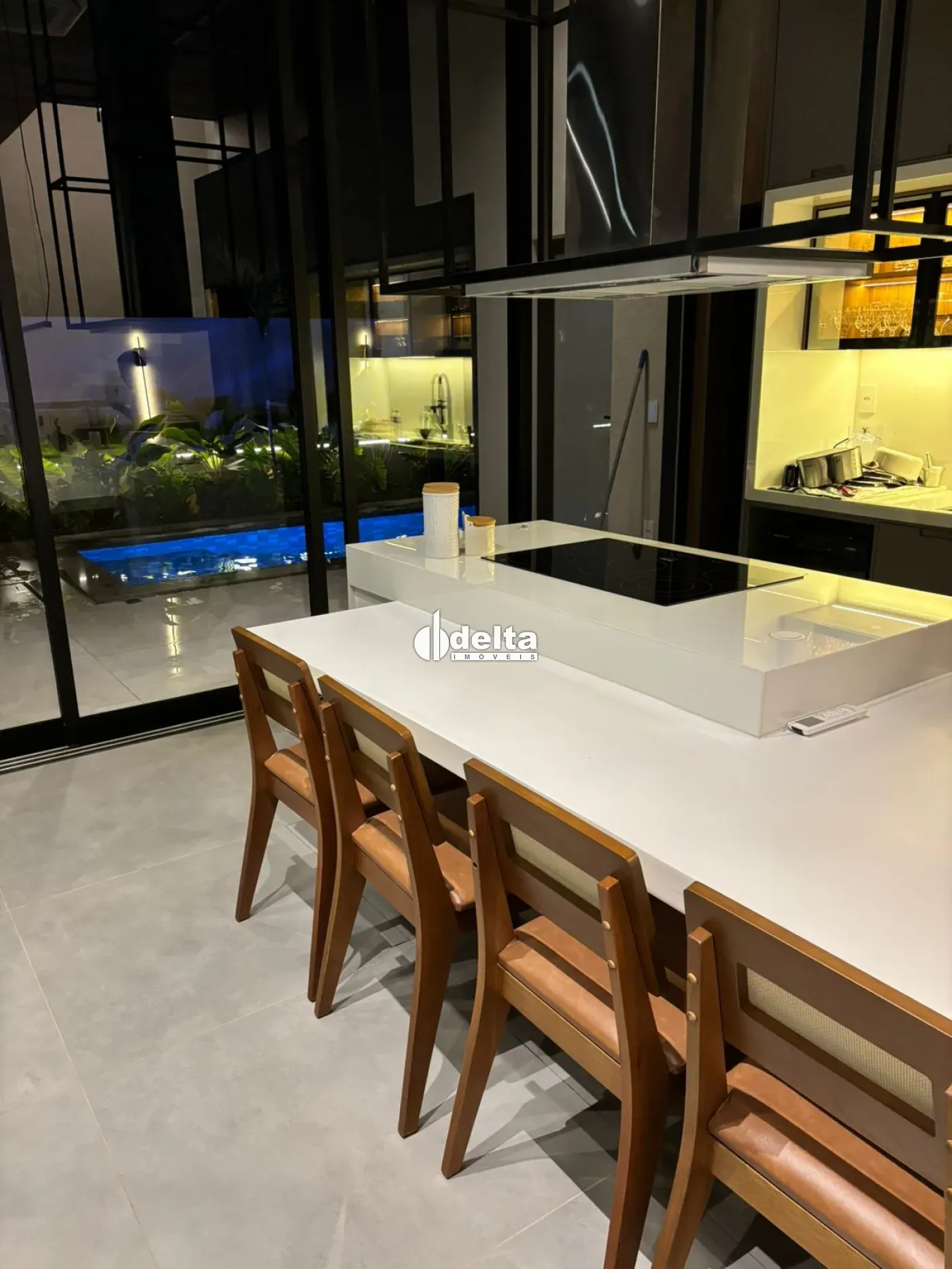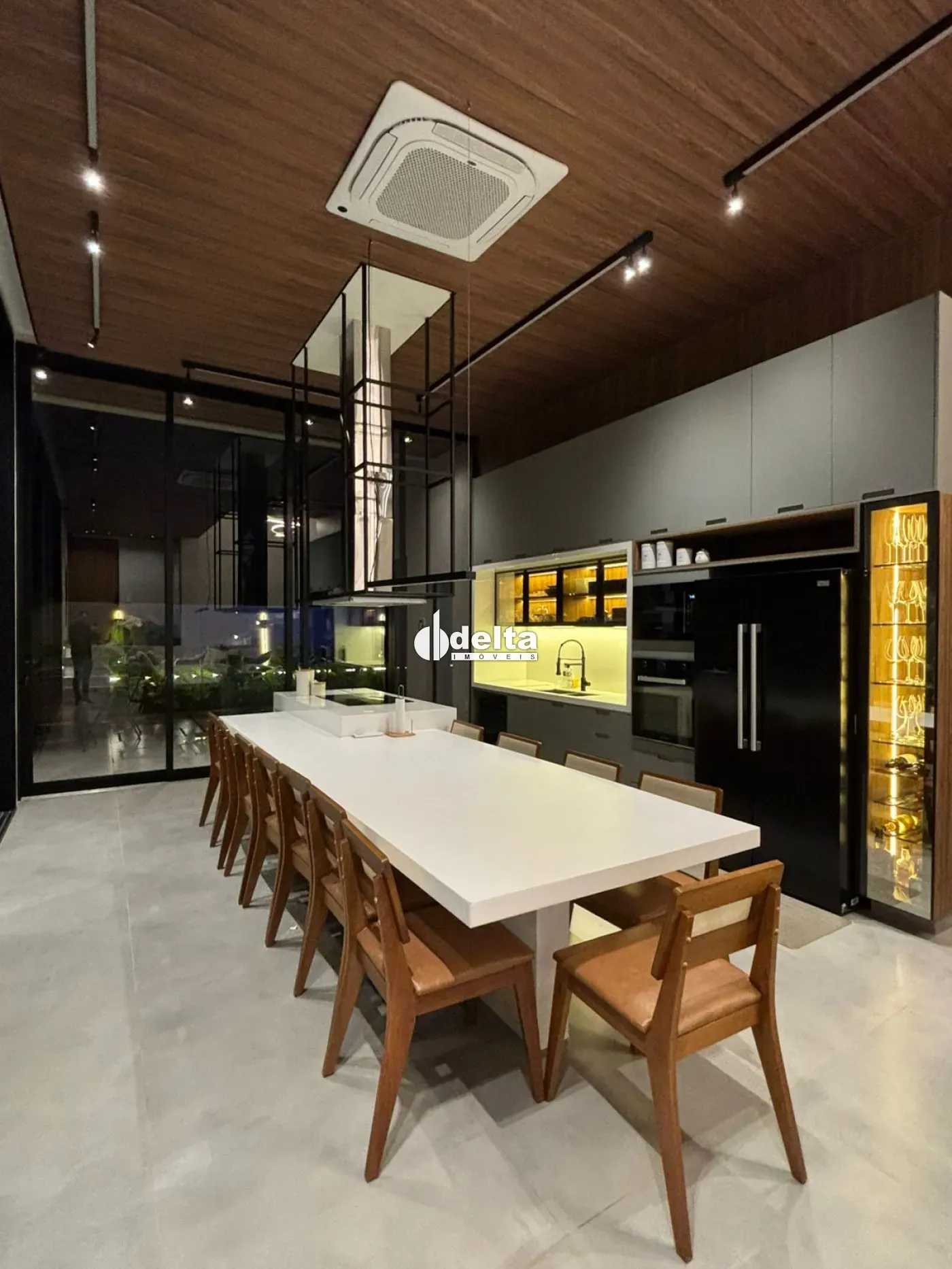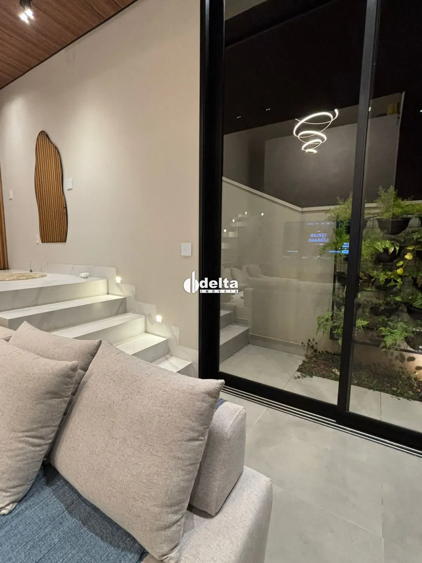 Venda porteira fechada! Sobrado alto padrão com aproximadamente 190m² no Condomínio Terras Alpha em Uberlândia/MG, com 3 suítes (sendo 1 master com banheira de imersão, chuveiro duplo, closet espelhado e teto estrelado com fibra ótica), sala ampla com pé-direito duplo integrada à cozinha com ilha e mesa para 12 lugares, lavabo com cuba esculpida em ônix iluminado, escritório duplo, ar-condicionado em todos os ambientes, automação completa, iluminação planejada, energia fotovoltaica e aquecimento solar. Área de lazer com piscina aquecida com hidromassagem, LED, cascata e sauna, além de espaço gourmet com paisagismo e irrigação automatizada. Condomínio com lazer completo, segurança 24h e excelente localização.