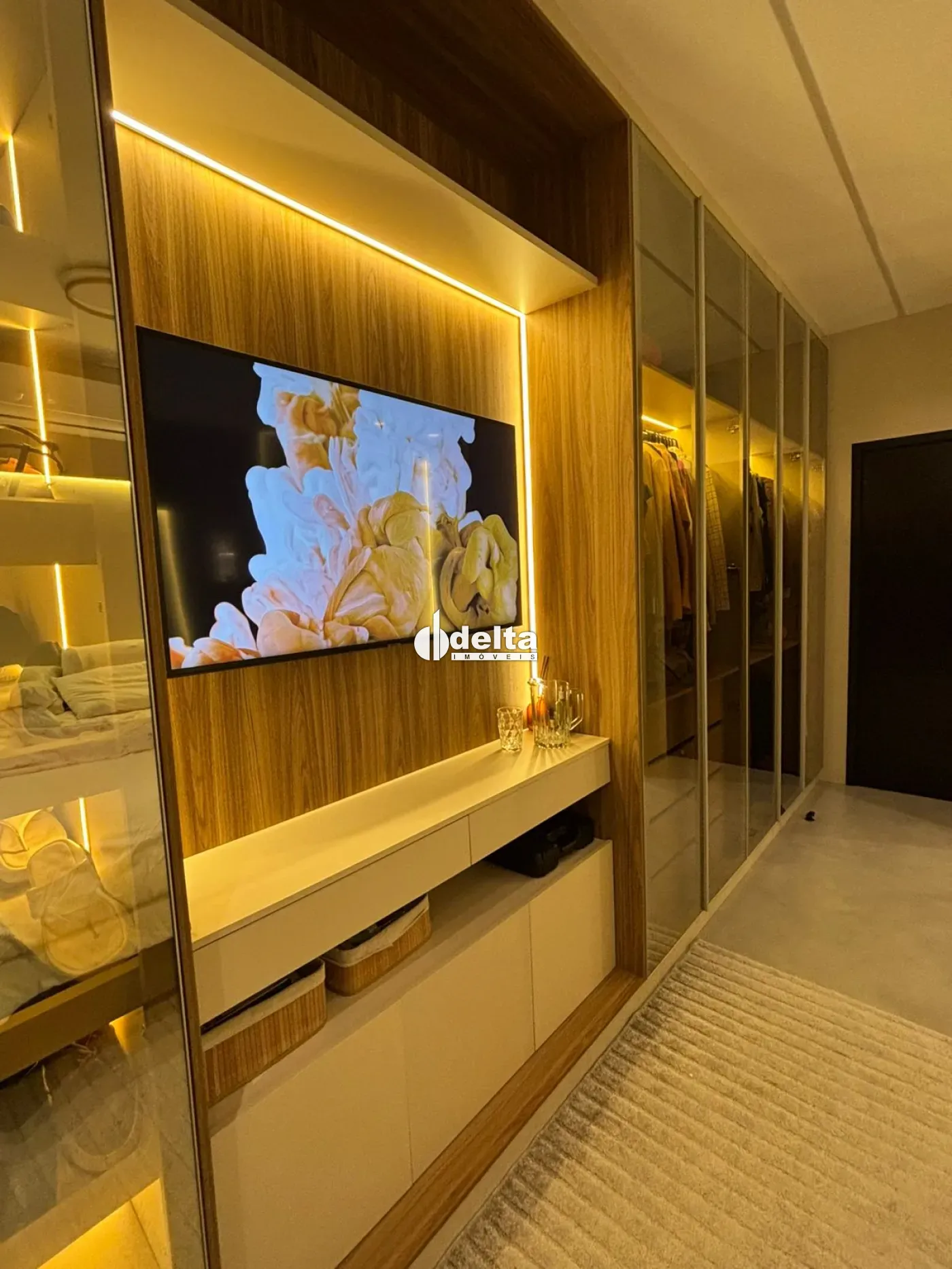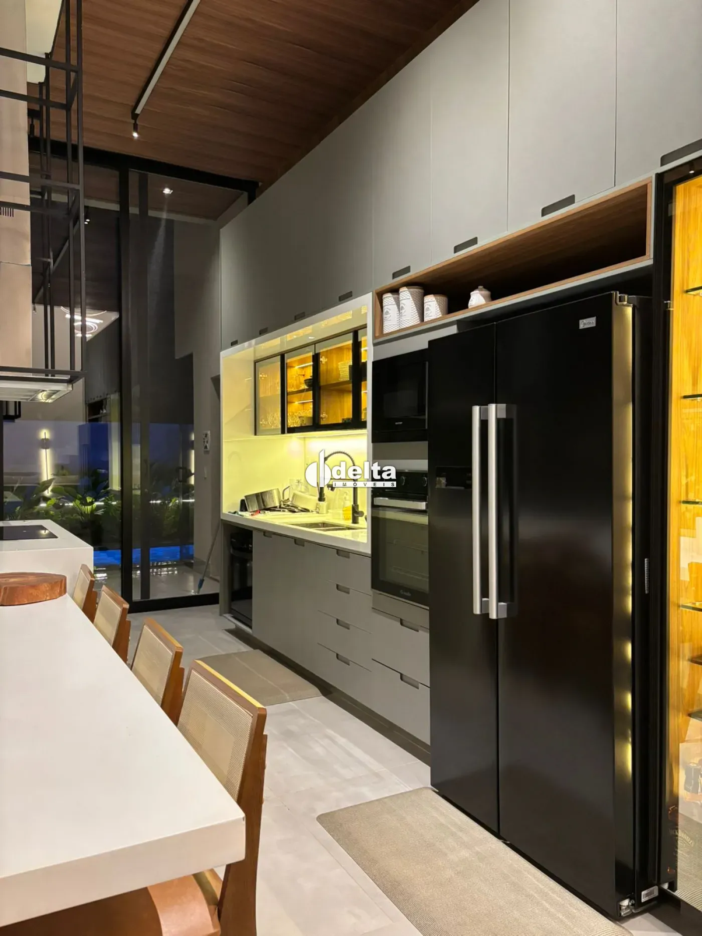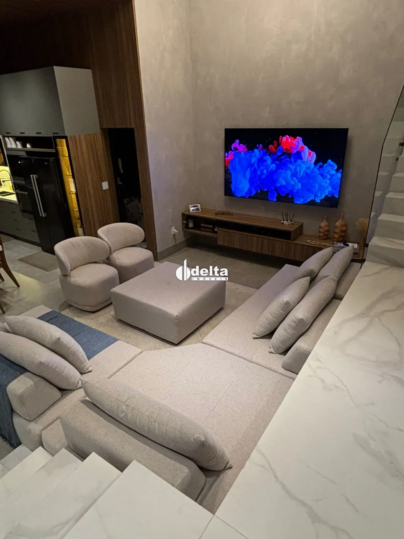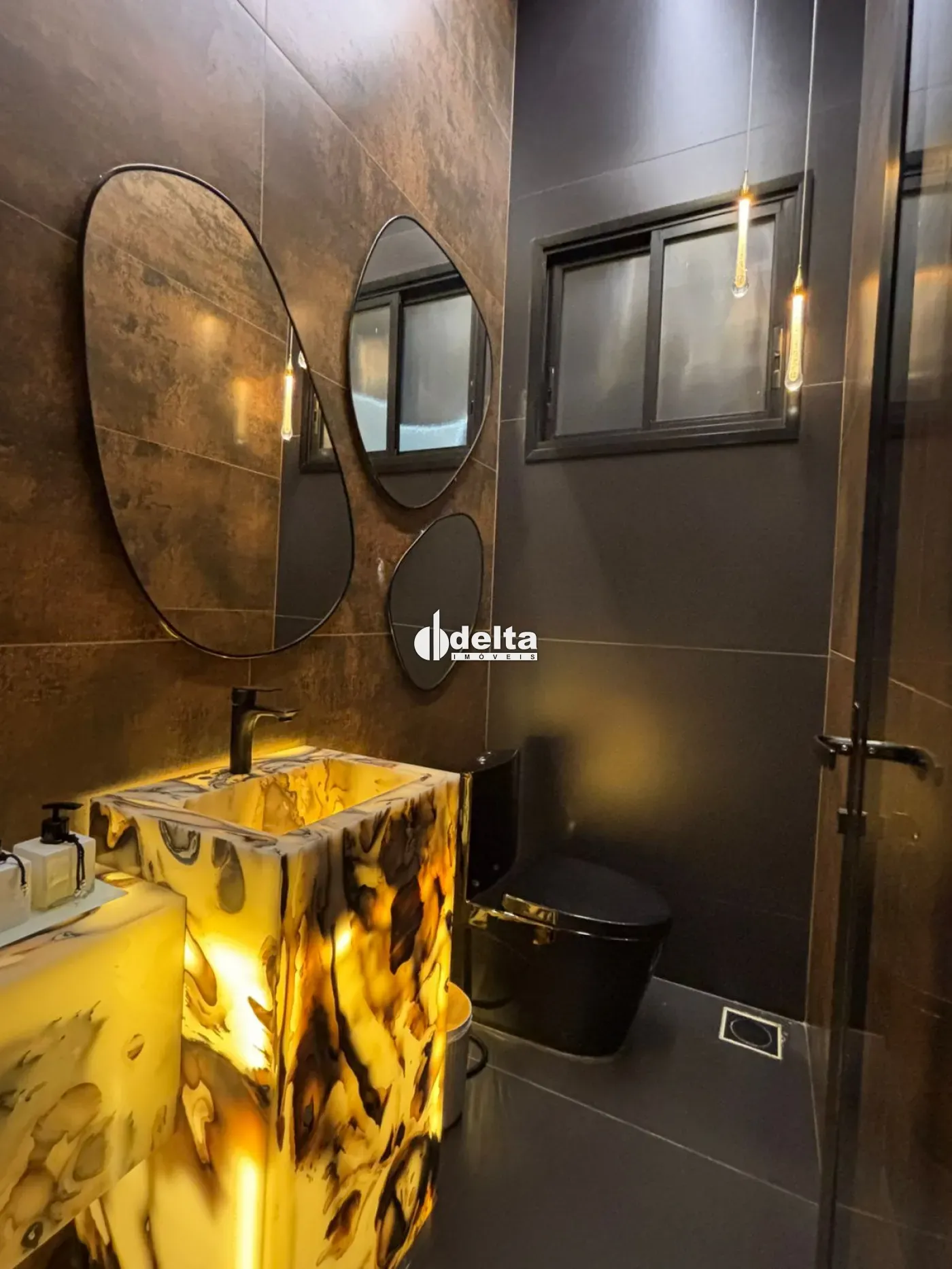 Venda porteira fechada! Sobrado alto padrão com aproximadamente 190m² no Condomínio Terras Alpha em Uberlândia/MG, com 3 suítes (sendo 1 master com banheira de imersão, chuveiro duplo, closet espelhado e teto estrelado com fibra ótica), sala ampla com pé-direito duplo integrada à cozinha com ilha e mesa para 12 lugares, lavabo com cuba esculpida em ônix iluminado, escritório duplo, ar-condicionado em todos os ambientes, automação completa, iluminação planejada, energia fotovoltaica e aquecimento solar. Área de lazer com piscina aquecida com hidromassagem, LED, cascata e sauna, além de espaço gourmet com paisagismo e irrigação automatizada. Condomínio com lazer completo, segurança 24h e excelente localização.
