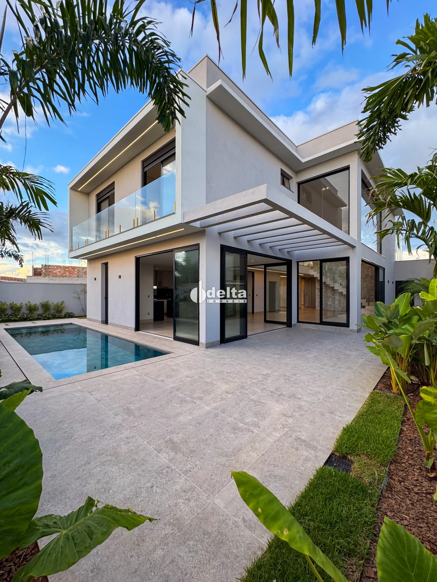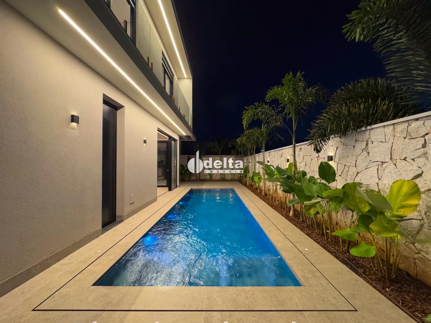 Excelente casa em condomínio com 466,69m² de terreno e 378,92m² de área construída. No pavimento térreo conta com sala multiuso, banheiro social, sala de TV, ampla sala de estar e jantar integradas com pé-direito duplo, lavabo, cozinha, área gourmet, área de serviço com entrada interna e externa e elevador, garantindo acessibilidade e conforto. No pavimento superior possui 1 suíte máster com closet, sacada privativa e banheiro com banheira, além de 3 suítes adicionais, todas com excelente iluminação natural e ventilação, sendo 2 delas com sacadas. Na área externa dispõe de piscina e banheiro de apoio.