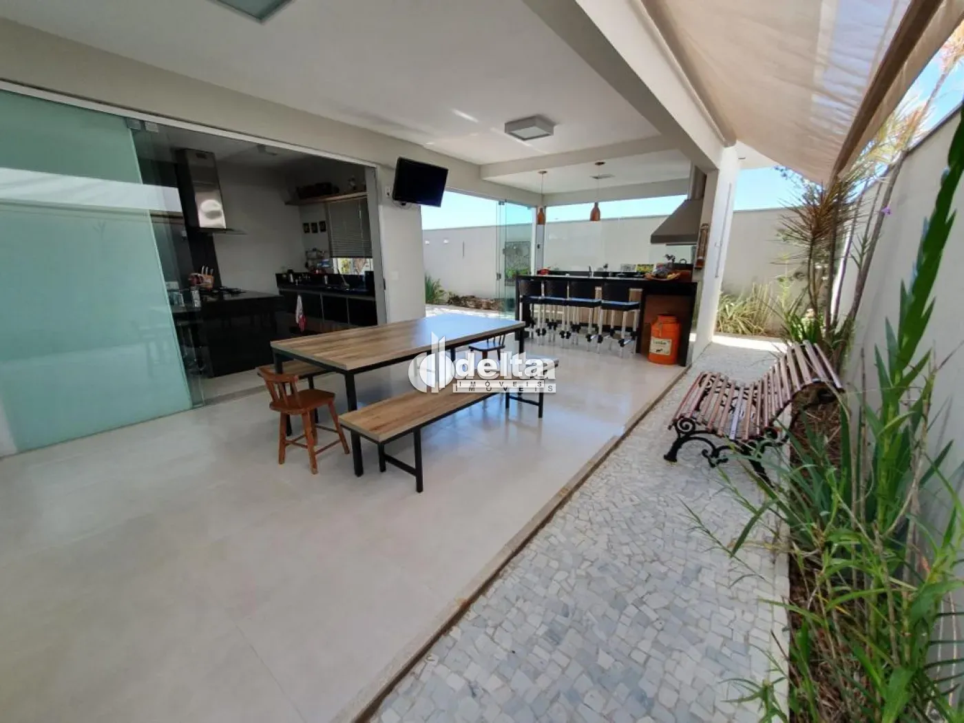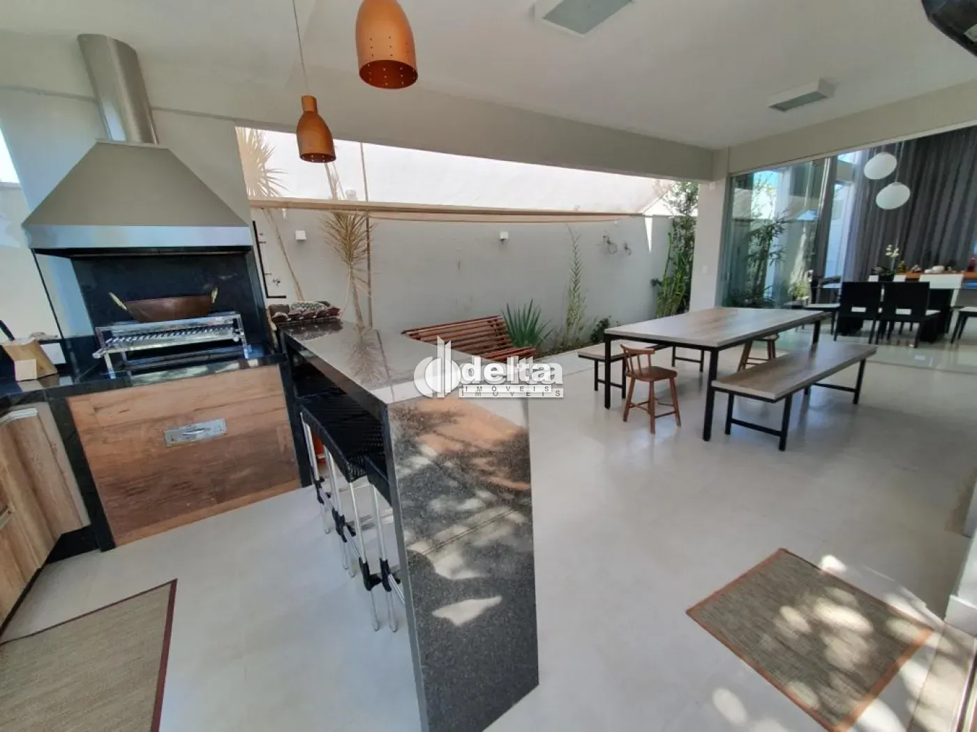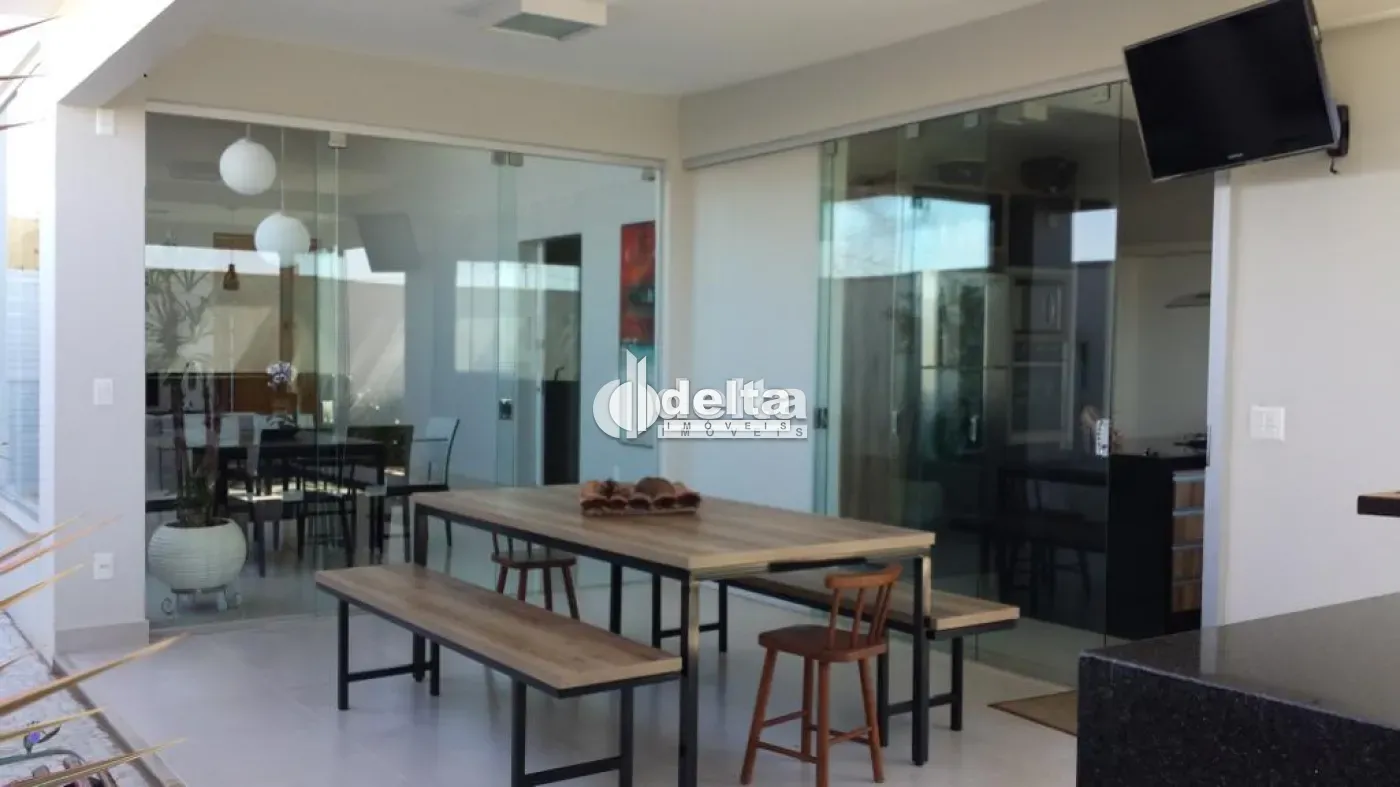 Casa em condomínio na zona Sul de Uberlândia, com aproximadamente 210m², sendo sala, 3 quartos sendo 1 suíte com banheira de hidromassagem, lavabo, banheiro social, cozinha com armários, área gourmet completo.