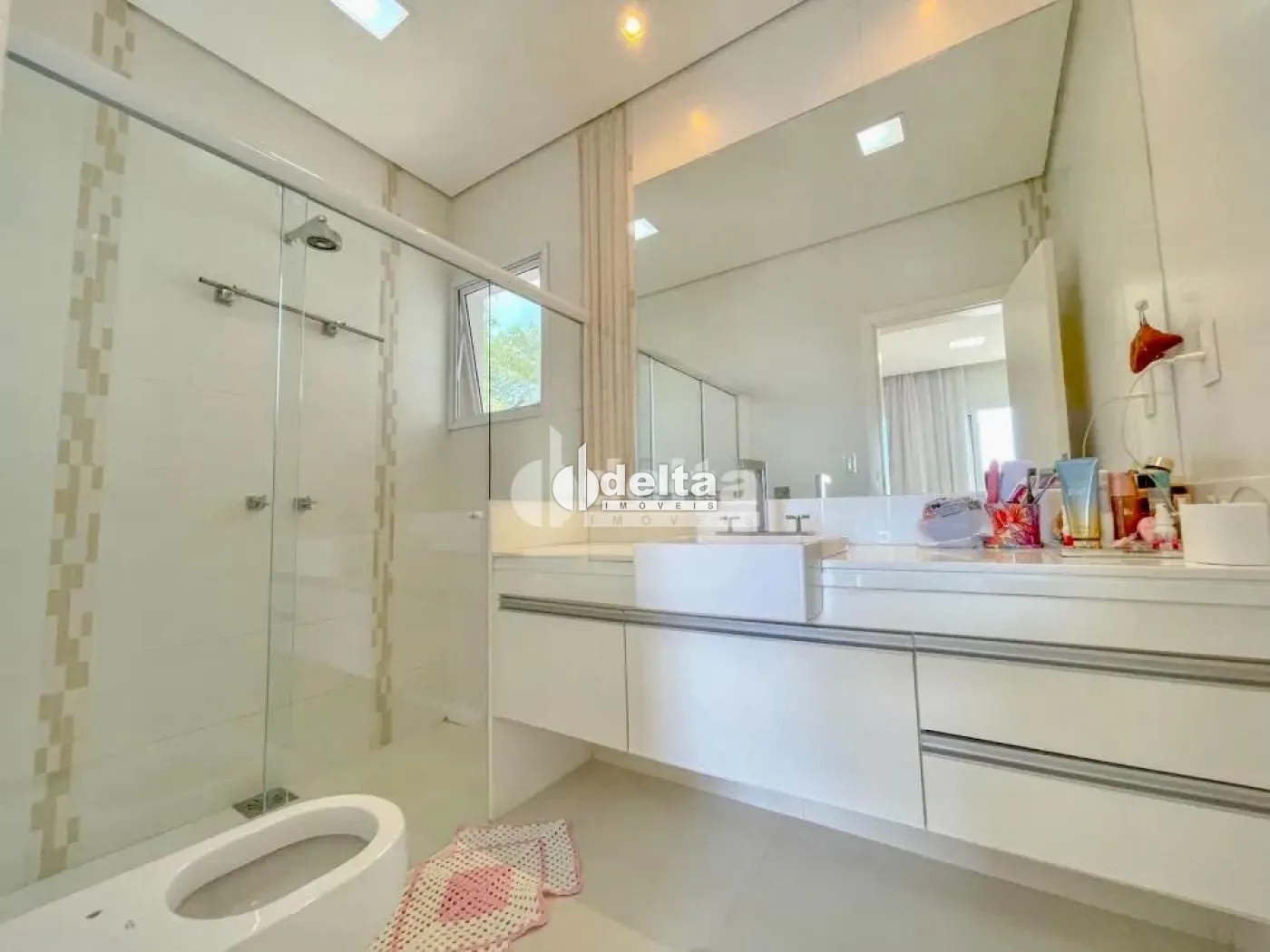 Casa com 450m² de área total e aproximadamente 410m² de área construída sendo, sala ampla em três ambientes, lavabo, sala de jantar, 4 suítes com armários e ares condicionados, sendo 1 máster, escritório, cozinha planejada com armários, área de serviço, varanda gourmet com lavabo, piscina aquecida e 3 vagas de garagem. Condomínio com valor aproximado de R$ 900,00.