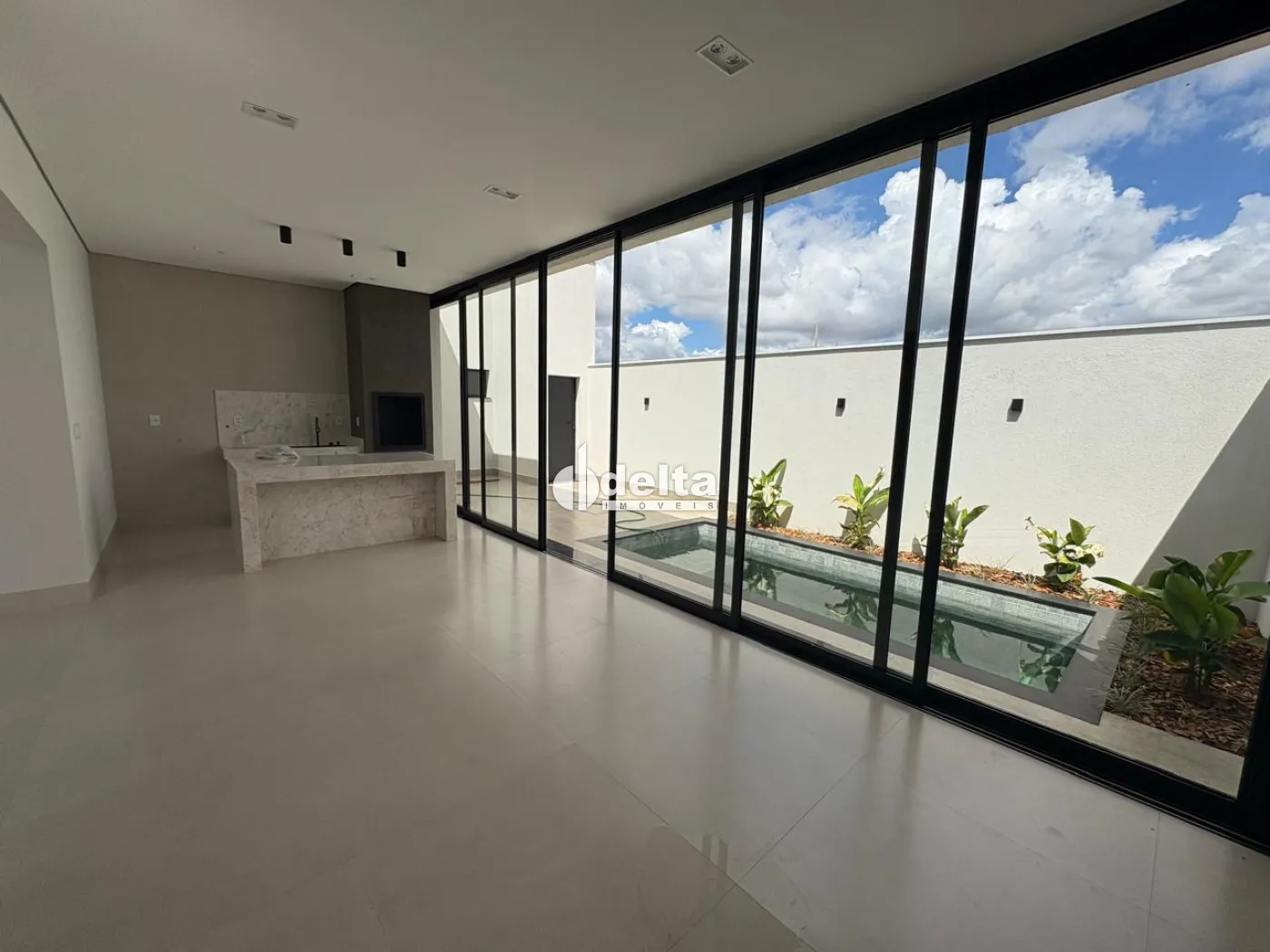 Casa em condomínio com 184,27 m² de área construída em terreno de 308 m², composta por sala ampla com pé-direito de 6 metros, 4 suítes sendo 1 reversível para escritório, suíte máster com cubas e chuveiros duplos, 5 banheiros, cozinha com ilha em mármore, despensa e área de serviço.