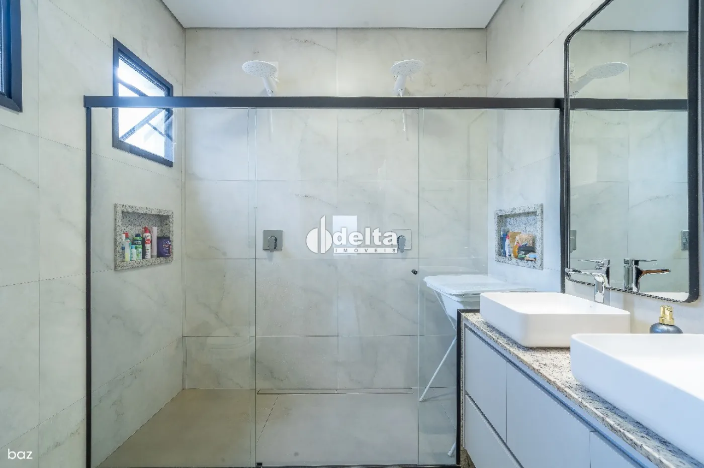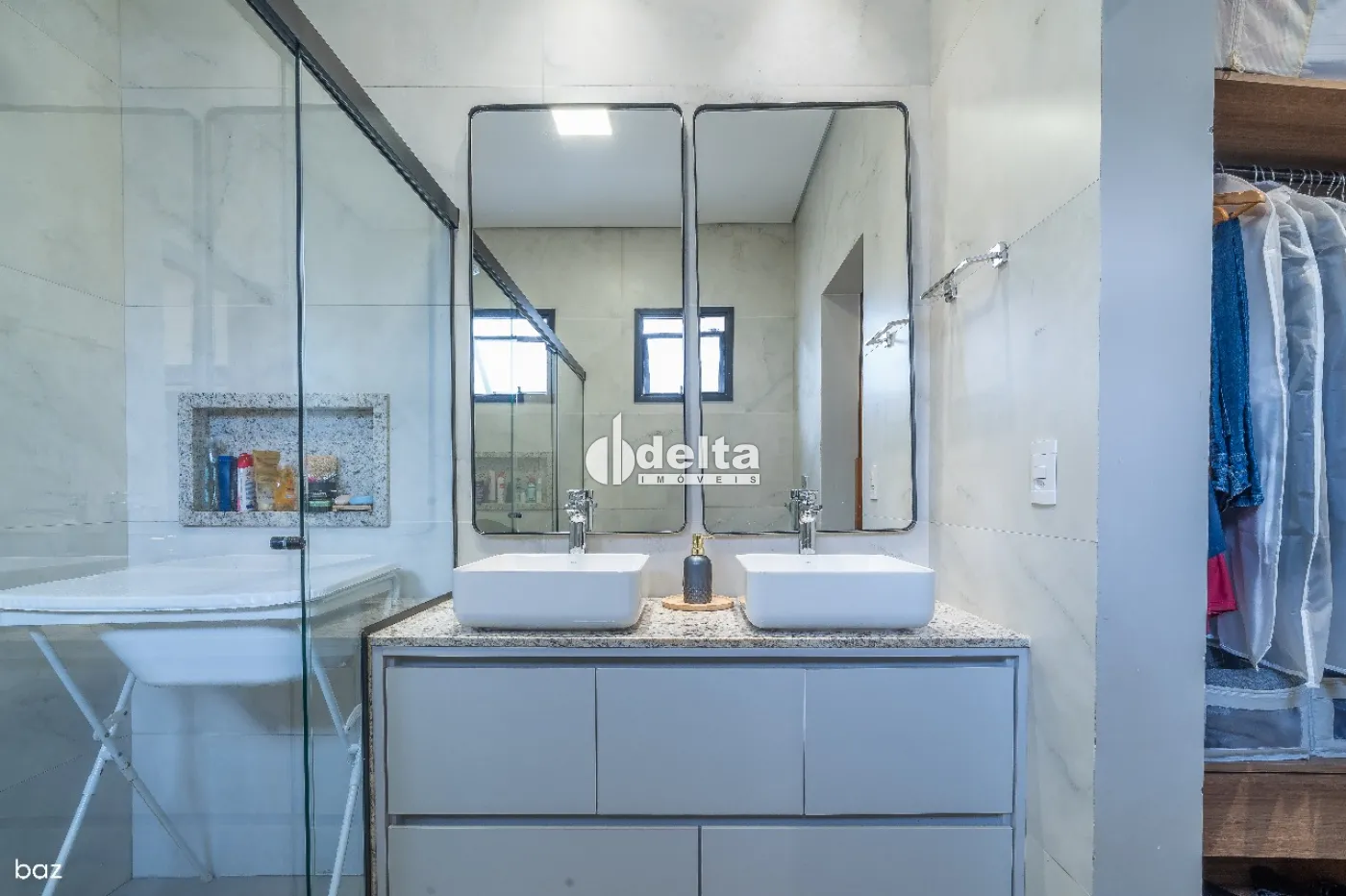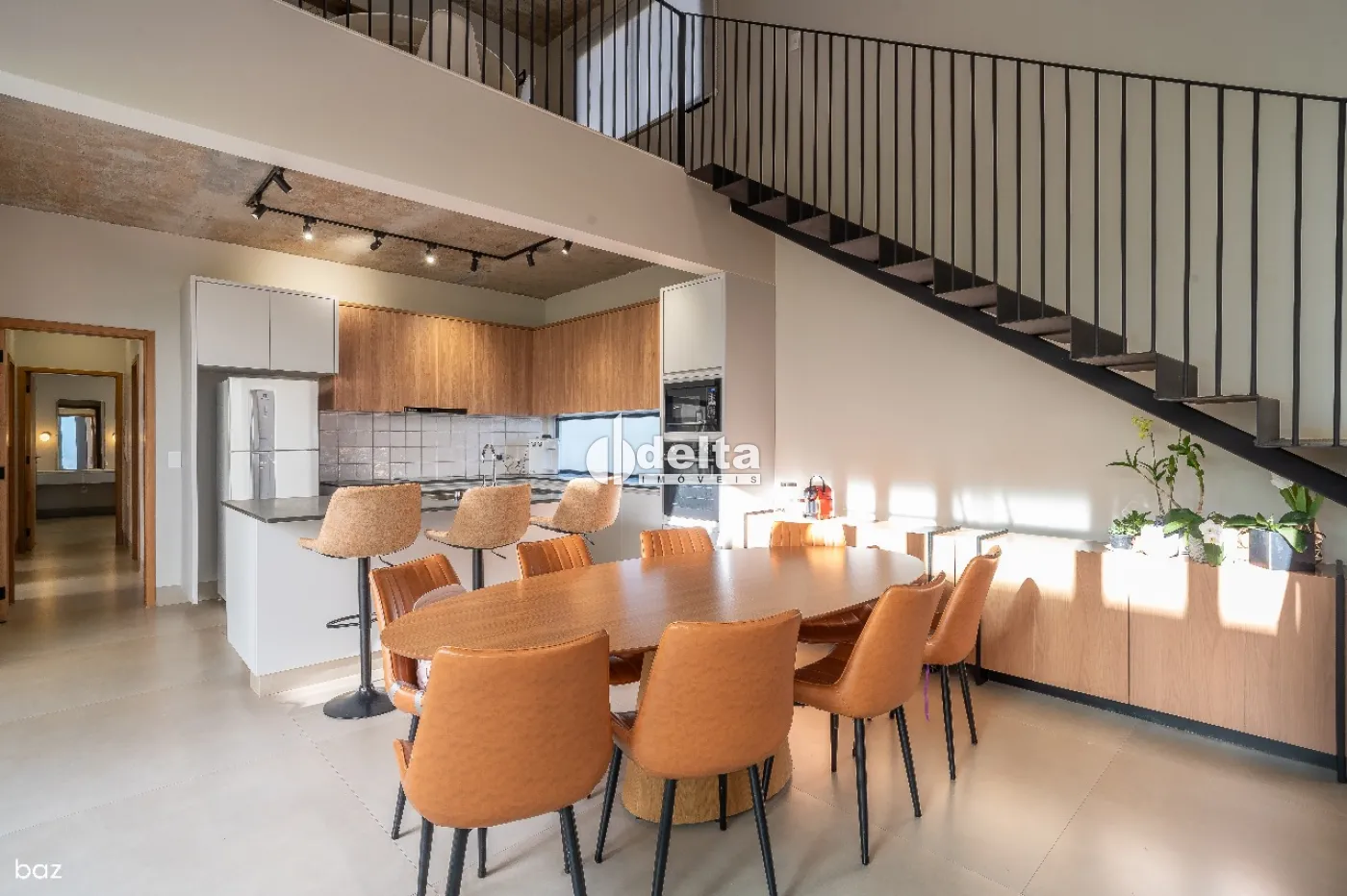 O imóvel dispõe de sala ampla integrada, quartos espaçosos, sendo 3 no total com 1 suíte master com closet, banheiros modernos, cozinha americana com planejados de alto padrão, além de área de serviço e 2 vagas de garagem cobertas. Conta ainda com mezanino versátil, pé-direito duplo de 5,80 m, proporcionando imponência e iluminação natural, além de área gourmet completa com churrasqueira a carvão. Possui aproximadamente 218 m² de área construída em um terreno de 336 m², com arquitetura moderna, teto em concreto aparente e excelente distribuição dos ambientes. O condomínio oferece segurança e tranquilidade, agregando ainda mais valor ao imóvel.