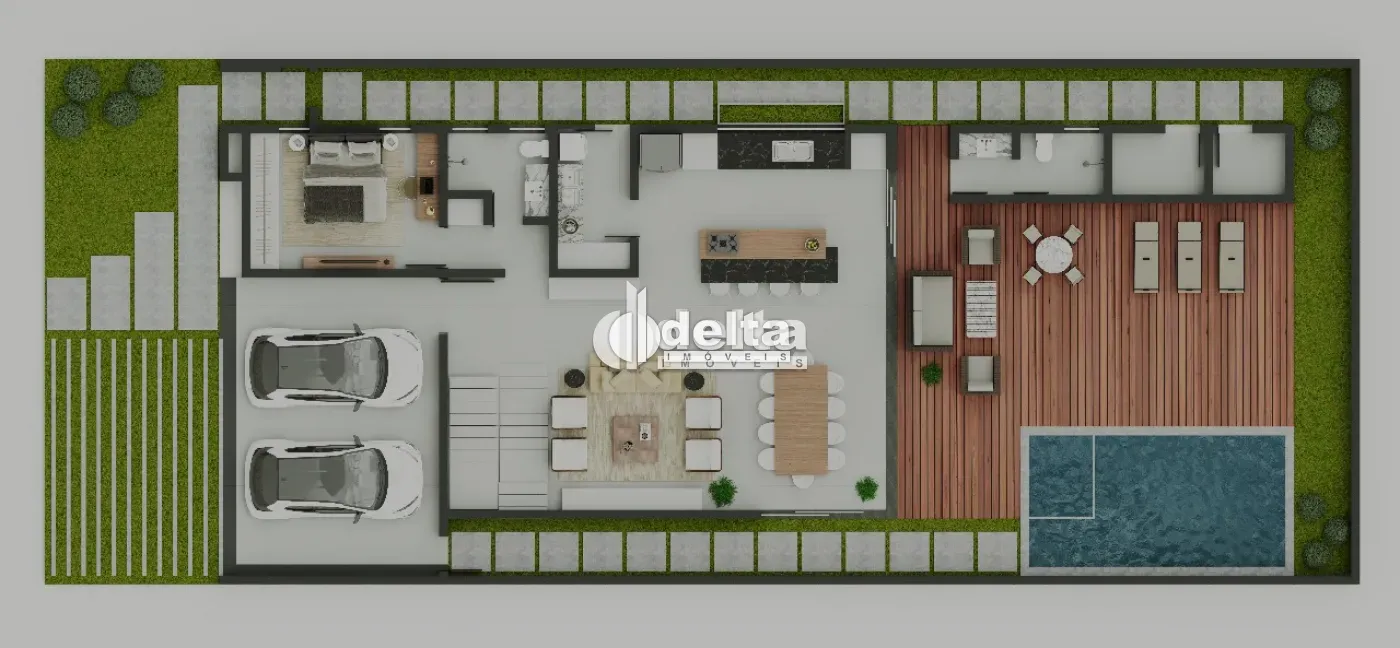 Sobrado de alto padrão em condomínio exclusivo, com 268m² de construção em frente à APP. Conta com 4 quartos (3 suítes), design contemporâneo, acabamentos sofisticados, cozinha com ilha, lavanderia, varanda gourmet, piscina elegante e deck com vista. Projeto moderno que alia conforto, requinte e integração com a natureza.