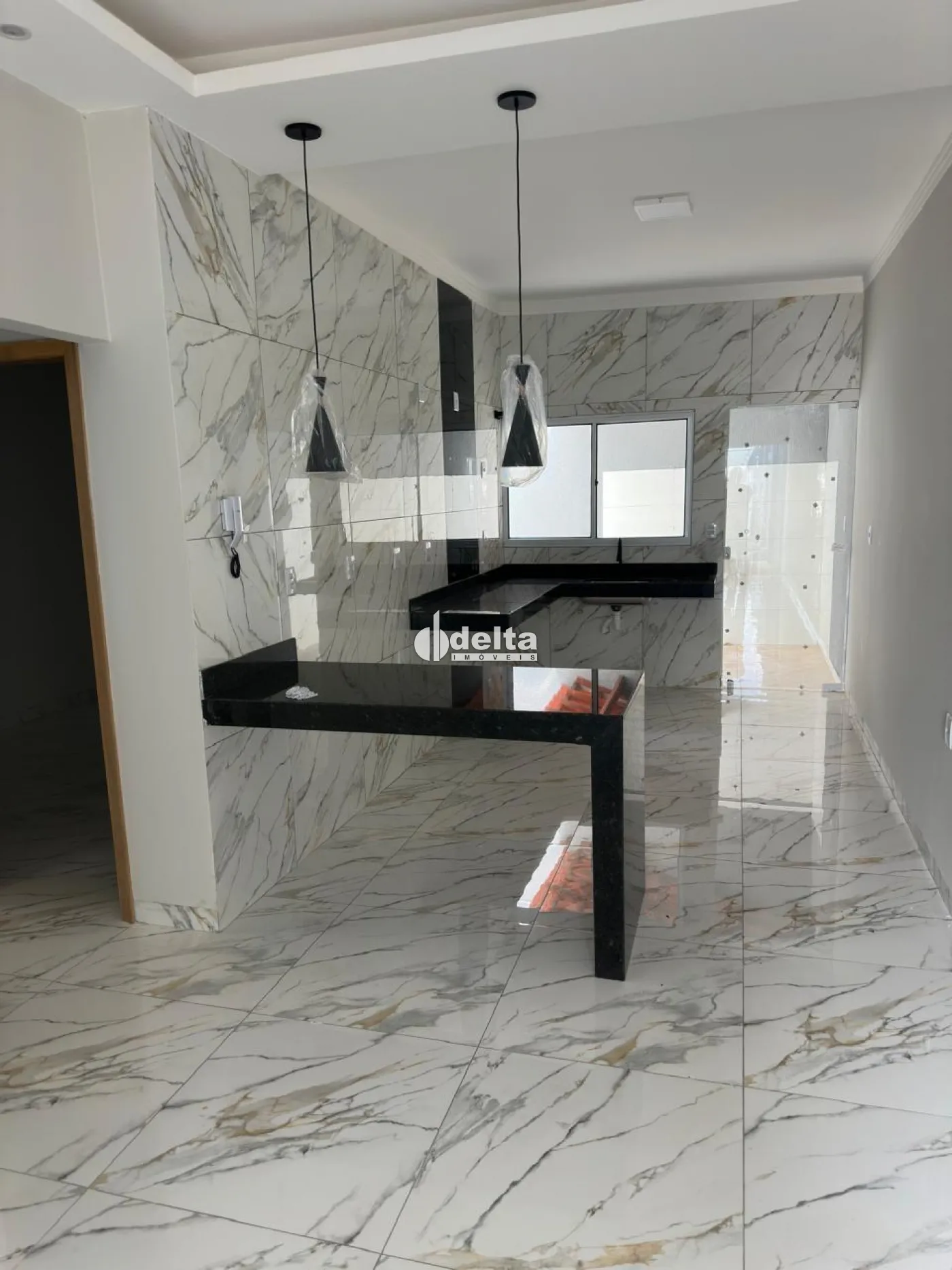 Excelente casa nova com 65m² de área construída, localizada próxima a escolas, supermercados e posto de saúde. Possui sala ampla com sanca aberta em gesso e iluminação em LED, 2 quartos sendo 1 suíte, banheiro social, cozinha estilo americana integrada à sala, com bancada moderna, e área de serviço coberta.