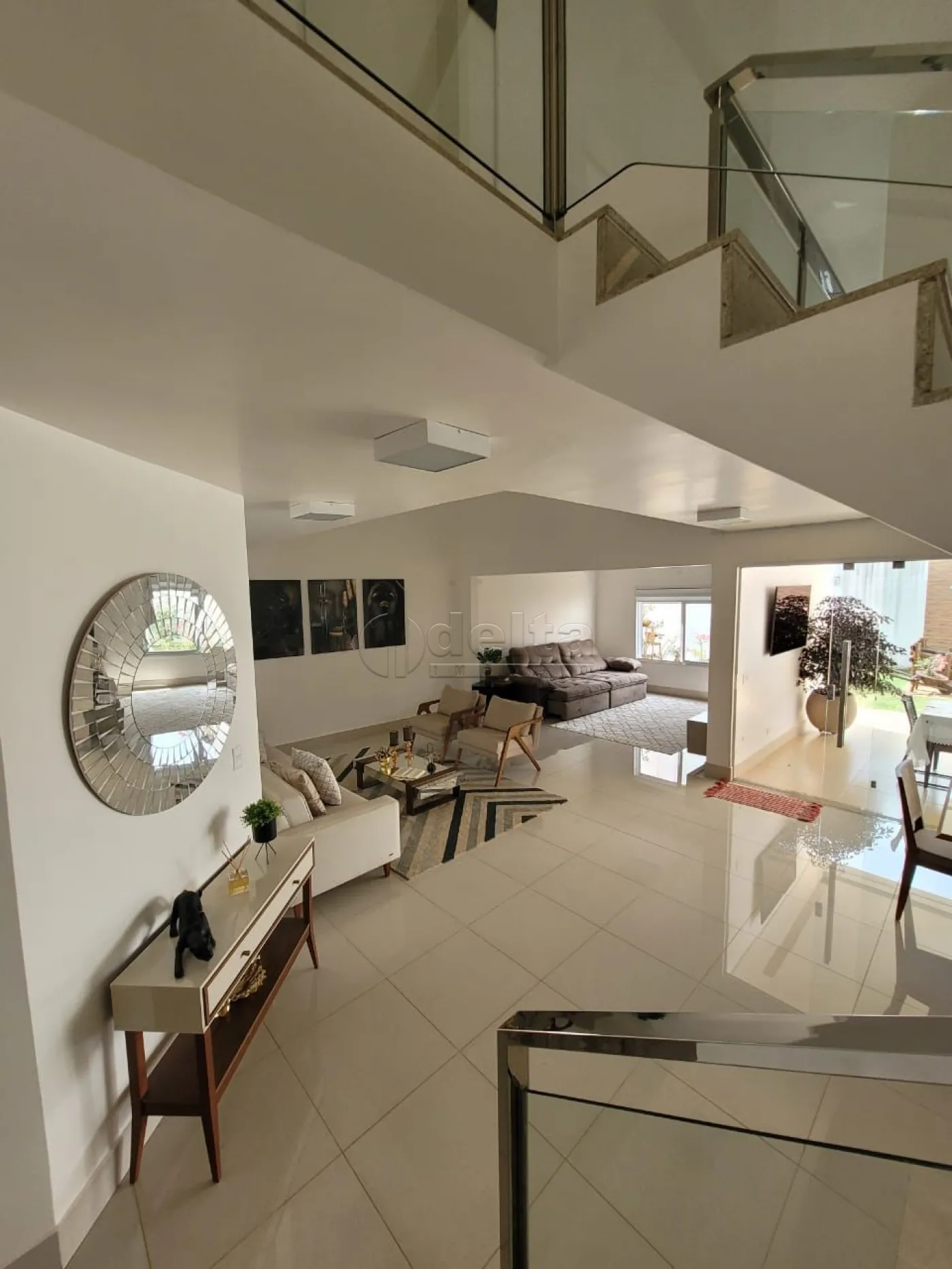 Casa mobiliada área construída aproximadamente 310m² e área total 333m², em 02 pavimentos de alto padrão sendo piso térreo sala em 02 ambientes, sala de jantar, escritório, lavabo, cozinha com bancadas em granito, despensa, área de serviço com bancada em granito, banheiro de serviço, varanda com churrasqueira, jardim, ofurô para 08 pessoas, garagem para 04 carros, piso porcelanato e sanca em gesso. Piso superior hall com roupeiro, 04 quartos com armários sendo 03 suítes 01 com closet, hidro e sacada, banho social.