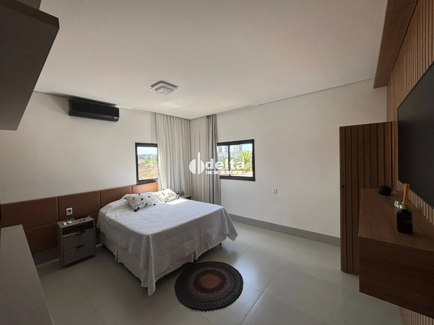 Sobrado mobiliado com aproximadamente 550 m² de área construída e acabamento de alto padrão. No 1º pavimento possui 2 salas, banheiro social, copa, 2 quartos com armários sendo 1 suíte, cozinha completa com armários, lavanderia e ampla área de lazer com piscina, ofurô, sauna e espaço gourmet. No 2º pavimento conta com sala ampla em dois ambientes com sacada, 3 suítes sendo 1 suíte master com closet e academia montada. Imóvel com sistema de energia solar que gera aproximadamente 2.000 kW, 4 vagas de garagem sendo 2 cobertas, além de câmeras de segurança, alarme, cerca elétrica e sensores nas portas.
