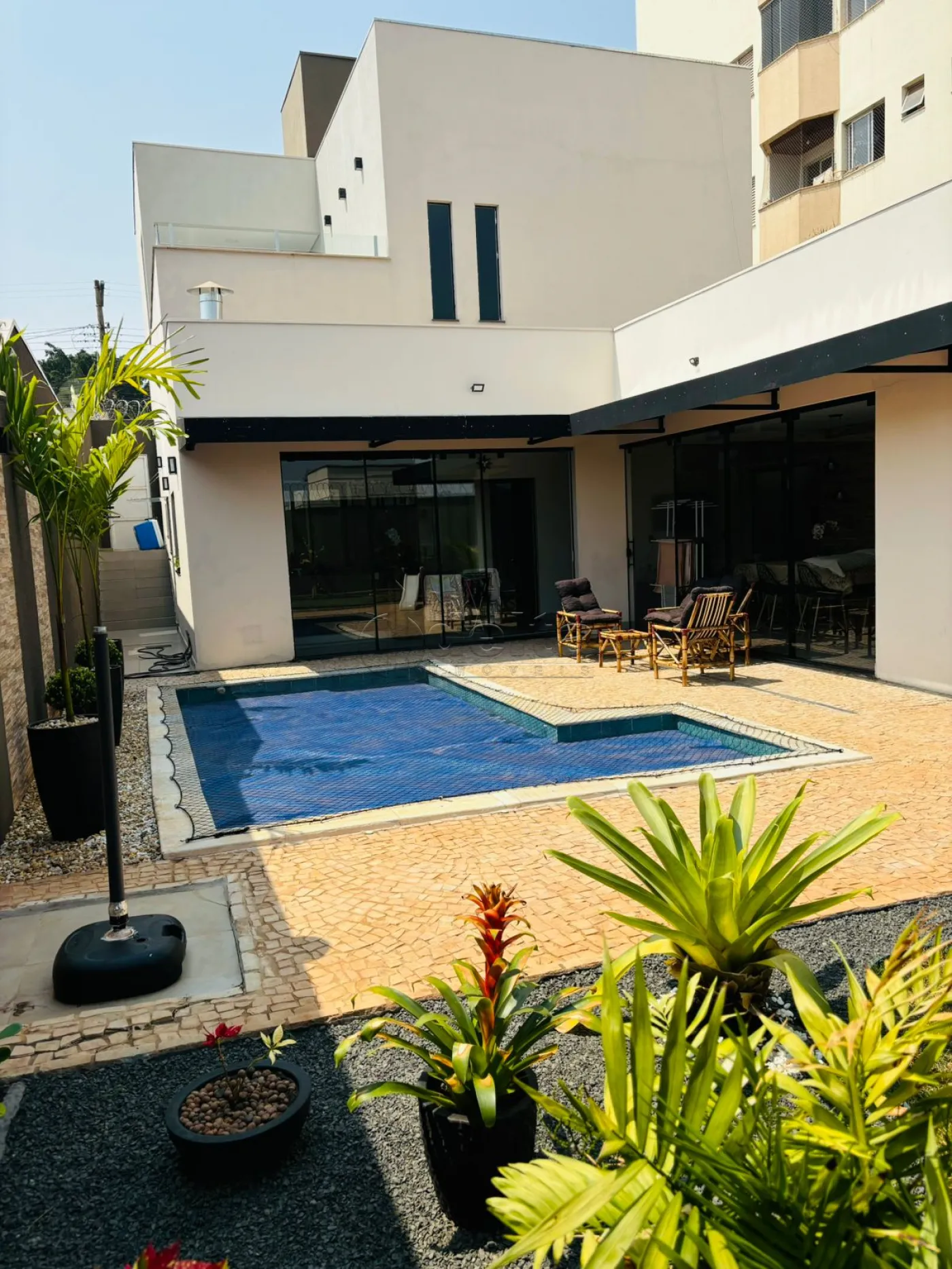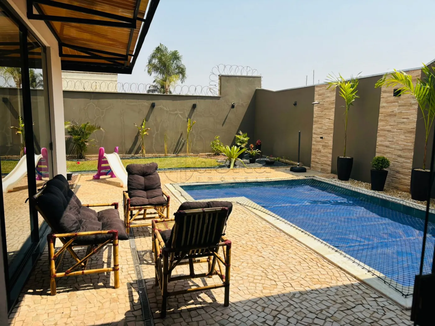 Casa de alto padrão com 230m² de área construída e 360m² de terreno. Contém 3 quartos (1 suíte), 3 banheiros, sala com pé direito triplo, varanda gourmet, cozinha planejada, escritório, piscina aquecida, jardim, sistema de segurança e placas fotovoltaicas.