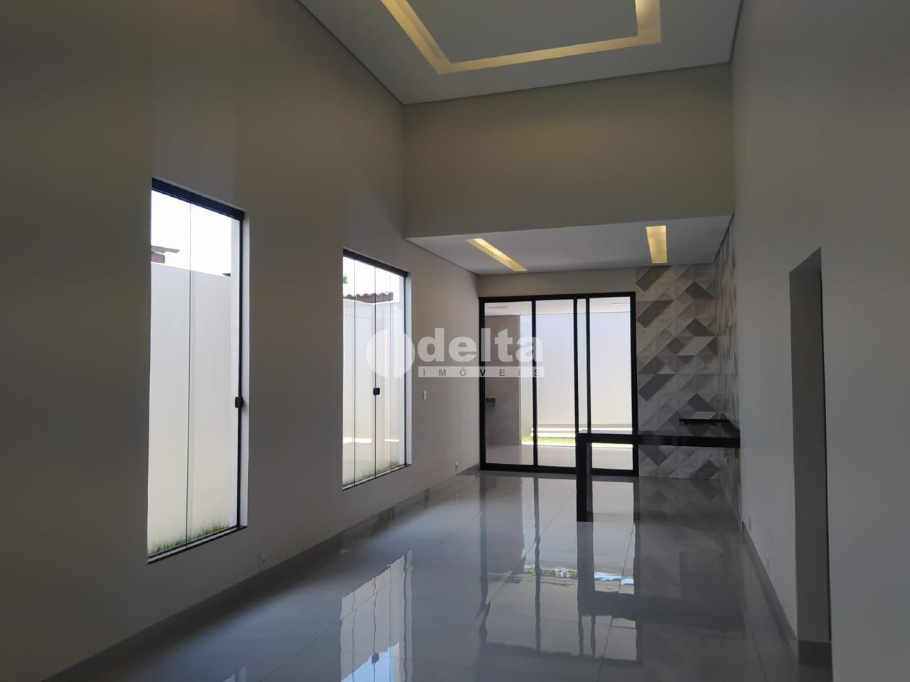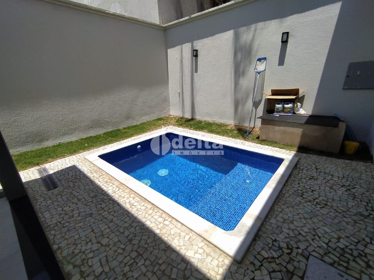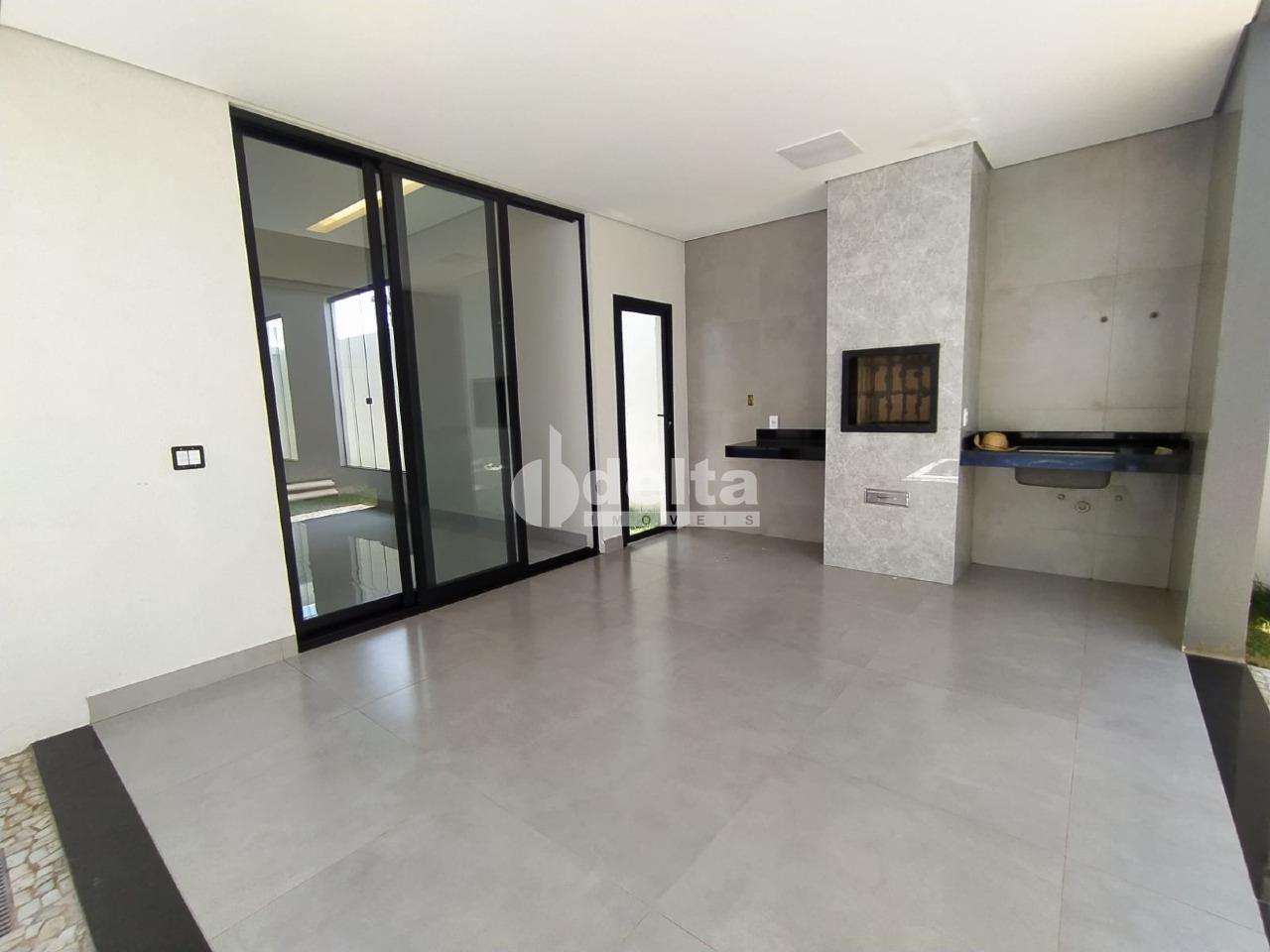 Casa com aproximadamente 150 m² de área construída, sendo 3 quartos sendo 1 suíte máster com closet, piscina aquecida, varanda gourmet com banheiro e churrasqueira revestida em porcelanato, dispensa e lavanderia, kit aquecedor tubo a vácuo, mais moderno da categoria, água quente nas torneiras dos banheiros e cozinha além dos chuveiros, energia fotovoltaica com capacidade para 300 watts, rebaixamento de teto em gesso em toda a casa, bancada e ilha em granito São Gabriel e Branco Itaúna, sala em pé direito duplo ( 5 metros de altura), garagem para 2 carros cobertos e 2 descobertos região sul, a mais valorizada de Uberlândia.