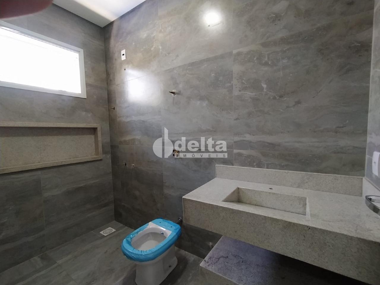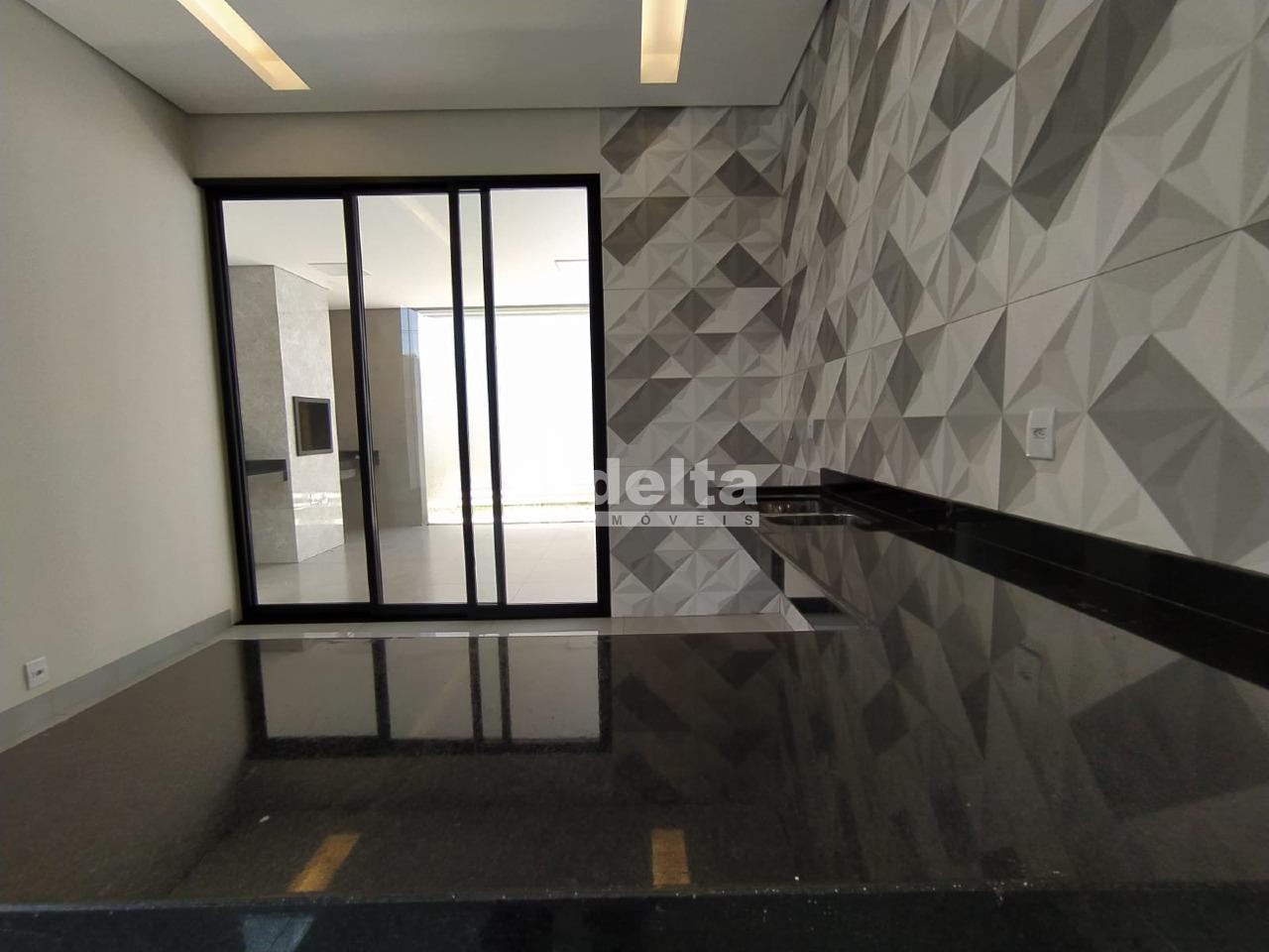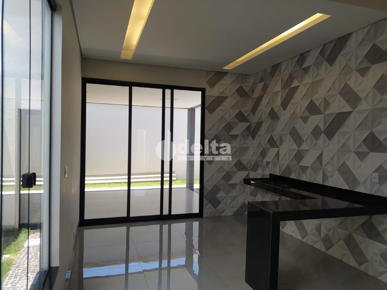 Casa com aproximadamente 150 m² de área construída, sendo 3 quartos sendo 1 suíte máster com closet, piscina aquecida, varanda gourmet com banheiro e churrasqueira revestida em porcelanato, dispensa e lavanderia, kit aquecedor tubo a vácuo, mais moderno da categoria, água quente nas torneiras dos banheiros e cozinha além dos chuveiros, energia fotovoltaica com capacidade para 300 watts, rebaixamento de teto em gesso em toda a casa, bancada e ilha em granito São Gabriel e Branco Itaúna, sala em pé direito duplo ( 5 metros de altura), garagem para 2 carros cobertos e 2 descobertos região sul, a mais valorizada de Uberlândia.