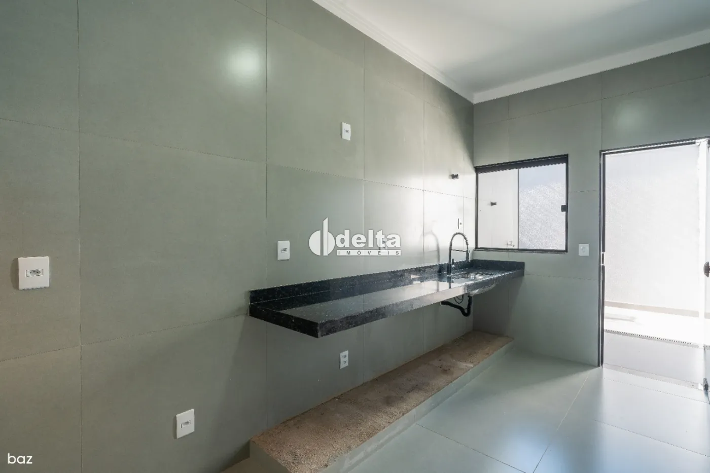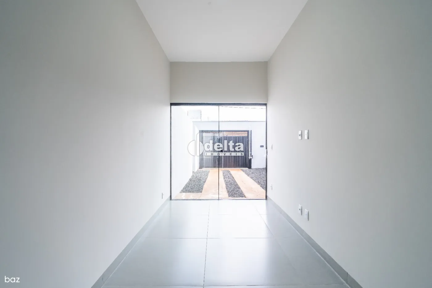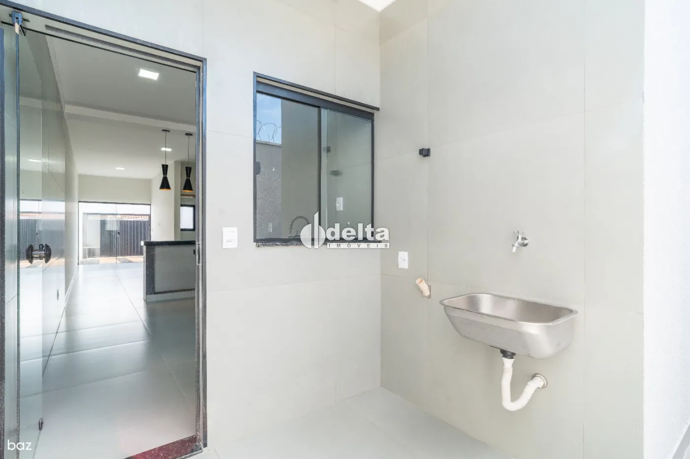Sala em dois ambientes amplos com jardim de inverno, 2 quartos, sendo 1 suíte, banheiro social, cozinha funcional com pendente decorativo, lavanderia ampla e coberta, piso em porcelanato, iluminação em LED nos nichos dos banheiros e vaga de garagem para 3 carros pequenos. Portão automotivo com abertura por aplicativo no celular ou controle remoto.