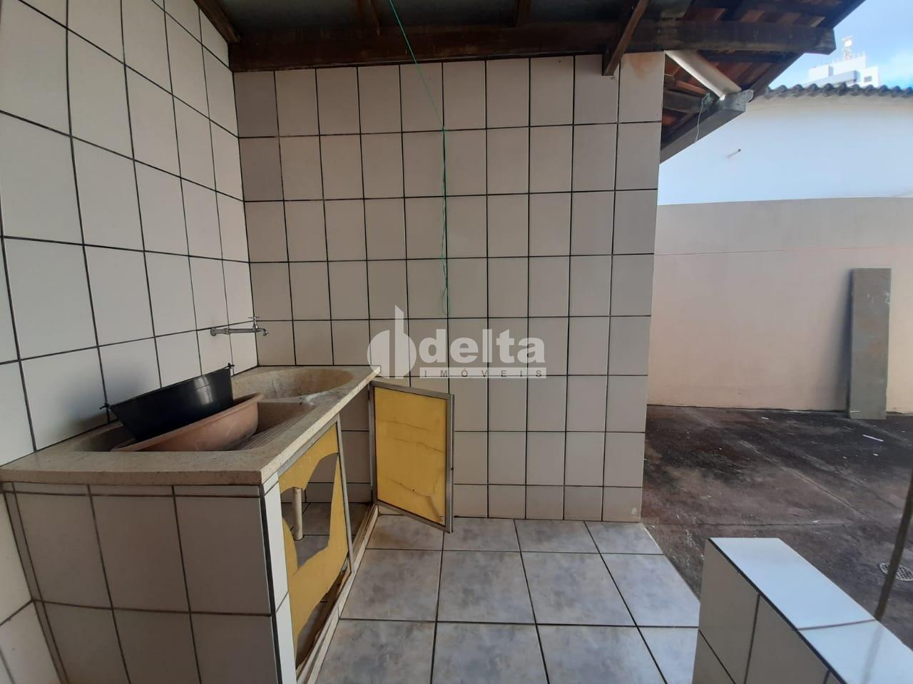 Casa de esquina à venda em Uberlândia-MG, com 200 m² de área construída em terreno de 277 m², sendo 93 m² averbados. O imóvel conta com sala em dois ambientes, 3 quartos (sendo 1 suíte com armários), cozinha ampla com copa, piso em cerâmica, lavanderia, quintal e garagem para 4 carros. Nos fundos, possui 2 quartos e 2 banheiros adicionais, oferecendo ótimo espaço e funcionalidade para famílias ou uso complementar.