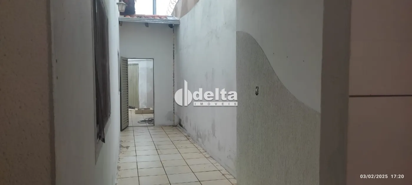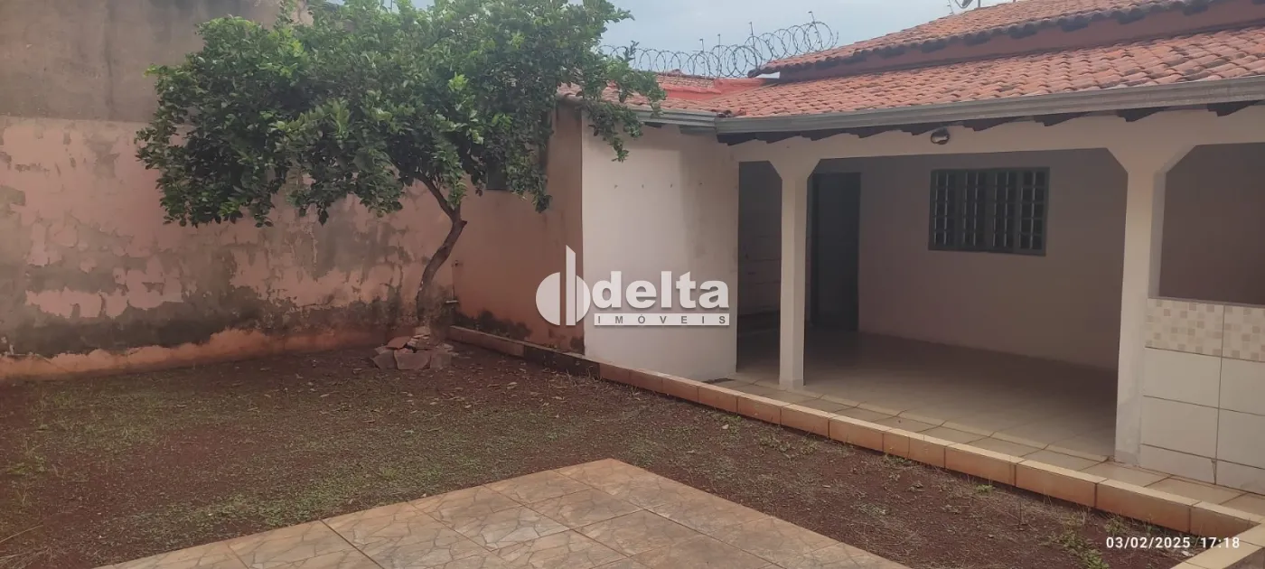 Casa à venda em Uberlândia-MG, com 250 m² de terreno e aproximadamente 160 m² de área construída. O imóvel conta com sala, copa, cozinha, 2 quartos (sendo 1 suíte), banheiro social, despensa com 9 m², varanda interna ampla com 40 m² e uma varanda menor de 6 m². Possui canil e um espaço nos fundos com cerca de 70 m², ideal para construção de área gourmet, já com pé de limão galego produzindo. Dispõe de garagem para 2 carros e sistema de segurança com concertina, cerca elétrica e alarme.