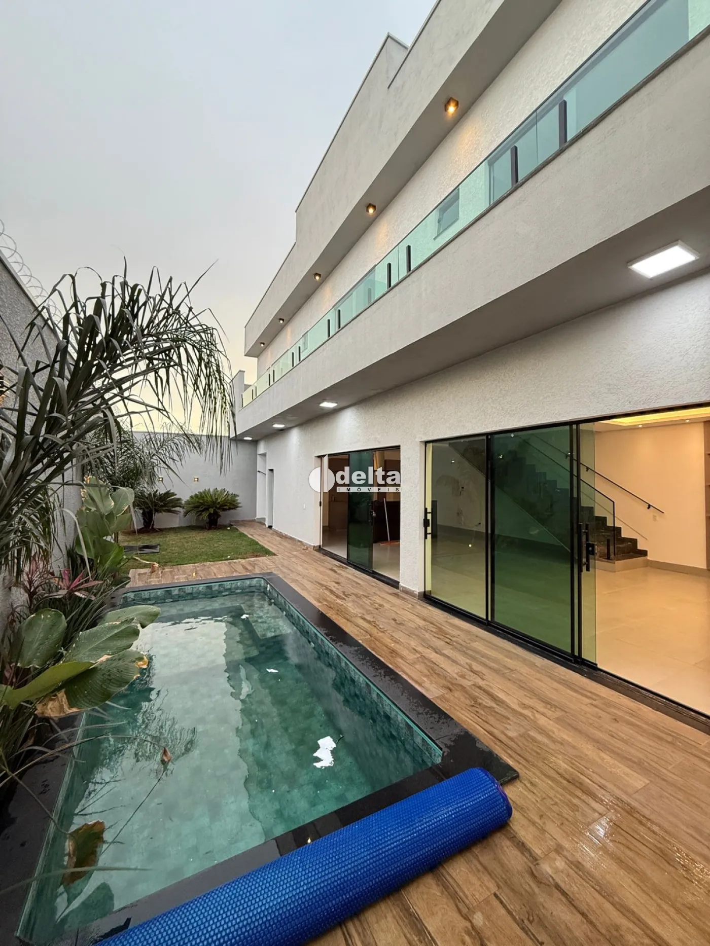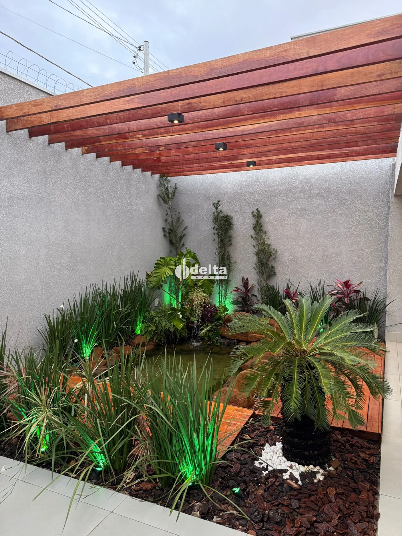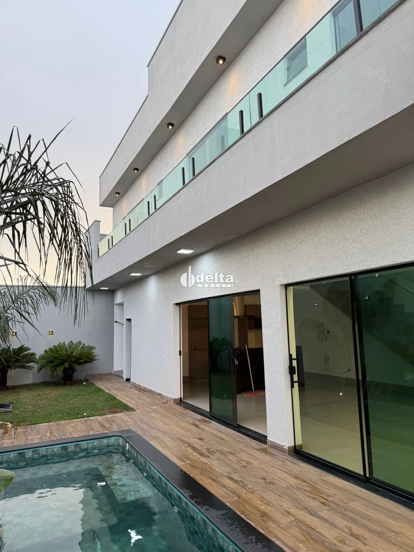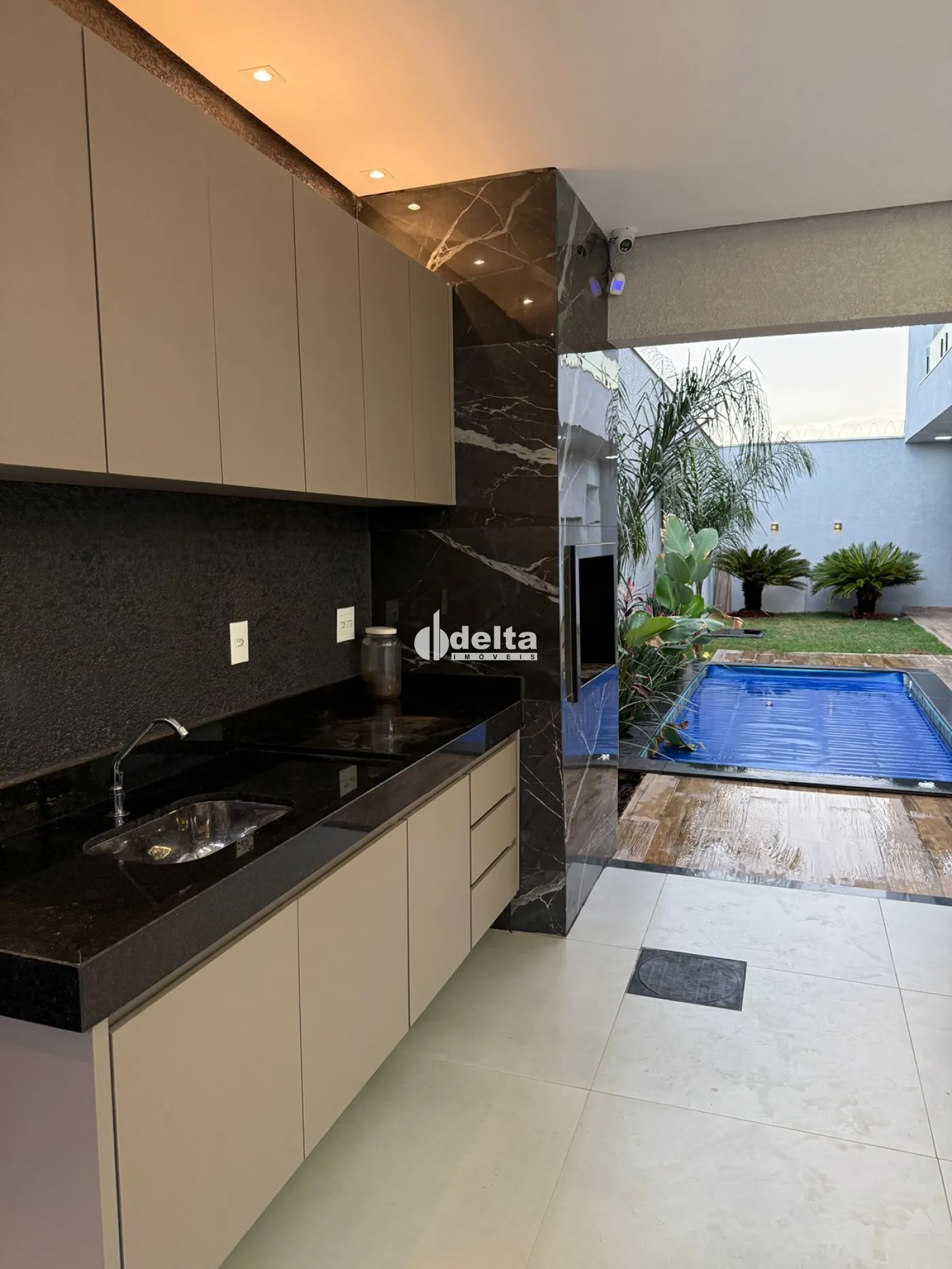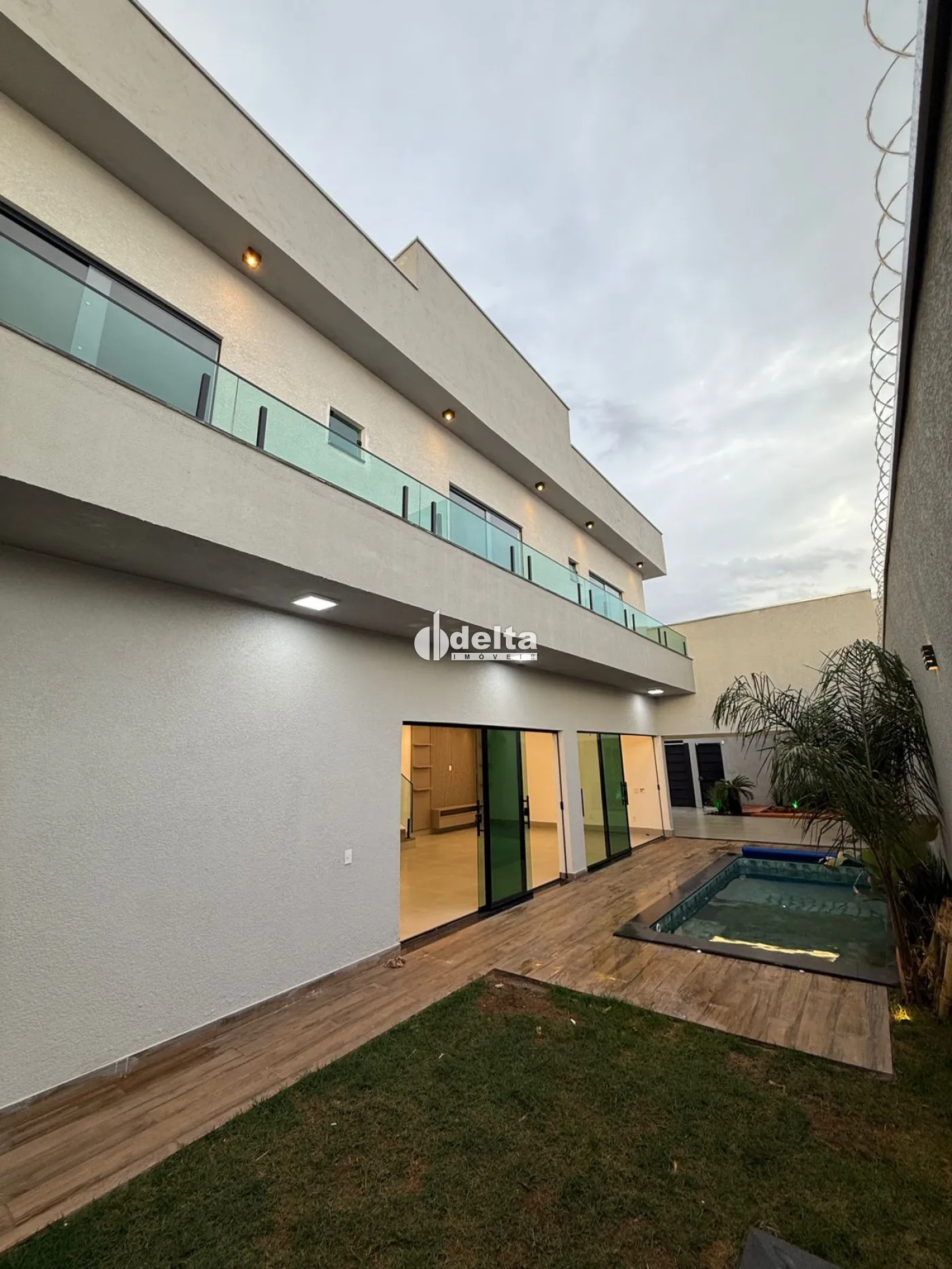 Sobrado alto padrão na Zona Sul com 235 m² de construção em terreno de 250 m², com sala ampla com painel planejado para TV, 3 suítes bem amplas com armários e sacada, banheiro social, cozinha com ilha e armários planejados, área de serviço, área gourmet, piscina, pergolado, armários embutidos, lago artificial, jardim decorado, garagem para 3 carros, sistema de câmeras e alarme, ambientes com iluminação em LED e acabamento de alto padrão.