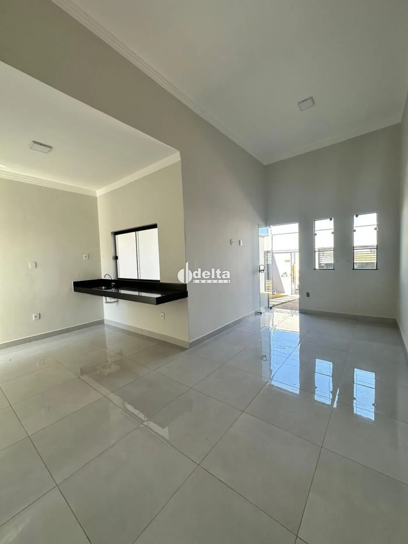 A casa possui **61,33 m² de área construída** em terreno de **125 m²**, oferecendo sala bem distribuída, 2 quartos, sendo 1 suíte, banheiro social, cozinha, área de serviço e 2 vagas de garagem. Imóvel novo, com excelente acabamento e ambientes funcionais.